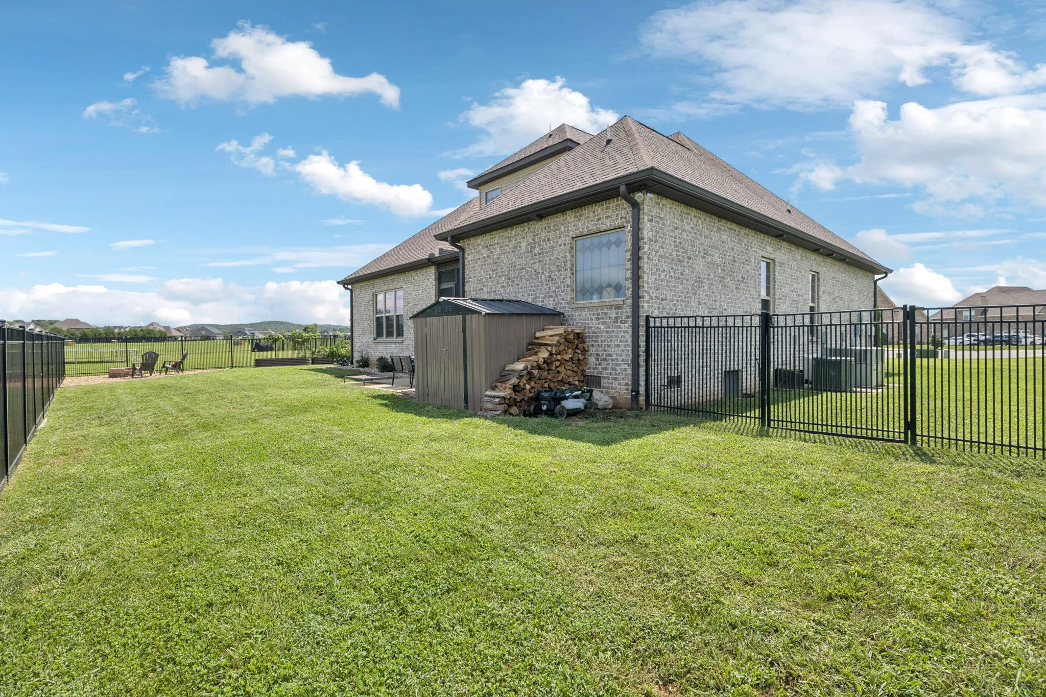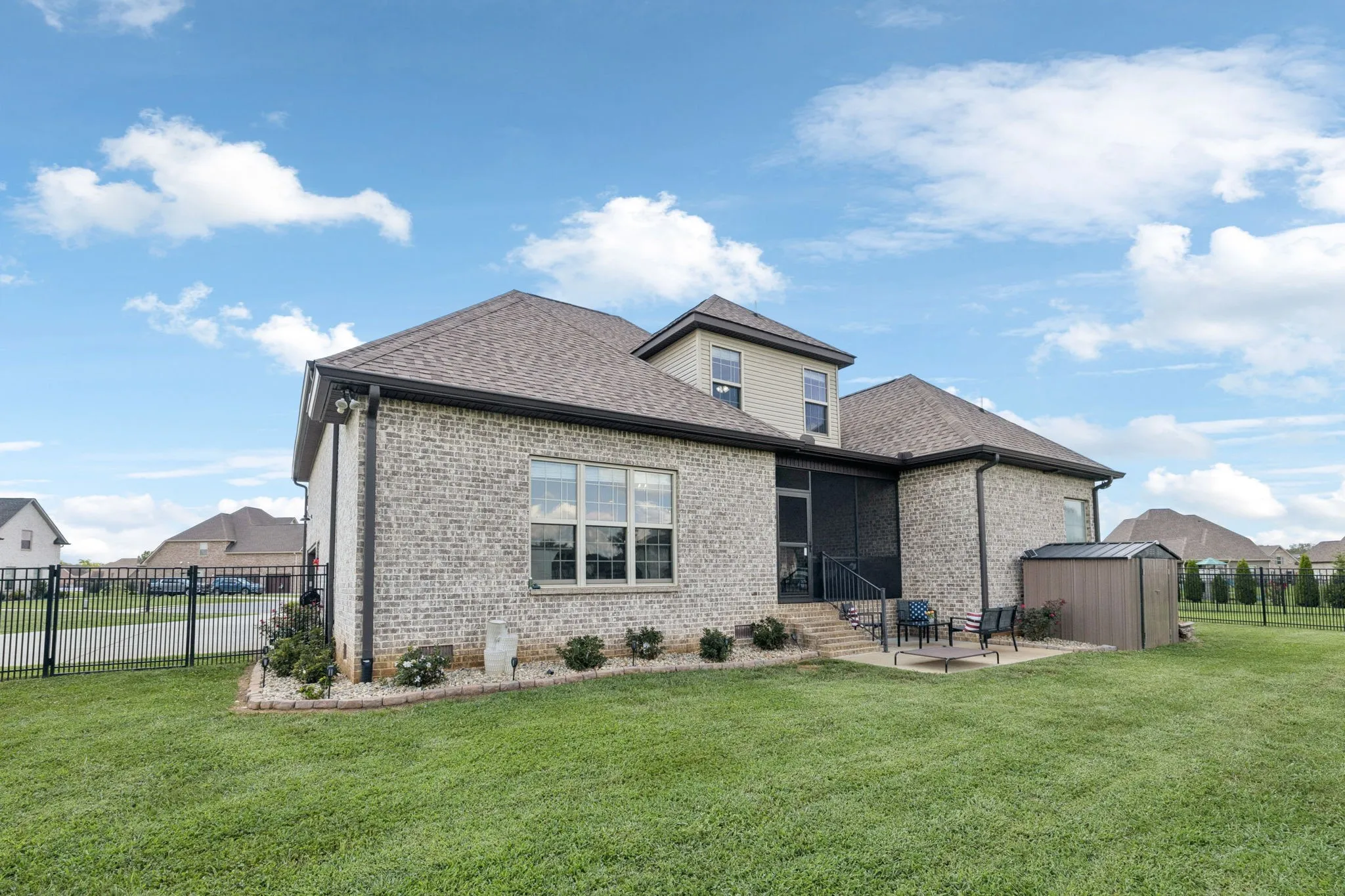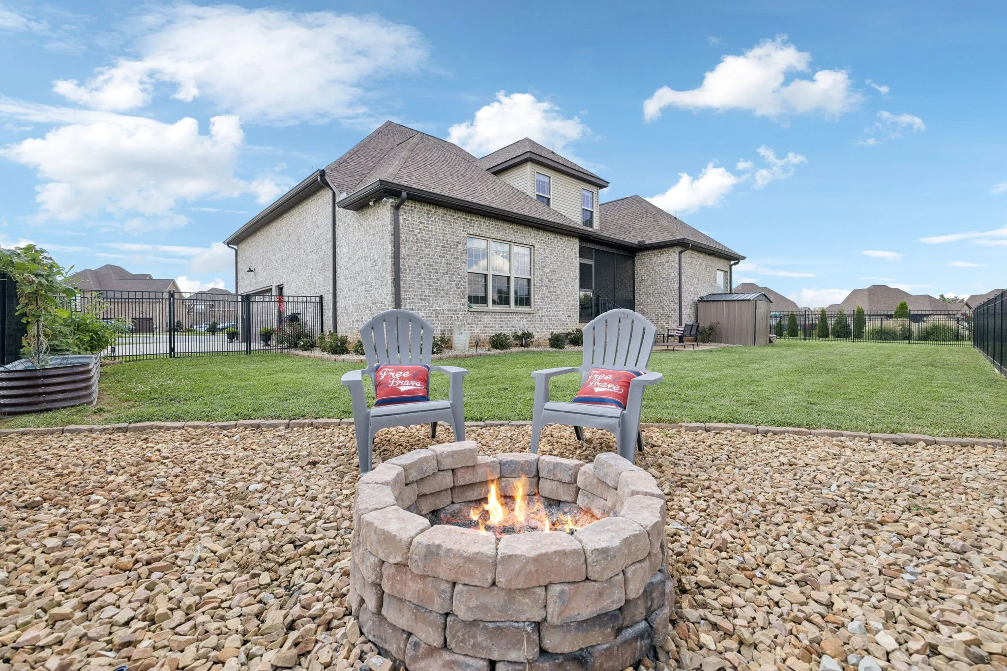 Step outside and enjoy the fenced backyard, with plenty of room to extend if you’d like even more space. The screened-in patio is ideal for relaxing, while the fire pit and storage unit make outdoor living both fun and functional.