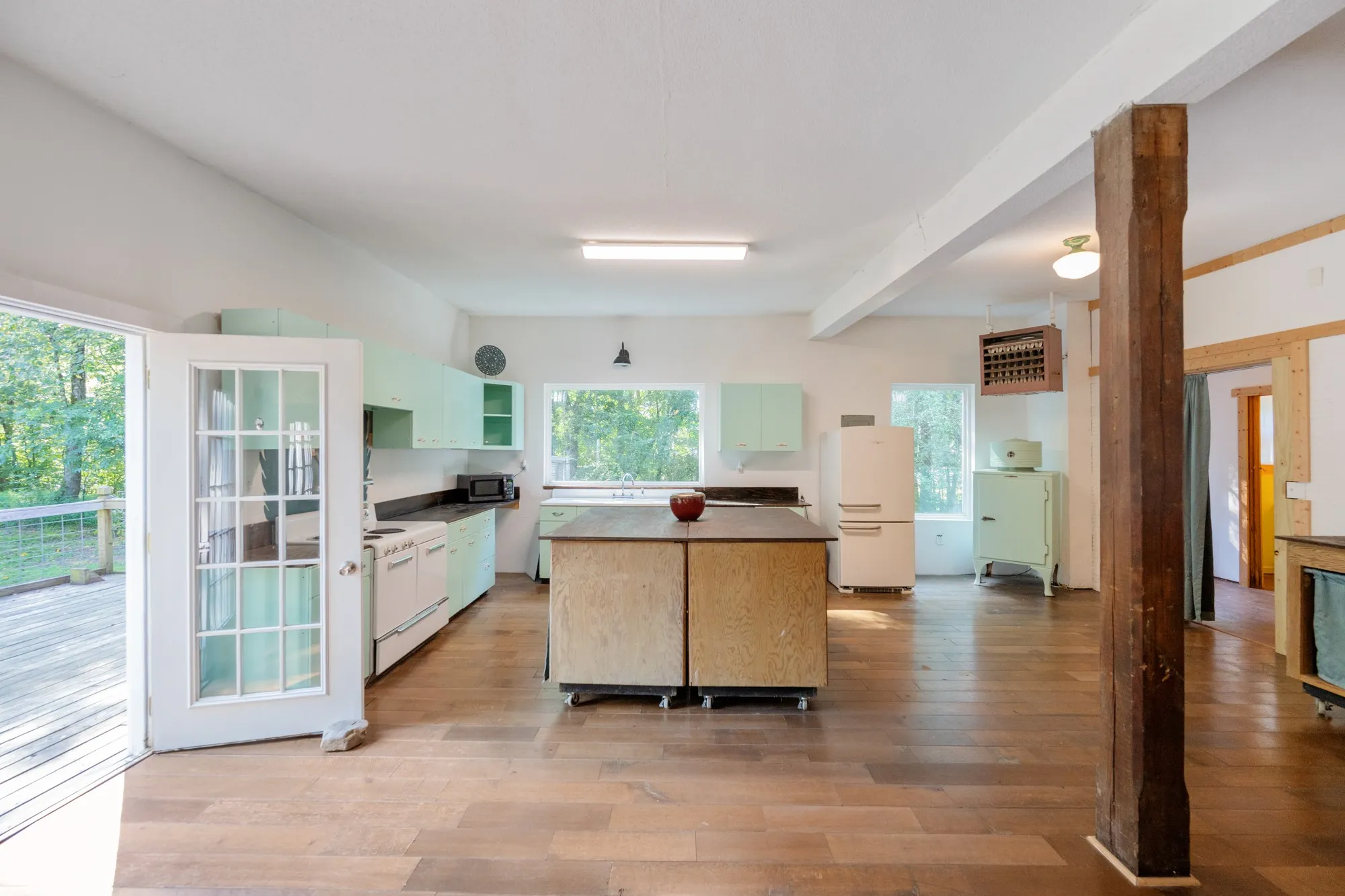 25.37 Acres & Historic Charm! Step into history with this beautifully transformed 1900 schoolhouse farmhouse just minutes from Parsons. This one-of-a-kind property blends character, space, and versatility with over 6,800 sq ft under roof. Enter through repurposed double glass doors into a stunning open living area featuring 10-ft ceilings, high-end hardwood flooring reclaimed from a historic Nashville hotel/train station, and abundant natural light. The former auditorium now serves as a grand living space, complete with the original stage—perfect for entertaining. The retro kitchen offers antique metal cabinets, wood cookstove, vintage range, refrigerator, icebox (storage), and three rolling wood islands. Main level includes 2 spacious bedrooms with private baths, plus pantry, laundry, and half bath.Upstairs features a large den, expansive library/office, 3rd bedroom, and full bath. Additional 4th bedroom and 35×13 storage area lack permanent heat (not included in square footage). A massive 1,700 sq ft attic provides future expansion potential. Enjoy the outdoors from the large partially covered deck overlooking wooded privacy. Property includes young orchard, fenced areas for livestock and chickens, and mature hardwoods. Separate septic and drive at Beacon Rd offer potential for a second home or shop. With no restrictions, ideal for residence, Airbnb, wedding venue, or B&B. Selling “As Is”. Conveniently located between Memphis and Nashville—just 3 miles to Parsons, 8 miles to the Tennessee River, and 17 miles to I-40.