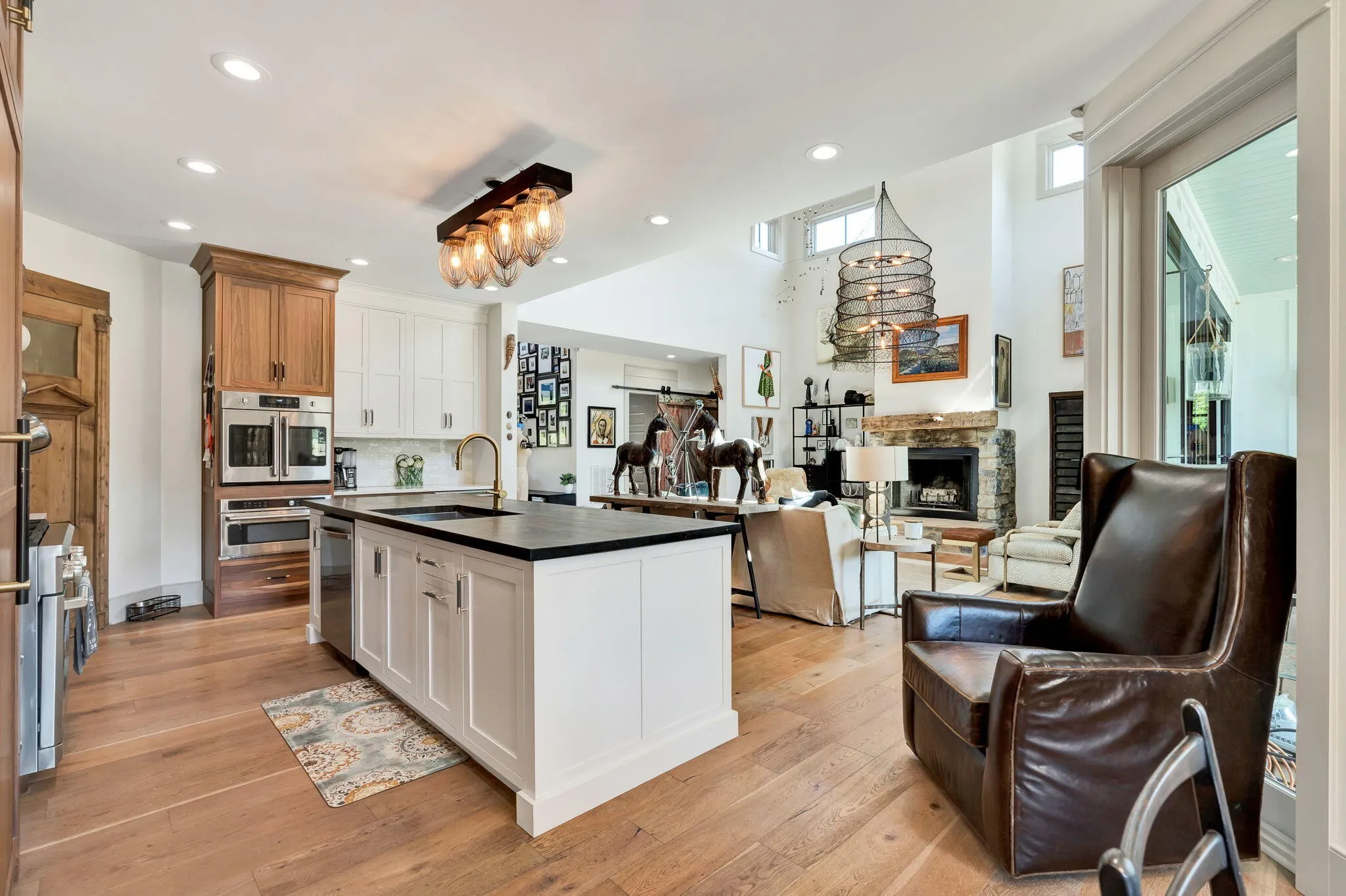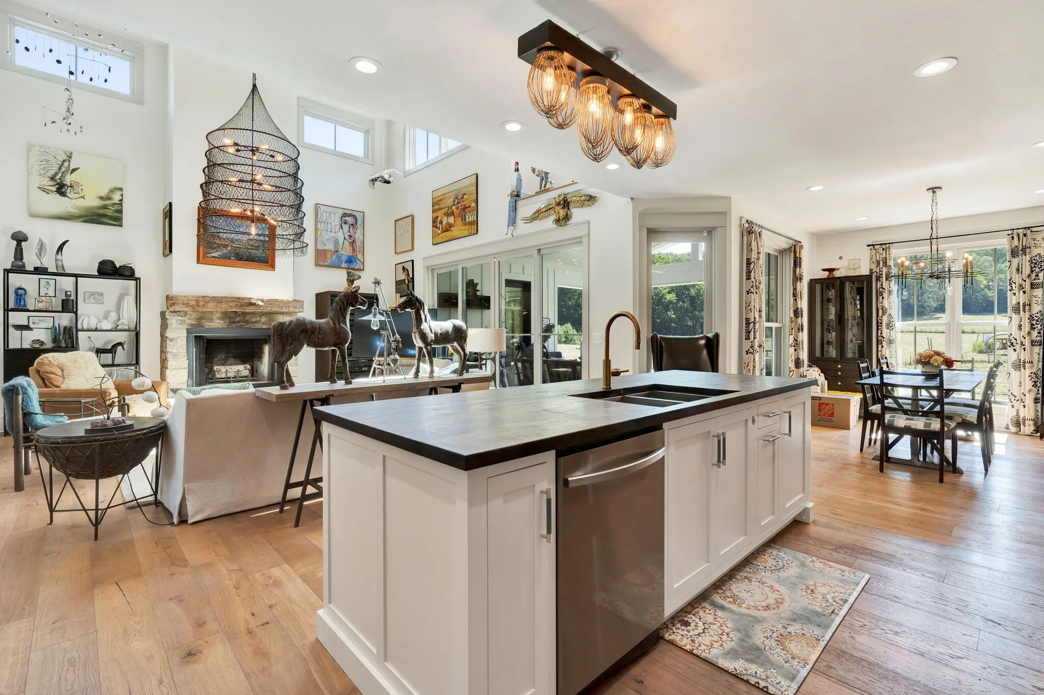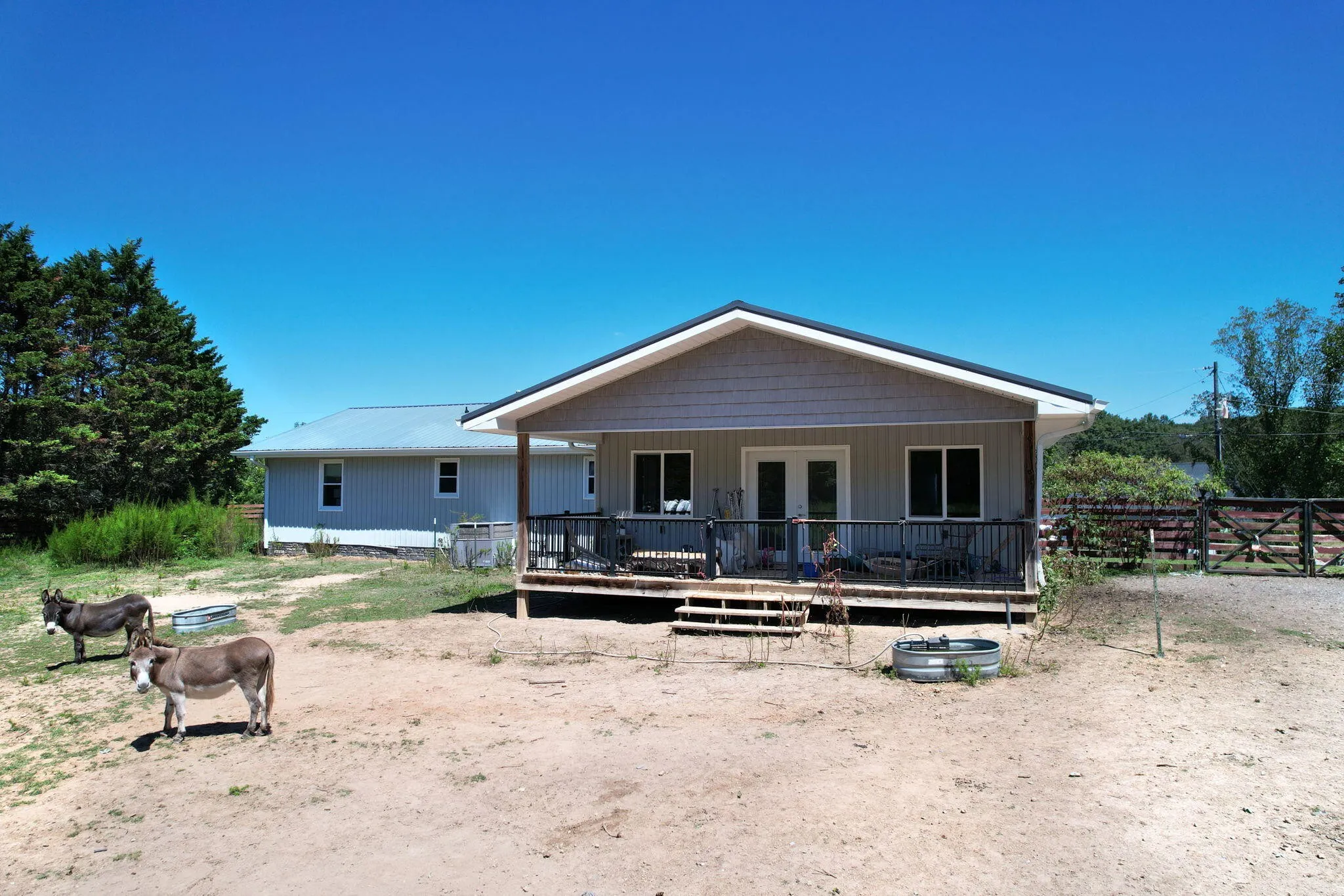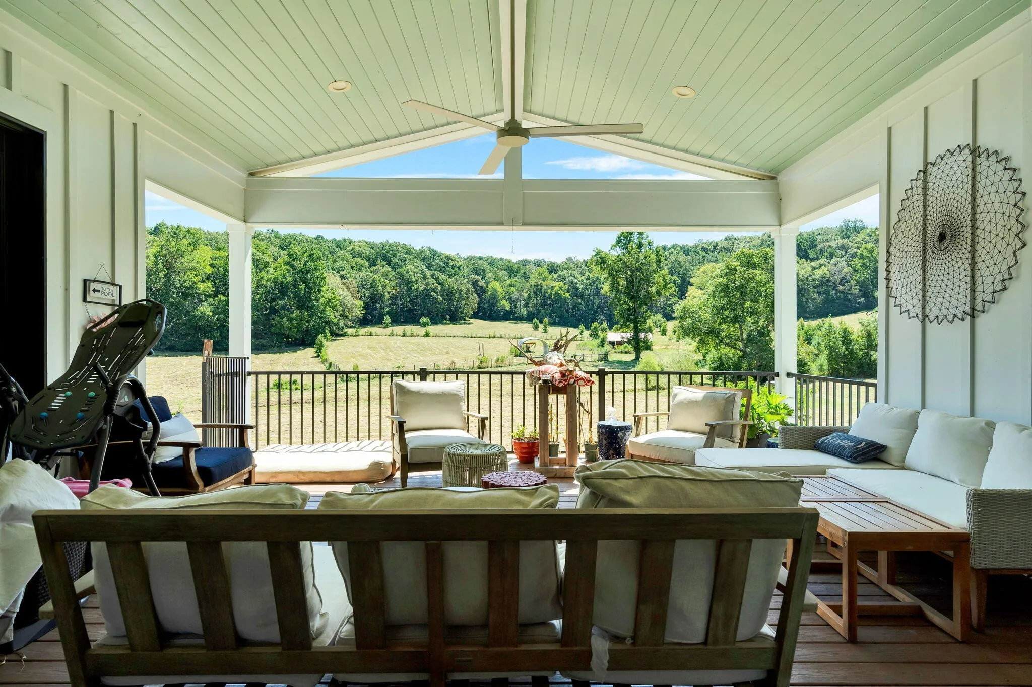 Discover a rare opportunity to own 28.62 acres of private countryside, where refined luxury and natural beauty blend seamlessly. At the heart of this estate lies a 2915 sf main residence, a showpiece of craftsmanship and elegance, complemented by a spacious secondary home and extensive outdoor amenities. The main residence is a masterpiece of design, offering three bedrooms, three and a half bathrooms, and four-zone climate control for year-round comfort. The grand great room is the home’s centerpiece, with soaring 20-foot ceilings, expansive windows, and a stone fireplace with raised hearth and gas starter. Sliding glass doors lead to a covered Trex deck overlooking the shimmering 10×20 saltwater pool and sweeping property views—an entertainer’s dream. A gourmet kitchen with top-tier appliances delights the chef, while vaulted ceilings elevate the dedicated craft room and office. Wide-plank Shaw hardwood flooring and detailed 8-inch baseboards carry a sense of understated luxury throughout. The primary suite is a serene retreat, featuring ten-foot ceilings, electric blackout curtains, and a spa-worthy bathroom with a soaking tub, oversized shower, and heated bidet toilet room. A custom-designed walk-in closet provides exceptional storage and organization. Upstairs, a charming and unique loft offers three built-in queen beds, custom shelving, and a private full bathroom—perfect for guests or family. Exterior details pair white Hardie board siding with shou sugi ban accents, approached by natural stone steps that create a striking first impression. Built to endure, this residence was engineered to withstand category three tornado conditions. Additional features include a 685 sq. ft. insulated garage with mini-split heating and cooling, plus an expansive unfinished basement offering abundant storage or future potential. The second residence provides 2,225 sf of single-level living with three bedrooms, two bathrooms, a spacious family room, and a durable metal roof.