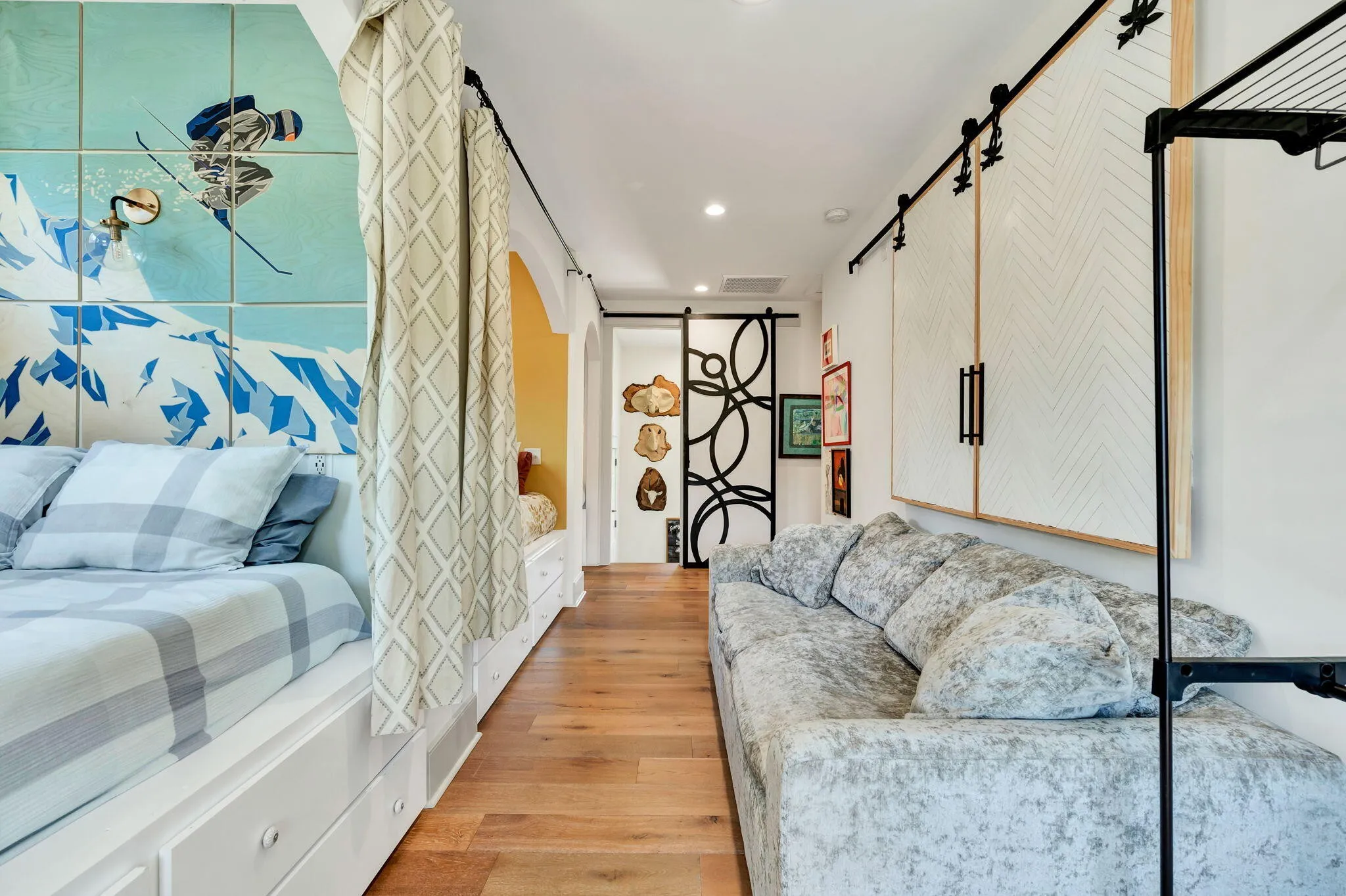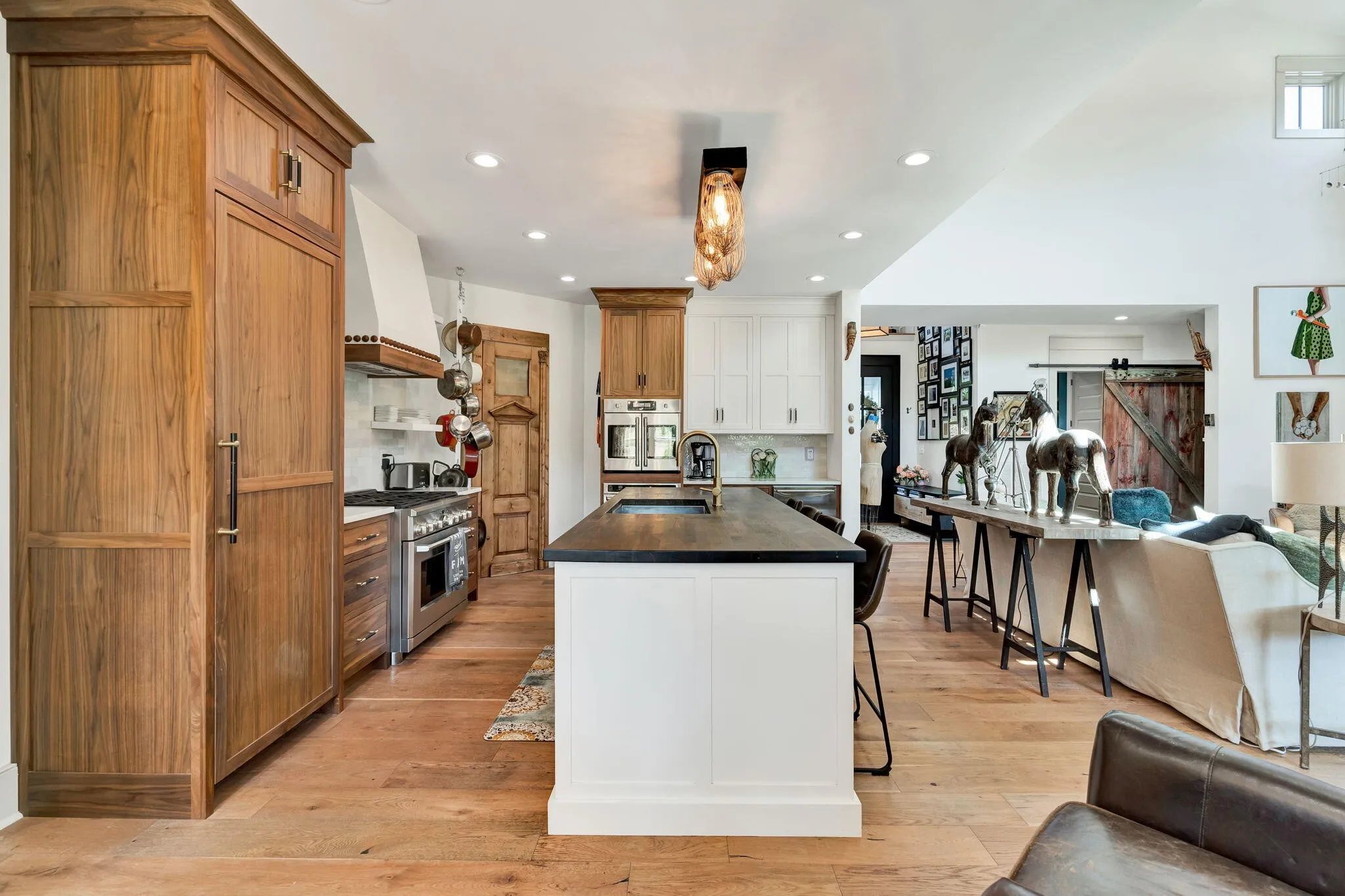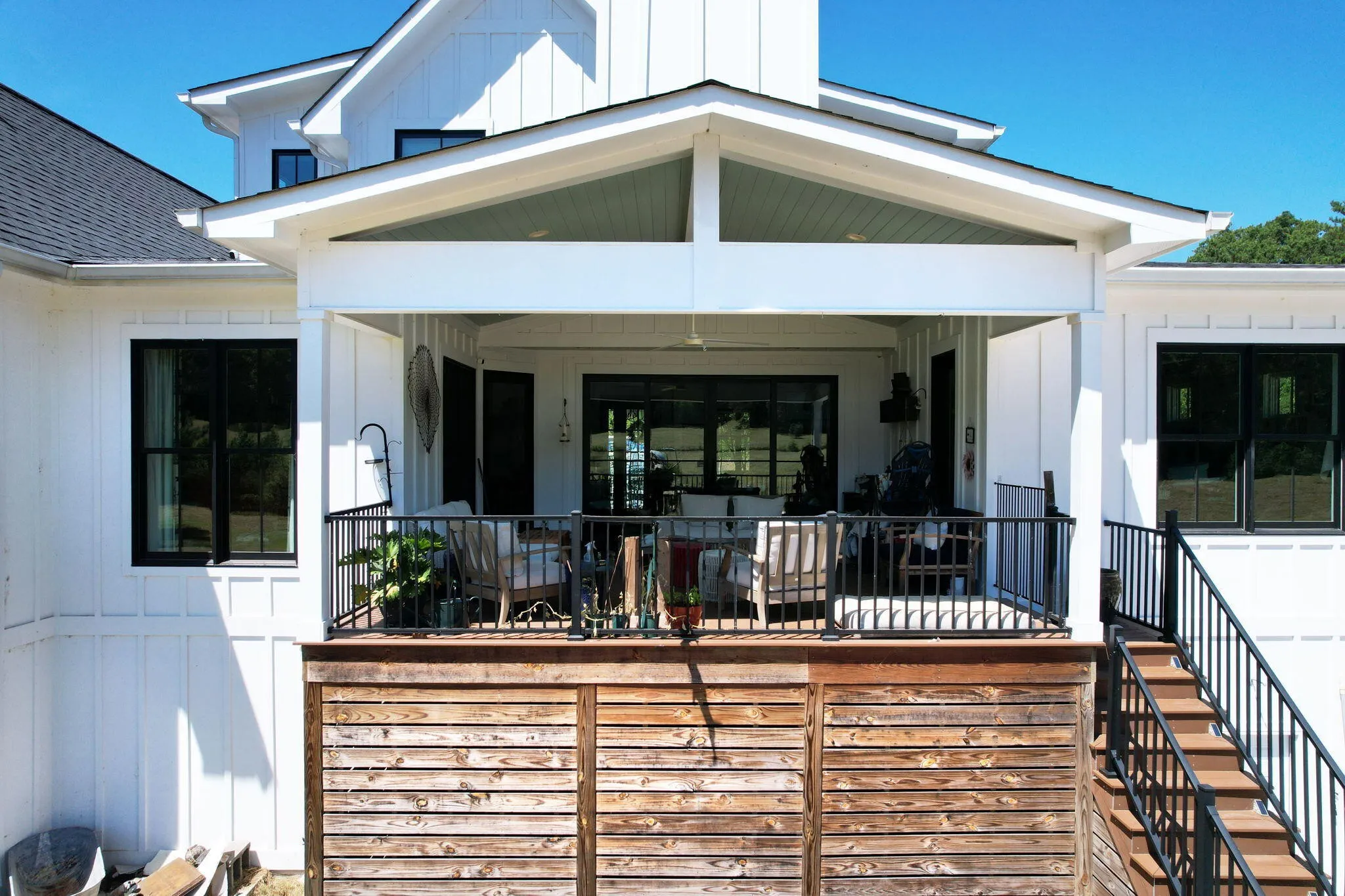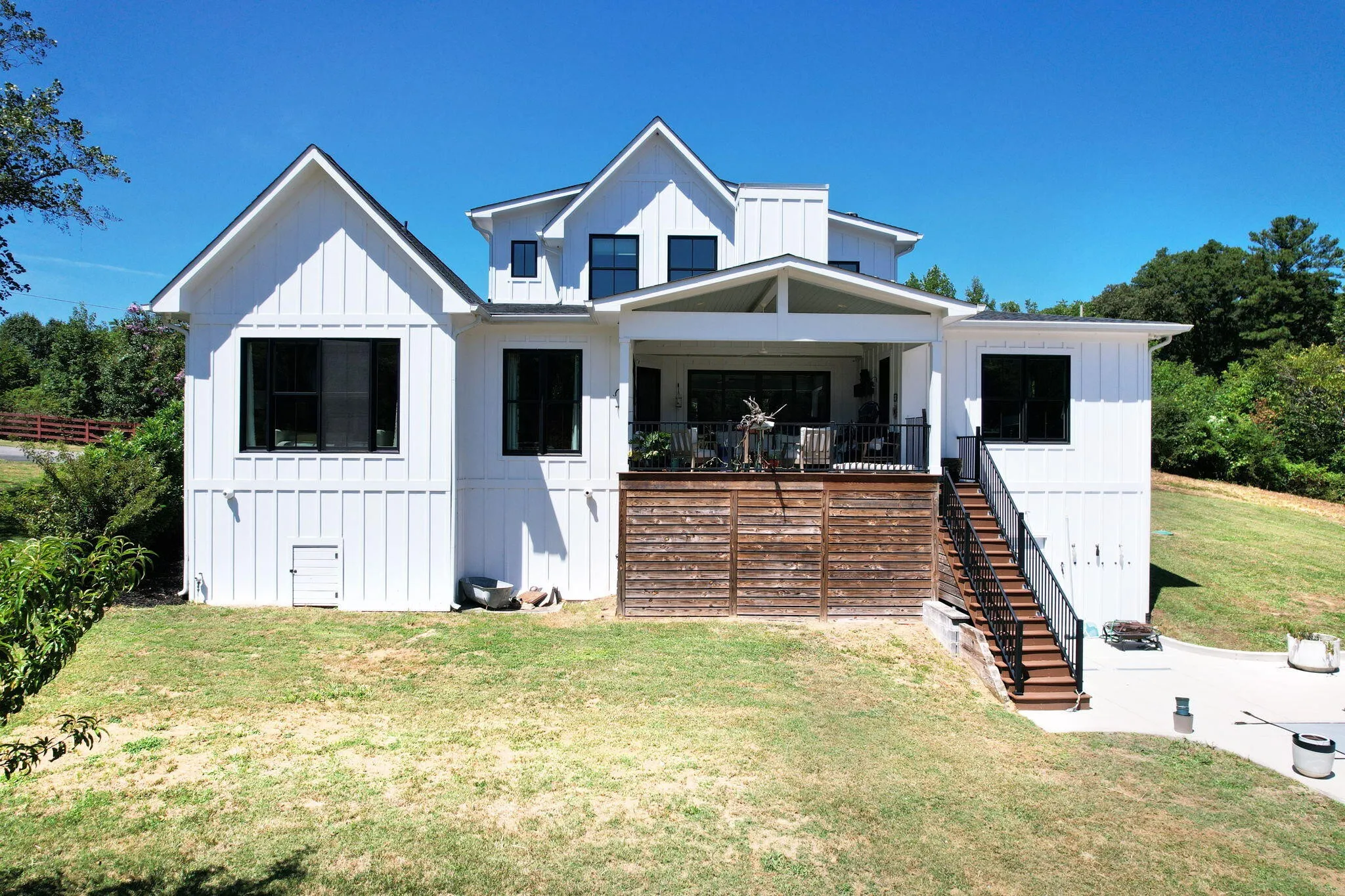 Discover a rare opportunity to own 28.62 acres of private countryside, where refined luxury and natural beauty blend seamlessly. At the heart of this estate lies a 2915 sf main residence, a showpiece of craftsmanship and elegance, complemented by a spacious secondary home and extensive outdoor amenities. The main residence is a masterpiece of design, offering three bedrooms, three and a half bathrooms, and four-zone climate control for year-round comfort. The grand great room is the home’s centerpiece, with soaring 20-foot ceilings, expansive windows, and a stone fireplace with raised hearth and gas starter. Sliding glass doors lead to a covered Trex deck overlooking the shimmering 10×20 saltwater pool and sweeping property views—an entertainer’s dream. A gourmet kitchen with top-tier appliances delights the chef, while vaulted ceilings elevate the dedicated craft room and office. Wide-plank Shaw hardwood flooring and detailed 8-inch baseboards carry a sense of understated luxury throughout. The primary suite is a serene retreat, featuring ten-foot ceilings, electric blackout curtains, and a spa-worthy bathroom with a soaking tub, oversized shower, and heated bidet toilet room. A custom-designed walk-in closet provides exceptional storage and organization. Upstairs, a charming and unique loft offers three built-in queen beds, custom shelving, and a private full bathroom—perfect for guests or family. Exterior details pair white Hardie board siding with shou sugi ban accents, approached by natural stone steps that create a striking first impression. Built to endure, this residence was engineered to withstand category three tornado conditions. Additional features include a 685 sq. ft. insulated garage with mini-split heating and cooling, plus an expansive unfinished basement offering abundant storage or future potential. The second residence provides 2,225 sf of single-level living with three bedrooms, two bathrooms, a spacious family room, and a durable metal roof.