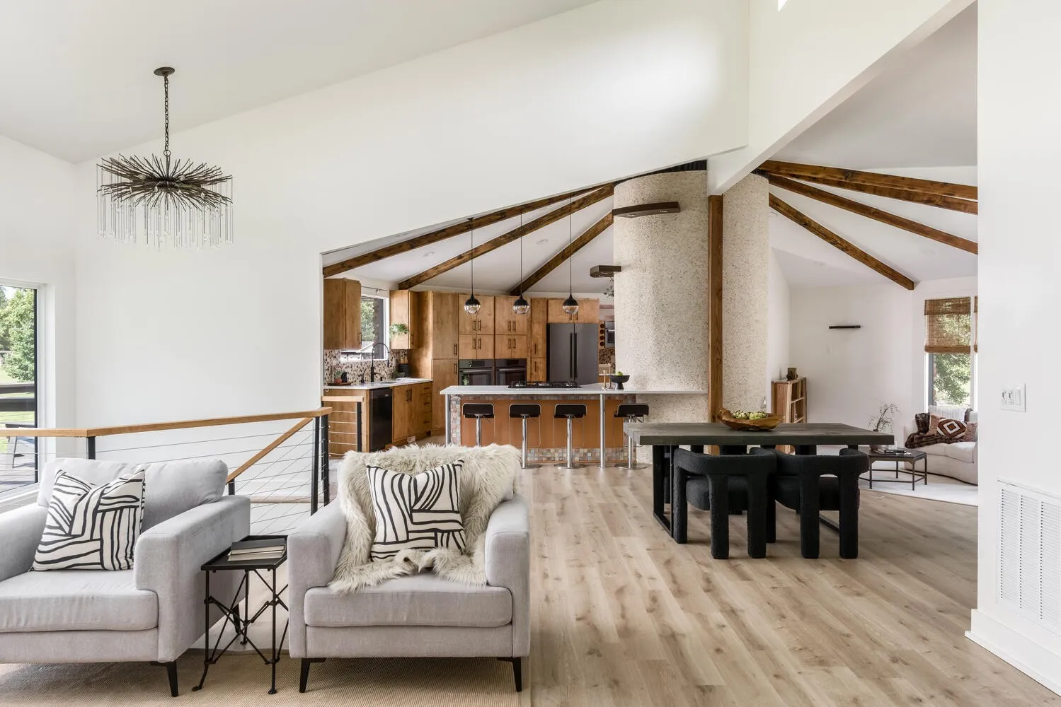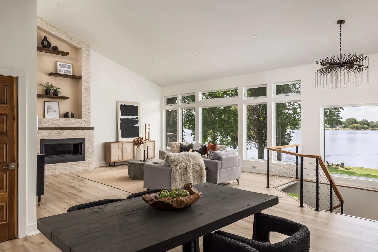 This 5,018-square-foot lake home is tucked at the end of a quiet cul-de-sac on the coveted Indian Lake Peninsula and sits on a point with approximately 250 feet of shoreline. It is a rare property, both in the top percentile for its incredible views and for being a flat, perfectly situated lot. The home was fully renovated in 2020 and updated throughout. It features four bedrooms, each with its own full bathroom, four and a half bathrooms in total, and a spacious, comfortable open layout that connects the kitchen, dining area, living room, and sitting area around a central circular fireplace. Large windows in the main living spaces showcase its stunning views of the lake.The primary bedroom is a peaceful retreat you won’t want to leave in the mornings, with a double-sided fireplace facing both the bed and bathtub, allowing you to take in the lake views from either spot. Downstairs offers a large family room with a fireplace and sliding glass doors for more lake views and access to the backyard, along with a bedroom that makes a great bunk room and an office that could also serve as a fifth bedroom. The office features lake views from two sides for an inspiring workspace. The lot combines expansive open lake views with mature trees that provide privacy and shade. The yard is relatively flat but sits safely above the waterline, making it easy to walk to the lake without stairs. A two-car garage and carport offer plenty of parking options, while a circular driveway is perfect for guests and deliveries.There is ample room to enjoy the outdoors, whether you’re watching the sunset from the dock or sitting by a fire near the shoreline. Several marinas and lakefront dining options are a short boat ride away. The accessibility to the lake is unmatched, whether paddleboarding, jet skiing, fishing, or spending days out on the boat, it’s all in your backyard.