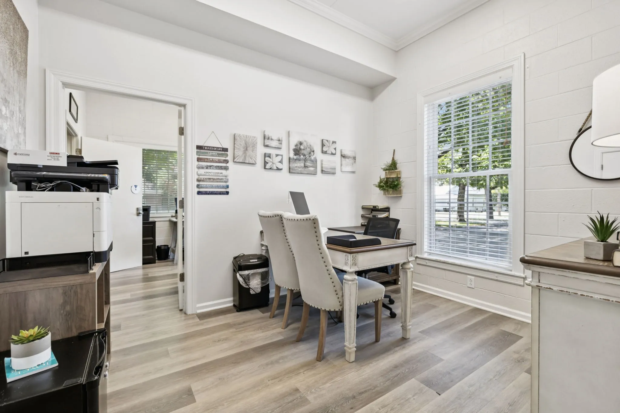 This charming and beautifully renovated building has so many extras, including a slate roof, copper gutters and gorgeous landscaping! Let your imagination guide you, as this building is zoned Office General/Residential with many options included! This well maintained building has 9 offices/rooms, a large meeting room, reception area, kitchen, 1 full and 2 half baths, sinks in some rooms, and an awesome private outdoor area surrounded by a high wood fence! Renovattions in 2022 included