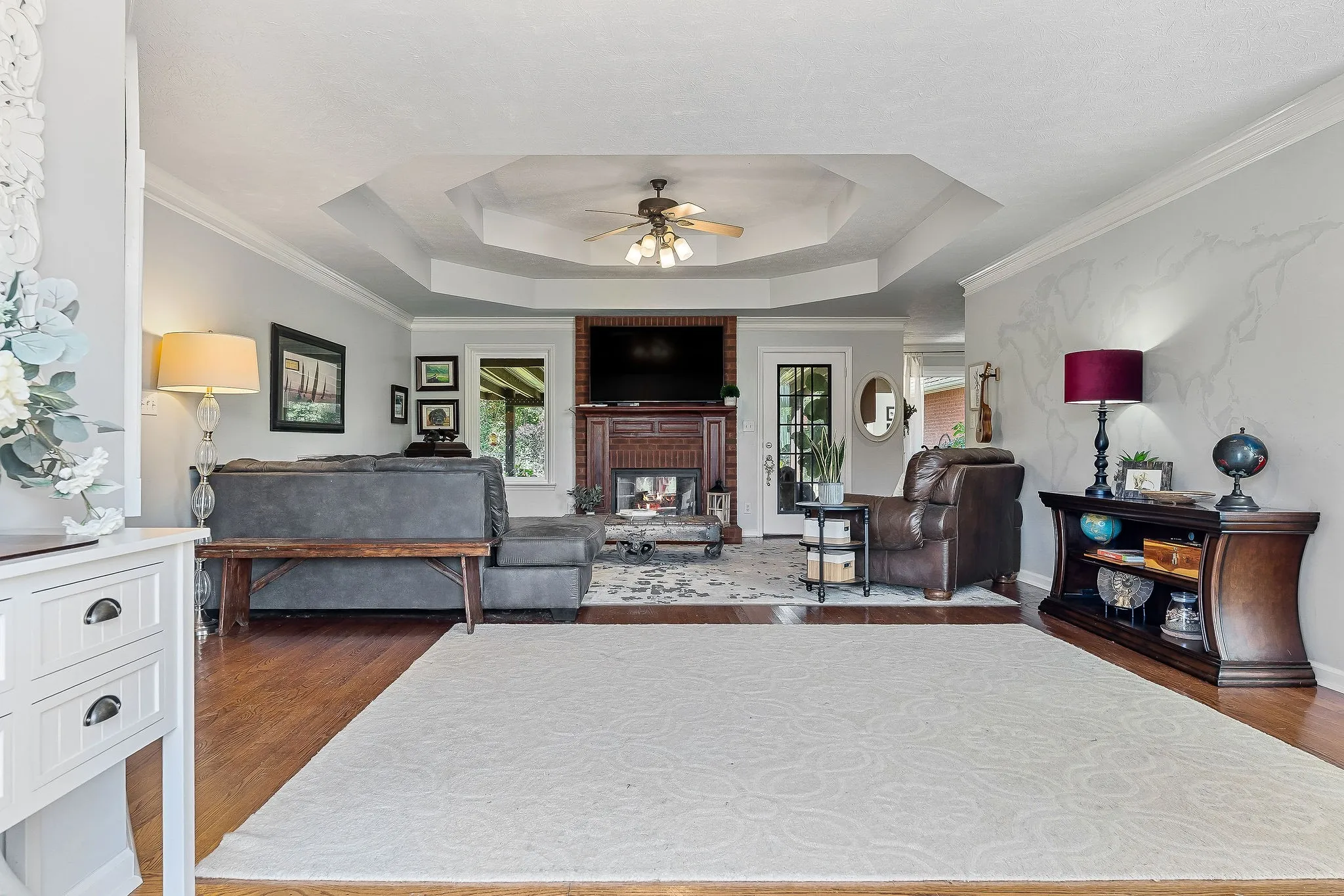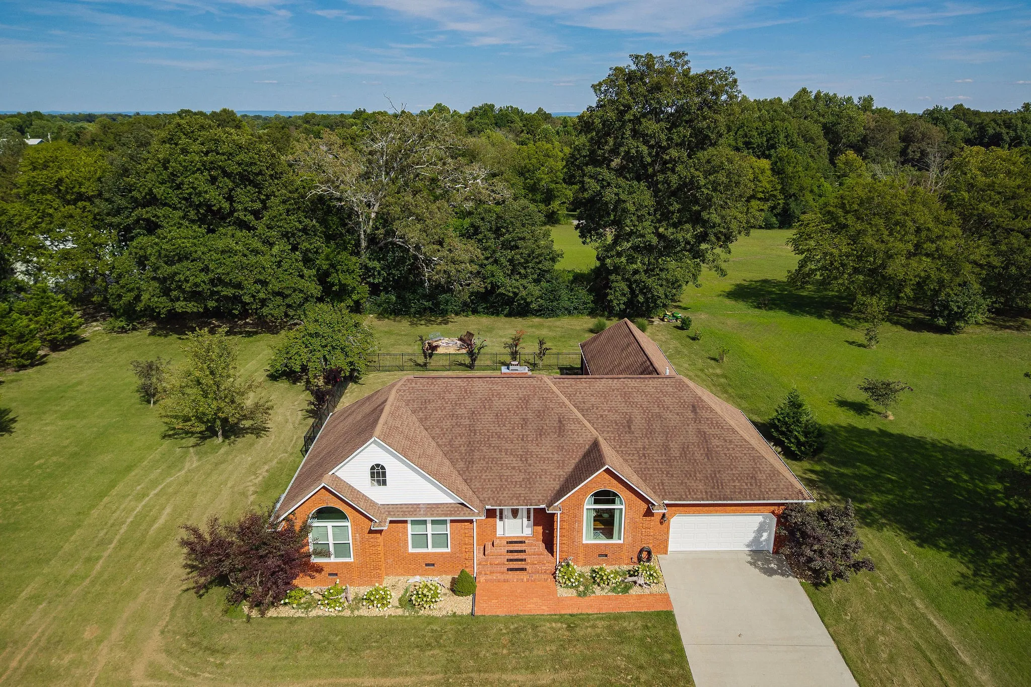 Stately brick residence with dual primary suites and an EXTRA LOT included located in one of Smithville’s premier neighborhoods. This upscale 4BR/3.5BA home offers approximately 2,672 sq ft of thoughtfully planned living with abundant natural light and an easy, everyday flow between gathering spaces. Inside, two primary suites with private baths deliver exceptional flexibility for multigenerational living, complemented by two additional bedrooms, two more full baths, and a convenient half bath. The all-brick exterior provides timeless curb appeal and low-maintenance durability, while a true two-car garage offers secure parking plus extra storage. Step outside to a private, park-like setting: a beautiful covered back patio overlooks the fully fenced backyard—perfect for pets, play, and alfresco dining—anchored by a cozy fire pit for evening gatherings. The adjoining lot conveys with the sale, creating a rare privacy buffer today and optional future uses (garden, play space, or potential improvements—buyer to verify). Exceptionally convenient location—central to schools and shopping and roughly 10 minutes to Center Hill Lake—delivering an elevated lifestyle of space, setting, and accessibility. A polished package in a sought-after area, ready for its next owner.