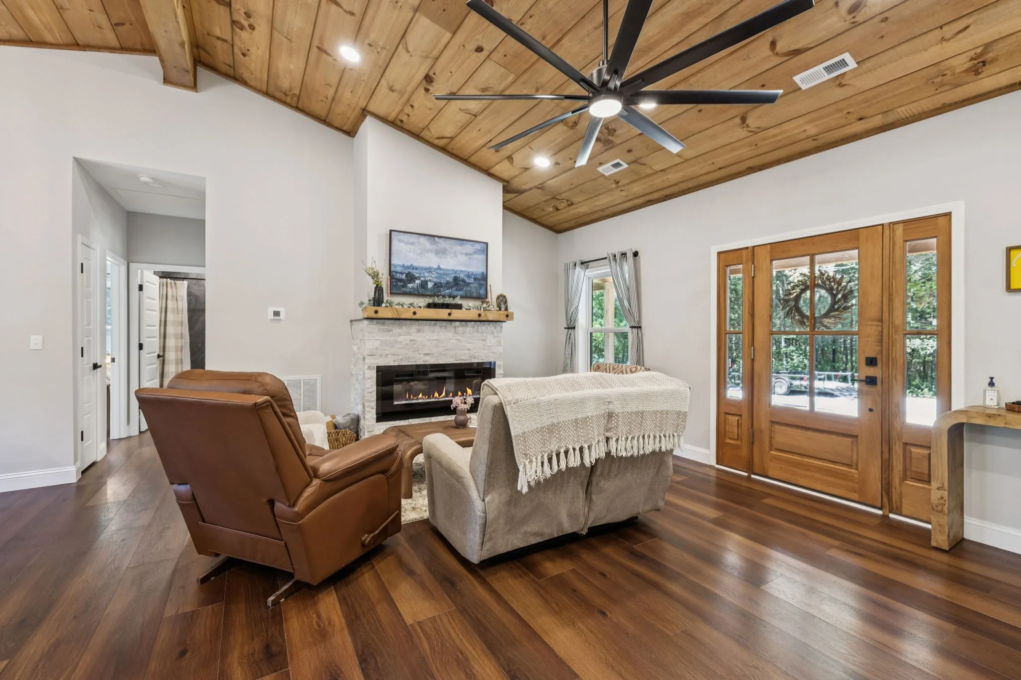 Discover the perfect blend of modern comfort and rustic charm! This beautiful 3-bedroom, 2-bath home sits on just over an acre, offering plenty of space to enjoy the outdoors. Relax on the covered front porch and take in the peaceful surroundings, or gather inside where a stunning electric fireplace creates a cozy focal point in the open-concept living area. With thoughtful design and room to make it your own, this home is ready to welcome its next owner—don’t miss your chance!