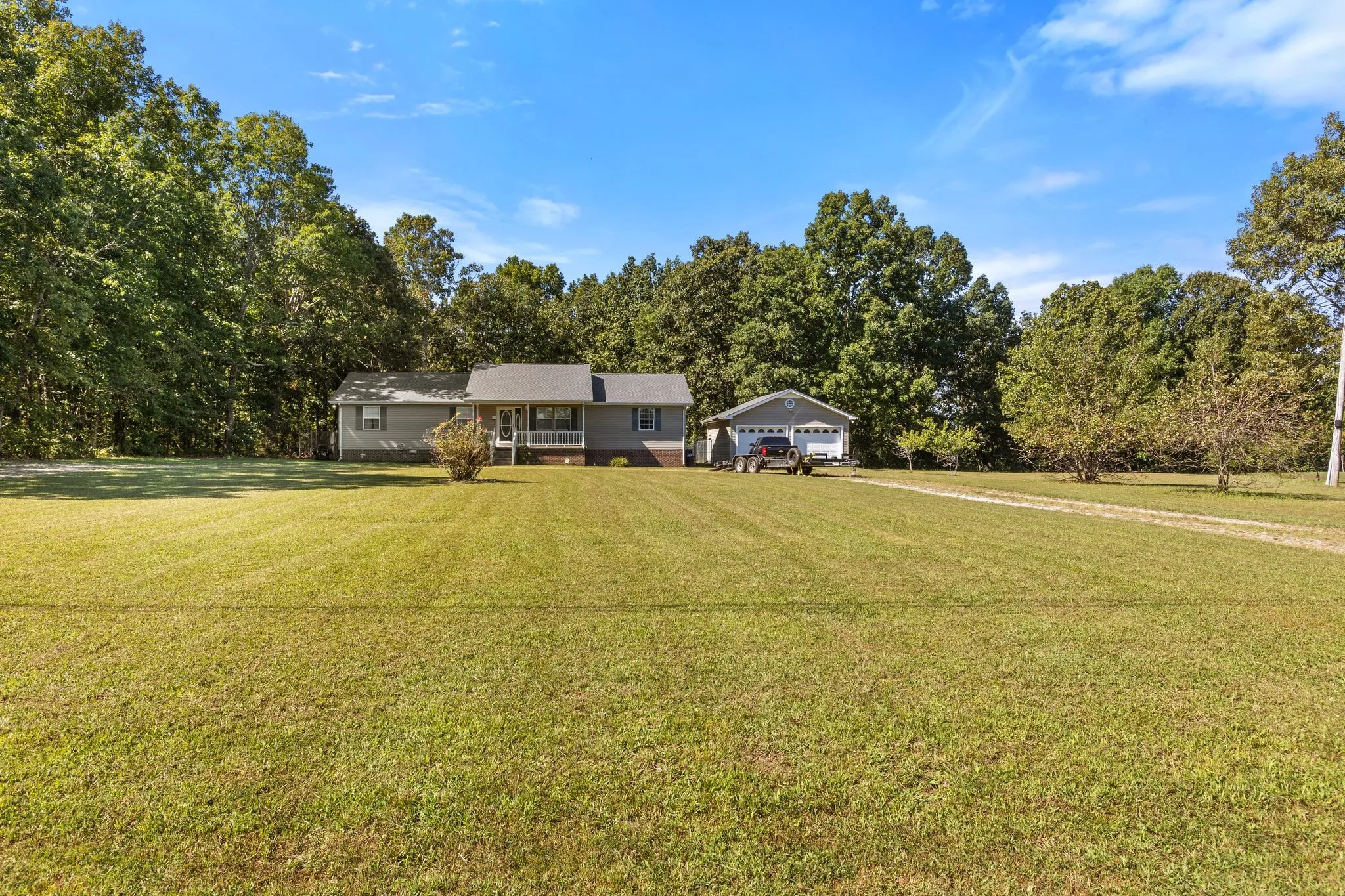 Spacious move in ready well maintained home with a detached 2 car garage. Room for storage, cooking, dining, and living! This open floor plan offers plenty of space for family or entertaining. Enjoy a cup of coffee on the front or back porch and watch for deer to roam on the 7+/- acres. Fenced in back yard with a chicken coop. Second dining could possibly be enclosed and converted to another bedroom, office, or storage area. This home is ready for new owners. Convient to town and nestled in the quiet country side. High speed internet with the ability to work from home or stream movies for the whole family. Motivated sellers bring us an offer !