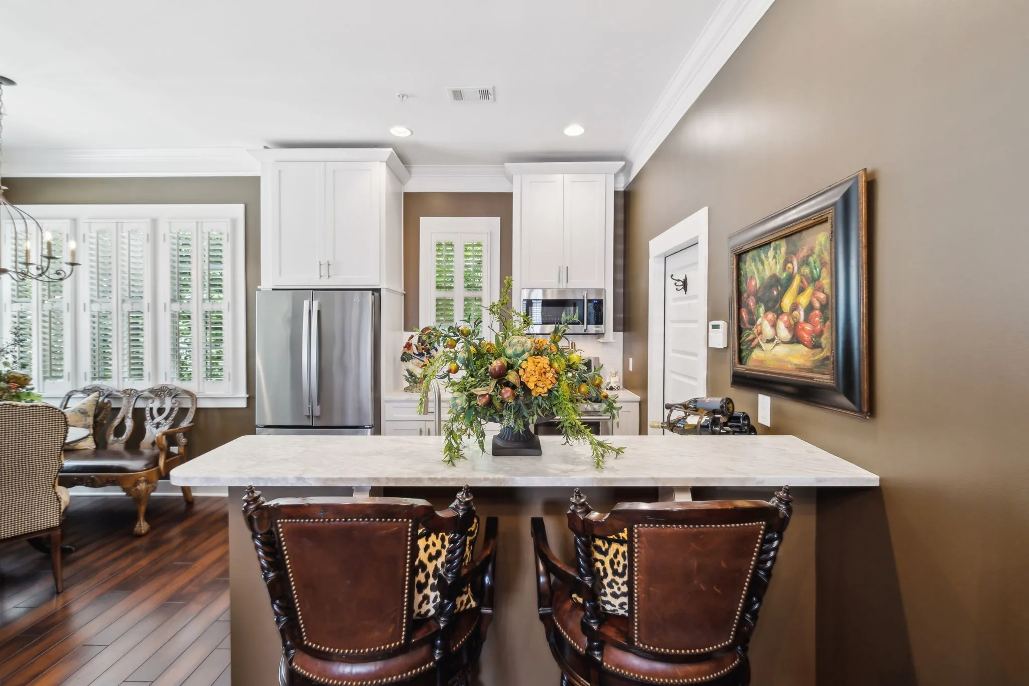 NEW PRICE! Don’t miss this rare chance to own in quaint Vandalia Cottages, within WALKING DISTANCE TO DOWNTOWN FRANKLIN by way of the community walking path! This charming home features 2 bedrooms and 2 1/2 baths, WALNUT HARDWOOD FLOORS throughout, and PLANTATION SHUTTERS on every window! The bright and airy kitchen has MARBLE COUNTERTOPS, GAS RANGE, NEWER REFRIGERATOR (2022) and POT FILLER!