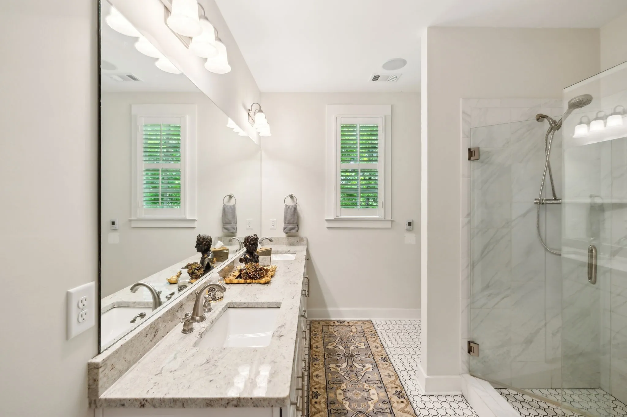 Upstairs, the loft provides a cozy sitting area that could also be utilized as an office or exercise space. A spa-inspired PRIMARY BATH HAS HEATED FLOORS, a large walk-in shower, and spacious walk-in closet. The guest bedroom also has its own full bath and walk-in closet. The TANKLESS WATER HEATER ensures endless hot water, while a 22kW GENERAC BACKUP GENERATOR (2023) offers peace of mind year-round. And the CENTRAL VACUUM SYSTEM provides added convenience.