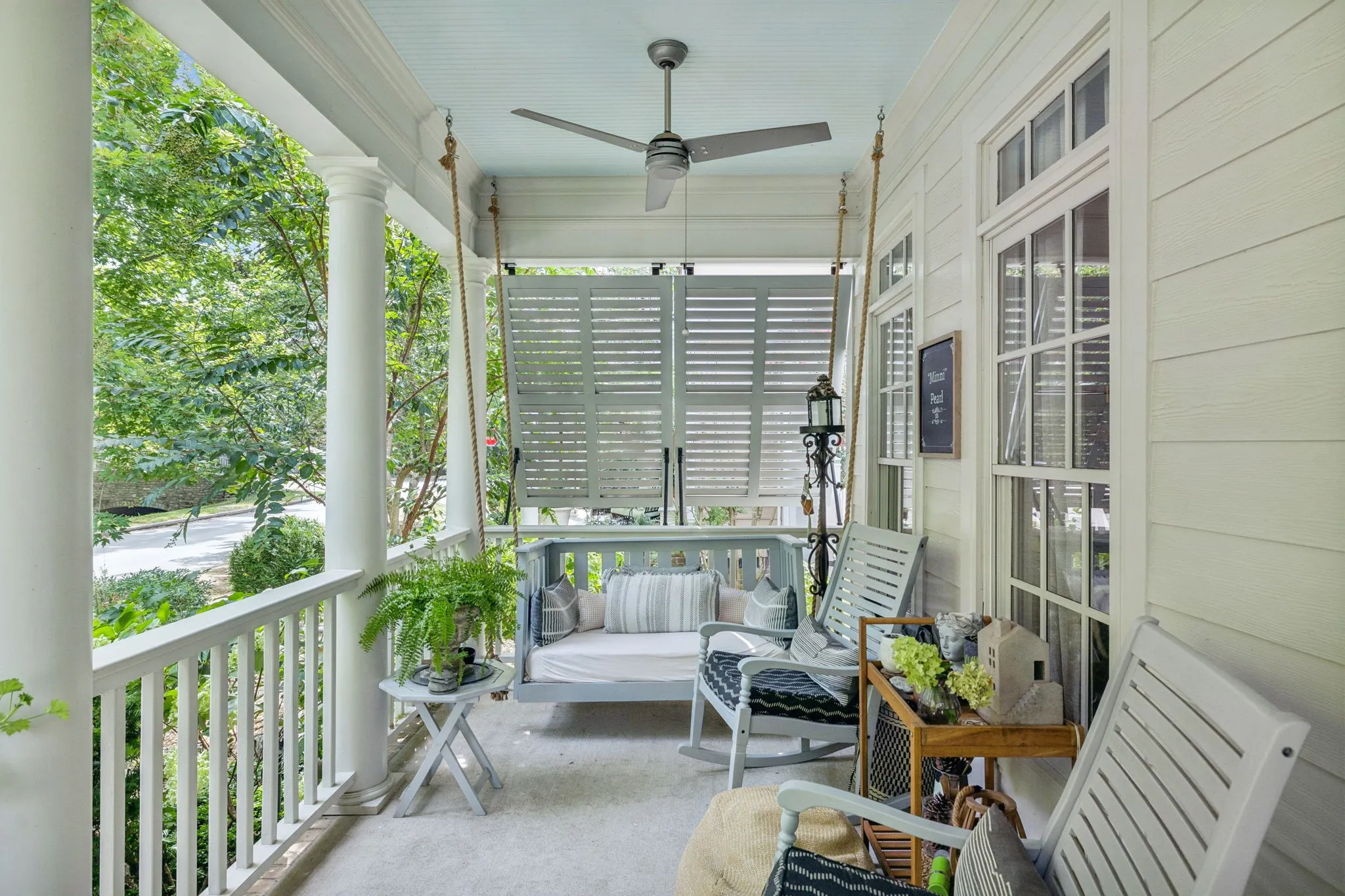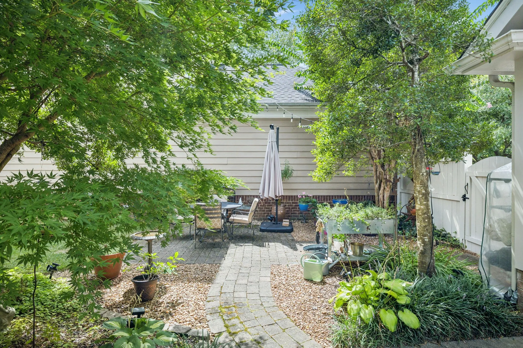 This Darling Cottage is Located on a Peaceful, Tree-Lined Street and Features a Rocking Chair Front Porch Facing Trees and a Creek! Bermuda Shutters Added to the Porch for Privacy and Give a “Charleston” Feel. Hardwood Floors Greet you Upon Entry in to the Large Living Room and Dining Area. The Kitchen Boasts Recently Painted Cabinets, Quartz Counters and Breakfast Area Overlooking the Courtyard. The Home Has Been Recently Upgraded with a Tankless Water Heater, and New Roof. All Bedrooms are Located on the Second Floor with Beautiful Views from Every Window. The Bathrooms Have Been Renovated Featuring Marble Counters in the Guest Bath and Quartz Counters in the Primary and new Tile. The Primary Bedroom Suite is a Stunner with Upgraded Wainscoting Details. Outdoor Enthusiasts will Appreciate the Private Courtyard with Mature Landscaping! This Gem is Walking Distance to the Town Center, Gyms, Pickle Ball Courts, Resort Pool, Playgrounds, and Lake!