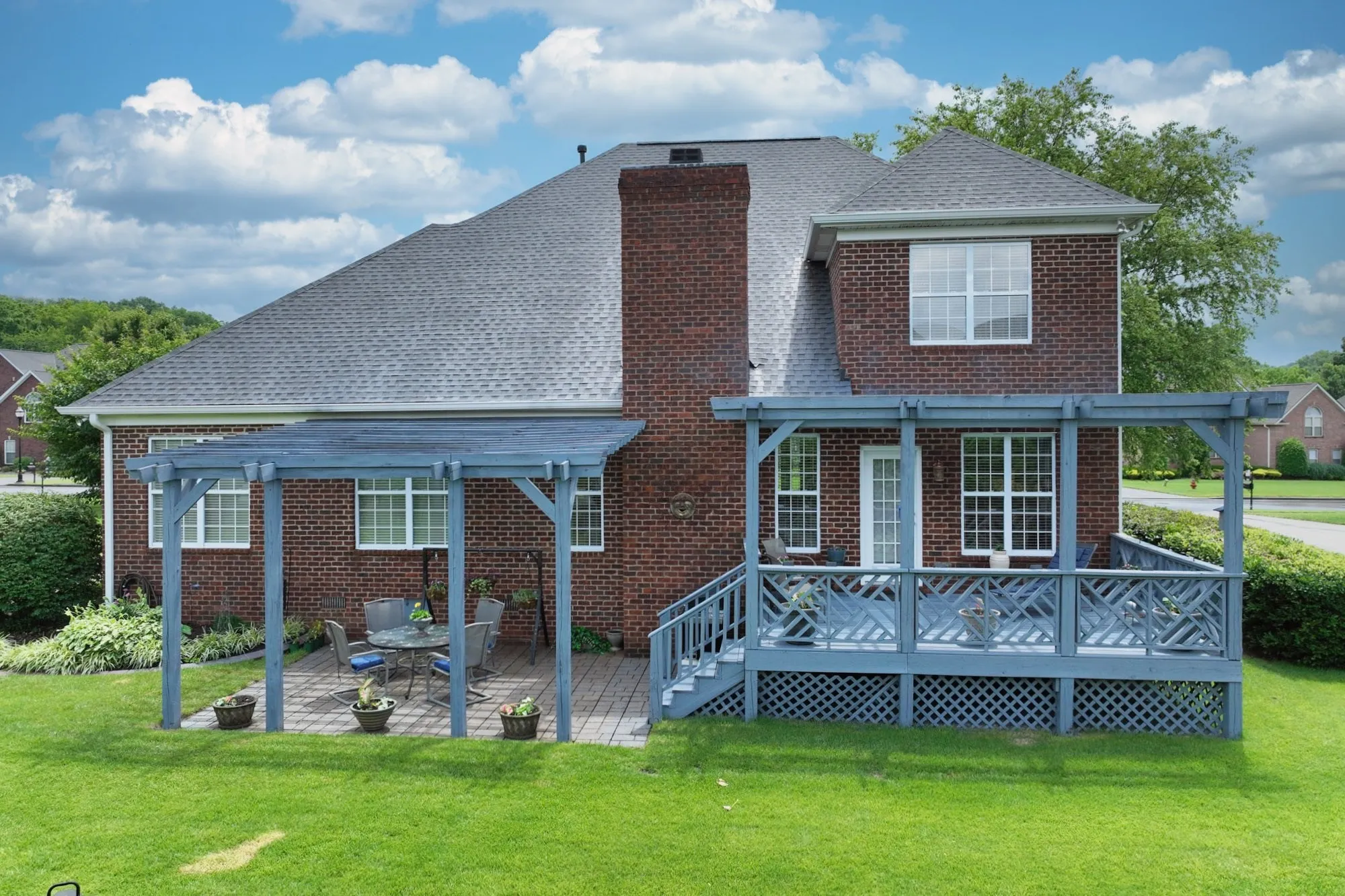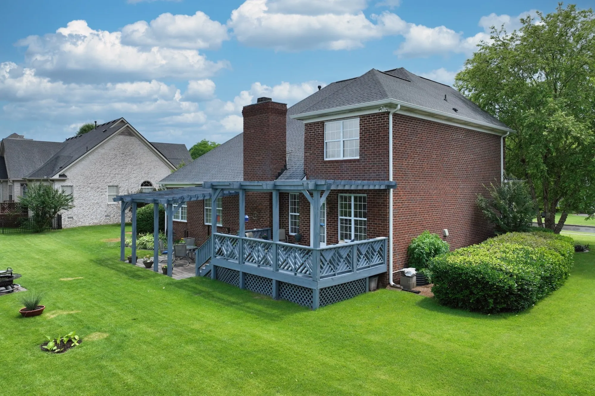 Enjoy outdoor living on the pergola-covered deck and stone patio, overlooking a lush Zoysia lawn framed by mature landscaping. Additional highlights include hardwood floors in primary living areas & ceramic tile baths. Homeowners offering one year 2-10 home warranty with a full price offer.