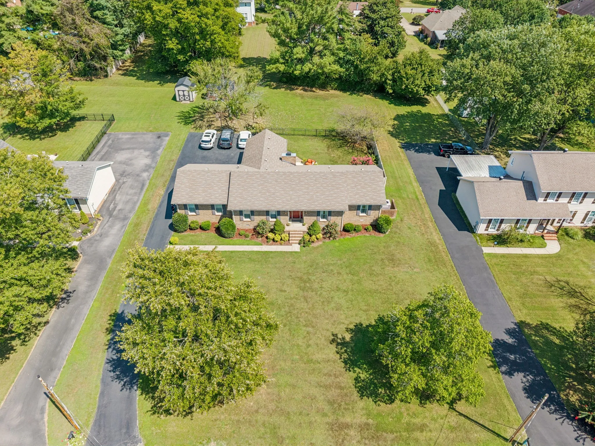 Major Price Improvement! ONE LEVEL ALL BRICK 2300+sq ft home! Move-In Condition! Large 1/2 acre lot! No HOA! Brand NEW HVAC! New 16×10 Storage Building! RING Security System and ALL Appliances including Fridge & Washer/Dryer stay! *Huge Family Room *Separate Den w/Gas Fireplace *Flex Room perfect for Dining or Office *Hardwood Floors *Natural Light *Convenient Location, Location, Location *Established Neighborhood *Mature Landscaping & Trees *Backyard Privacy *Fenced Patio Area *Oversized Garage *Extended Asphalt Driveway *100% Loan Options Available *Preferred Lender Buyer Assistance Available