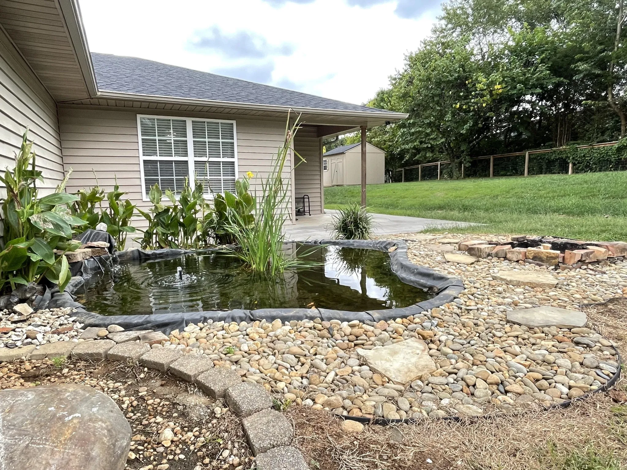 This beautifully maintained ranch style home offers 2 spacious primary suites, perfect for comfort and flexibility all on one level. Step outside to the serene Koi pond and enjoy the privacy of a fenced backyard, ideal for pets, play, or entertaining. A large storage building adds plenty of room for hobbies, tools, or extra belongings.