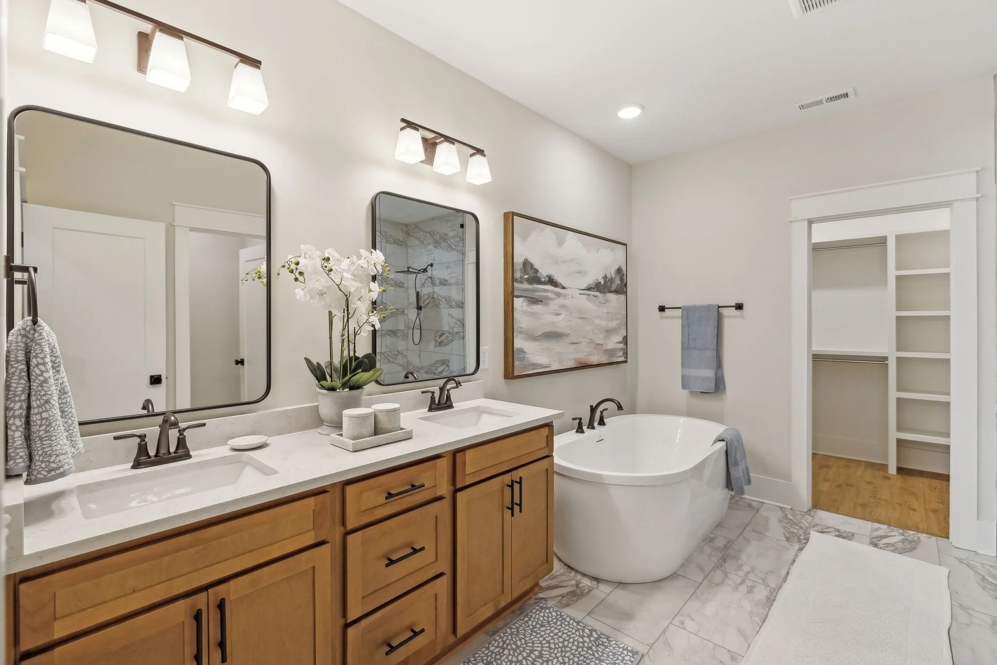 Beautiful New Community Cherry Blossom Downs | The Dogwood A | Interior Package A | 3 Bedroom | 2 Bath | Upgraded Selections Have Been Confirmed See Media Section | Built Ins | Beautiful Cabinets | Quartz Countertops | Laminated Hardwood | Backsplash | Free Standing Tub | Tile Walk in Shower | Board & Batten Shutters | No Steps | Back Porches | Fenced in Yard | HOA Mows Yards | HOA Maintains Landscaping |