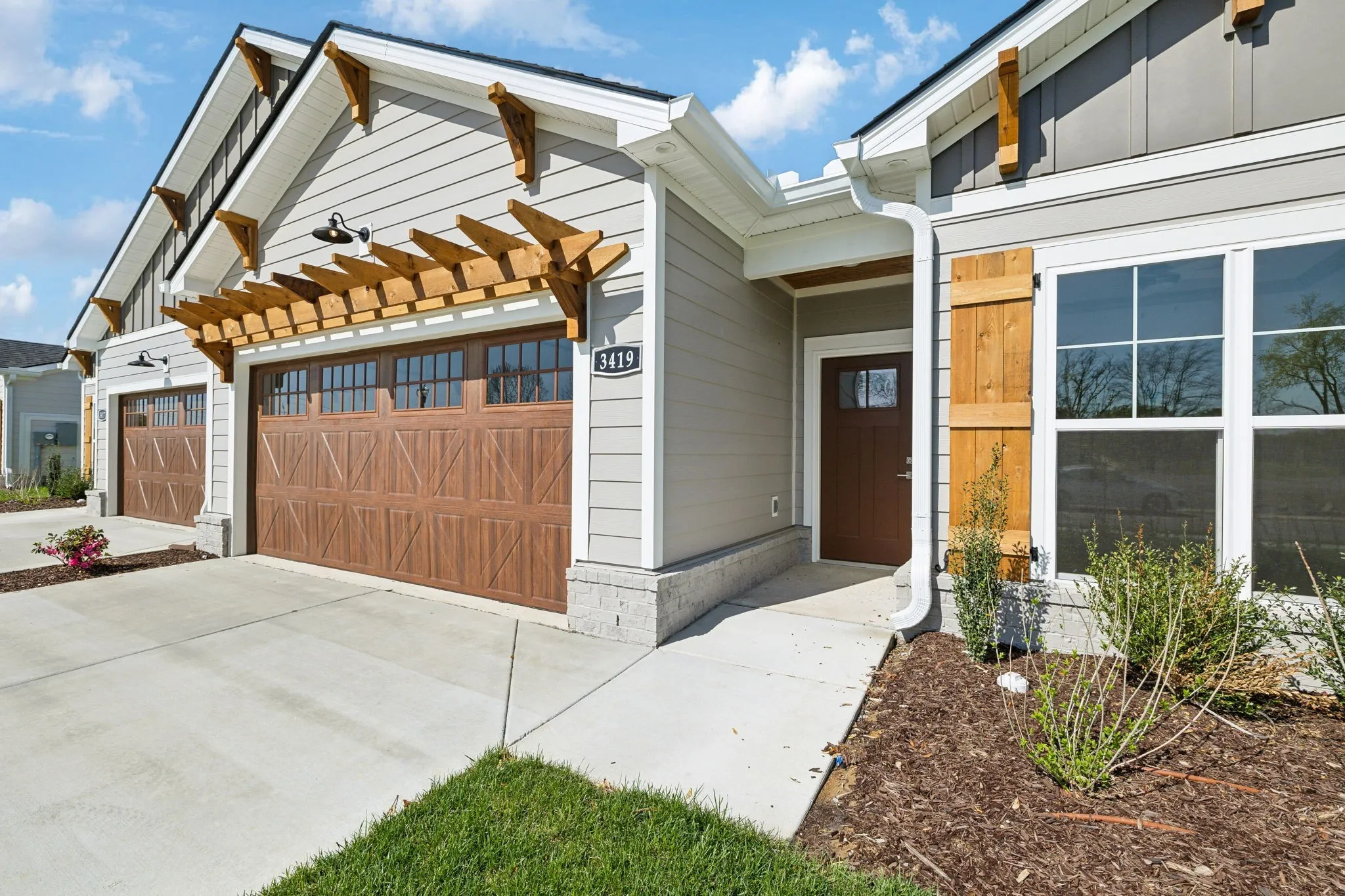 Beautiful New Community Cherry Blossom Downs | The Dogwood Plan A | Interior Package C | 3 Bedroom | 2 Bath | Upgraded Selections Have Been Confirmed See Media Section | Built Ins | Beautiful Cabinets | Quartz Countertops | Laminated Hardwood | Backsplash | Free Standing Tub | Tile Walk in Shower | Board & Batten Shutters | No Steps | Back Porches | Fenced in Yard | HOA Mows Yards | HOA Maintains Landscaping |
