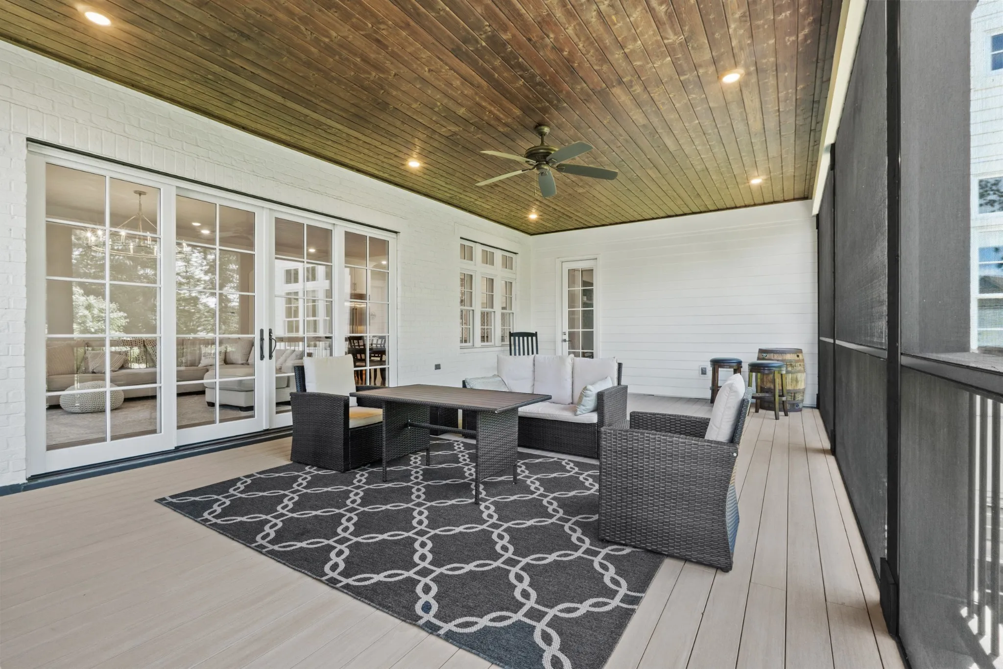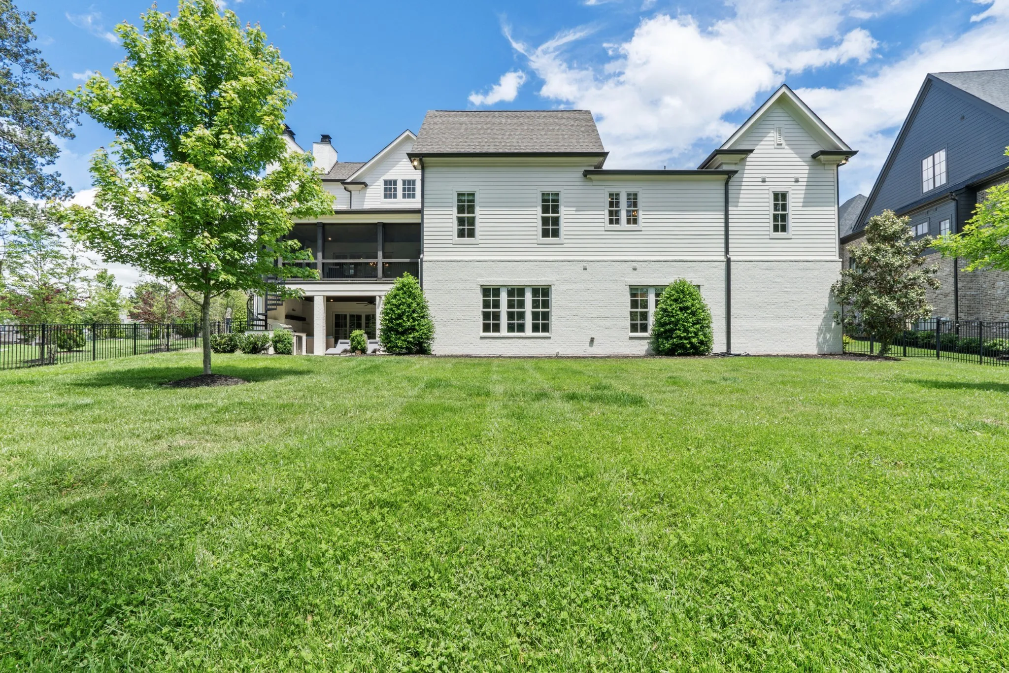 Discover this elegant 6-bedroom home in the exclusive gated community of The Grove. Featuring soaring ceilings, four fireplaces, his-and-hers walk-in closets, a private elevator, and a screened-in porch overlooking a pool-ready backyard. Enjoy rare privacy with two adjacent park-like lots maintained by neighbors.\n