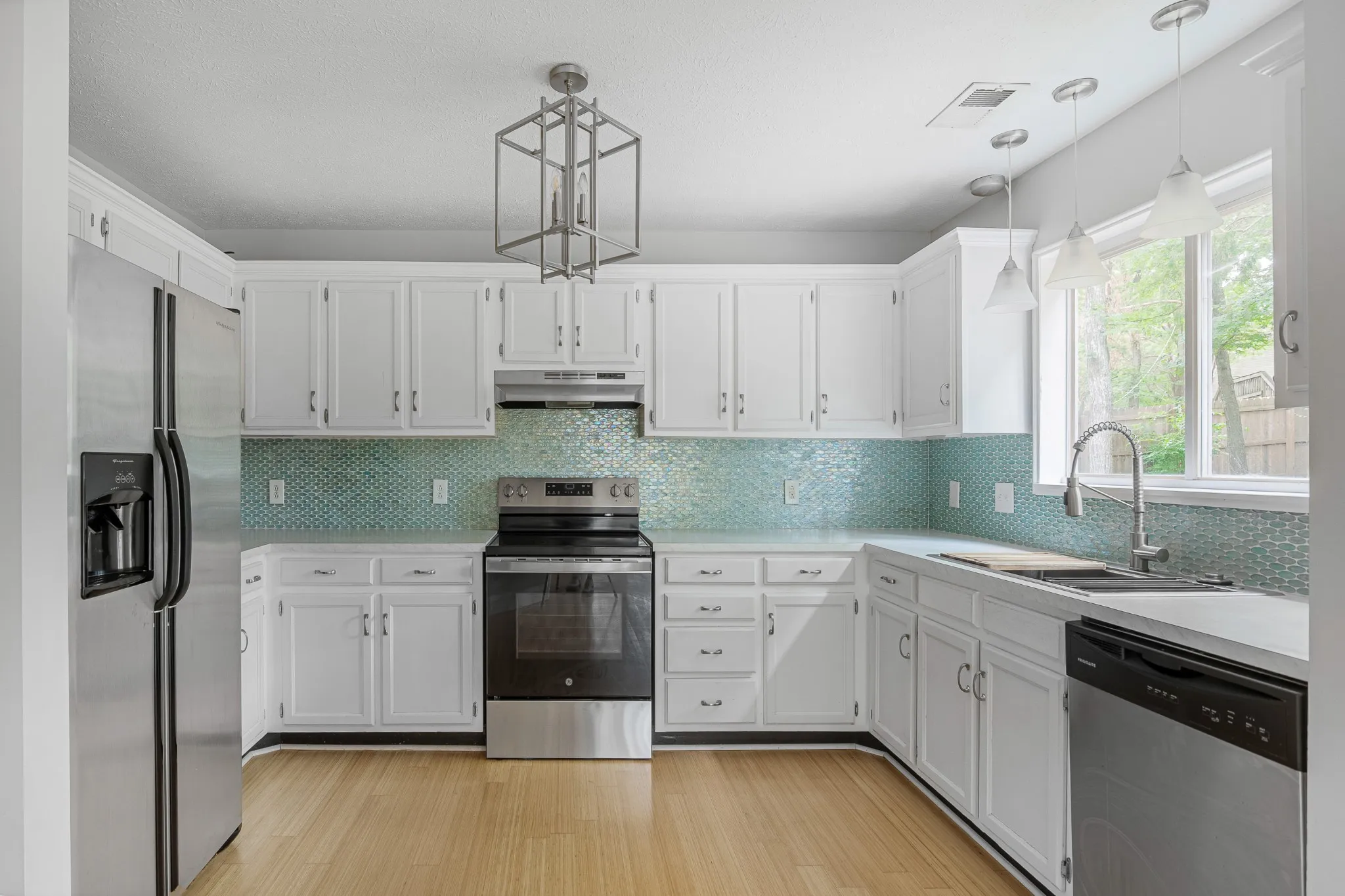 Move-in ready and loaded with modern updates, this beautiful home in sought-after Harbortowne offers comfort, space, and style on a peaceful wooded lot. The updated kitchen features white painted cabinets, fresh white counters, stainless steel appliances—including a brand-new stove—and great flow for everyday living or entertaining. Bamboo floors and abundant natural light create a warm, airy feel throughout the main level. A spacious bonus room and walk-in primary closet both offer built-in storage. A brand-new shower has been added upstairs, offering extra convenience for family or guests. The fenced backyard is perfect for relaxing, gardening, or hosting around a fire pit. Washer, dryer, and all appliances stay.\n