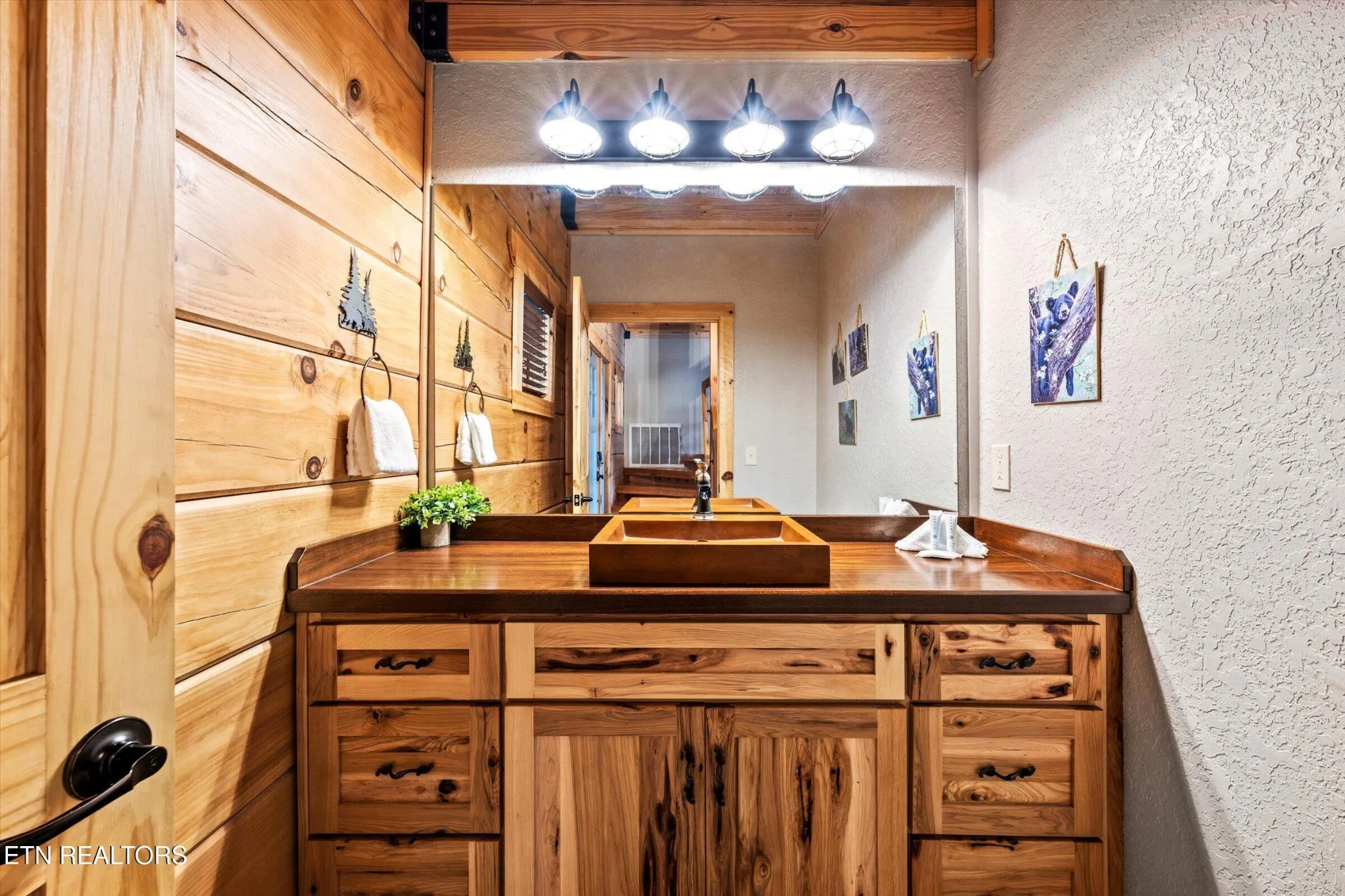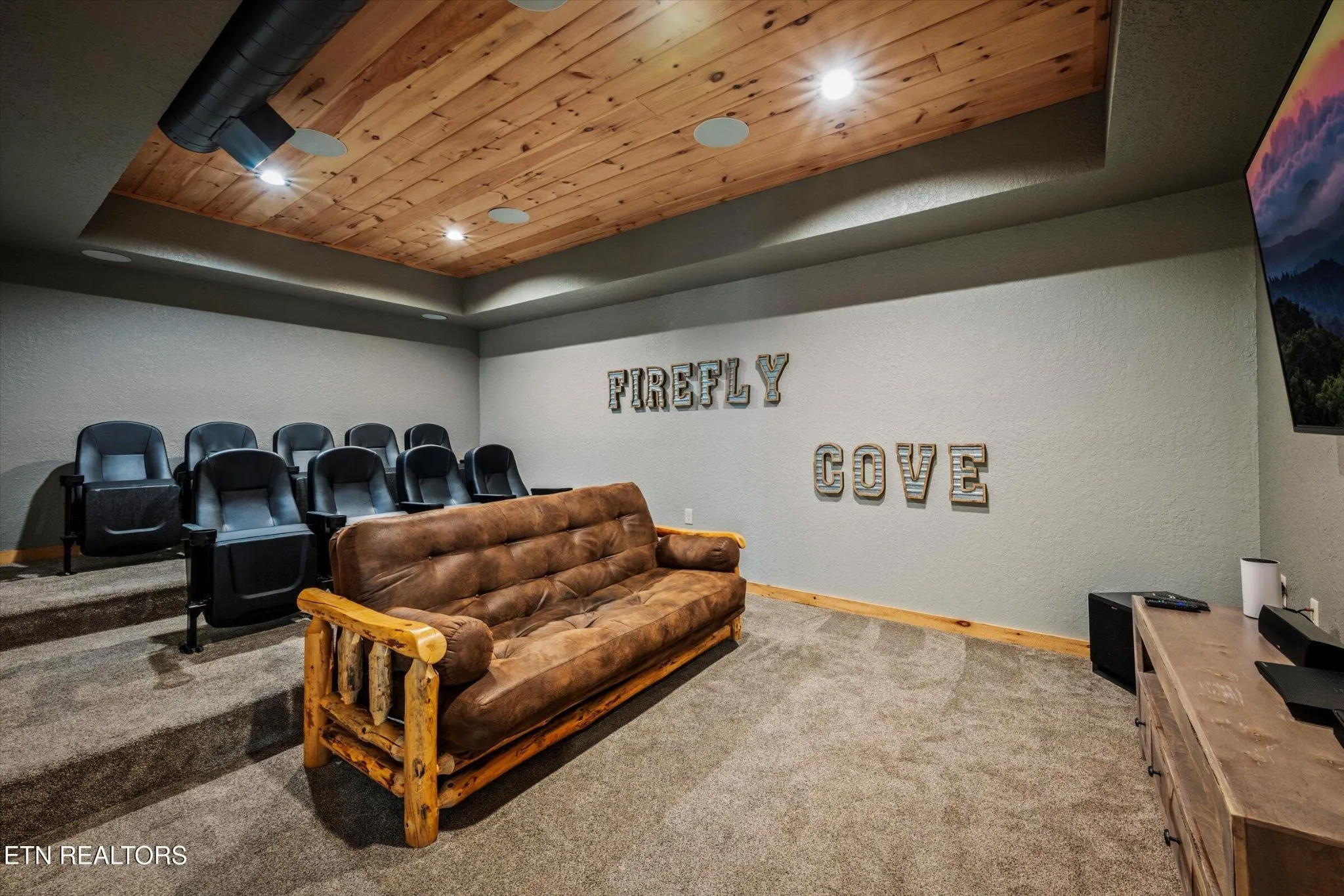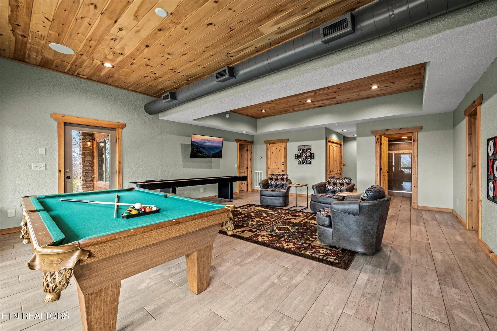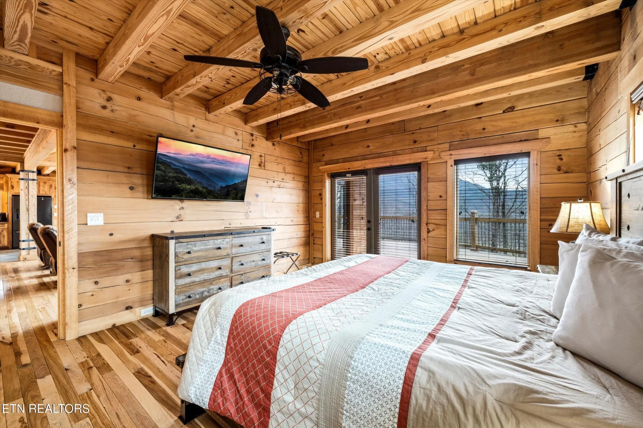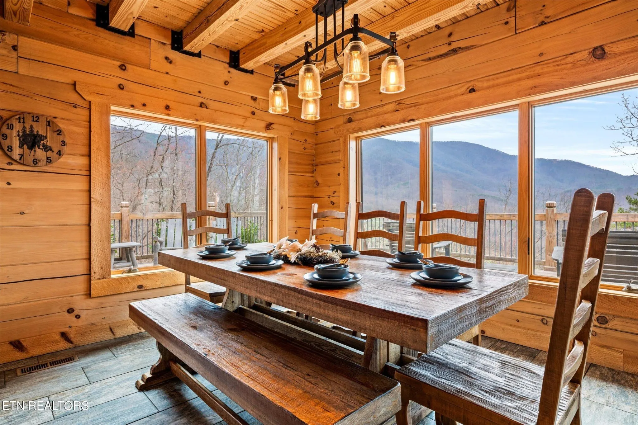 This stunning 5-bedroom, 3.5-bathroom Southland Log Timber Frame Home offers approximately 4300 square feet of luxurious living space on a private 2.89-acre lot with breathtaking, elevated mountain views. Located int eh heart of Wears Vallely, this home is just 15 minutes from Pigeon Forge, 30 minutes to Gatlinburg, and a short drive to the Wears Valley entrance of the Great Smoky Mountains National Park. Designed for both relaxation and entertainment, the home features soaring cathedral ceilings, abundant windows that fill the space with natural light, and a grand stone gas fireplace in the great room. The gourmet kitchen includes custom cabinetry, an oversized island, and premium appliances, making it ideal for hosting. a dedicated game and home theater room provide additional entertainment opportunities. The expansive wrap-around deck on the main level is perfect for outdoor living and offers space for a future outdoor kitchen. The walkout lower level features a hot tub and a scenic outdoor fire pit.