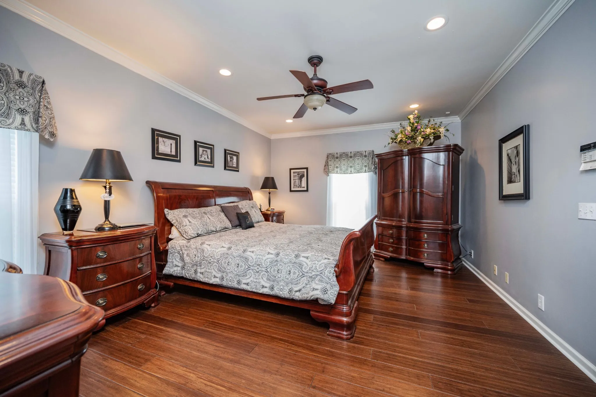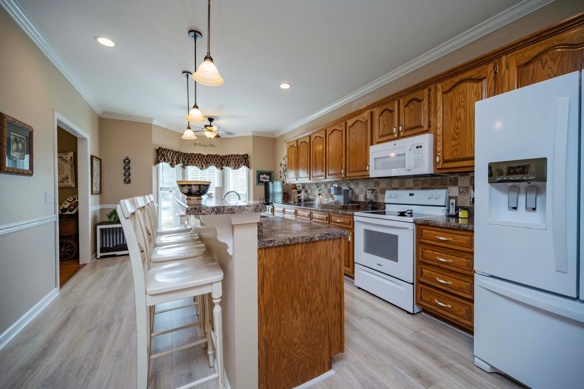 Just outside the city limits with no city taxes in popular Chapel Hills of North Murfreesboro, yet so convenient to daily needs, sits this impressive full brick home on a spacious corner lot. It features partial fencing for the safety of children or pets, and the transition from indoors to outdoors in the comfortable Florida room. The oversized three car garage offers great work space and a utility sink, plus parking suited for a boat or larger truck, and through double doors to outside, a motorhome pad and approximately 12 spaces for parking on the concrete driveway too! A storm shelter and an Alert 360 monitoring system are bonus features! Inside, greet front door guests from the covered front porch into the large foyer and meander through wide hallways in the home to room sizes that will thrill you. Find LVP and hardwood flooring, a formal dining room, new double hung tilt windows with 2 inch blinds, accessible doors on the main floor and crown molding throughout. Enter the kitchen with stone backsplash, a smooth top stove, pantry, and a 4 seater island bar with new pendant lighting. Your laundry room and half, guest bath are nearby. German smear and shiplap surround the fireplace in a beautiful great room. Our spacious primary suite includes the jetted tub and separate easy access shower, the double vanity and a water closet. Upstairs, enter a gathering area overlooking an enormous bonus room with a deep walk in closet there. Two large bedrooms, a nice full bath, more great closet spaces and attic storage complete this floor. You will find closets and storage spaces seldom seen in this well cared for and landscaped property. Schedule your tour and make it your own for the amenities, atmosphere, spaciousness and location!