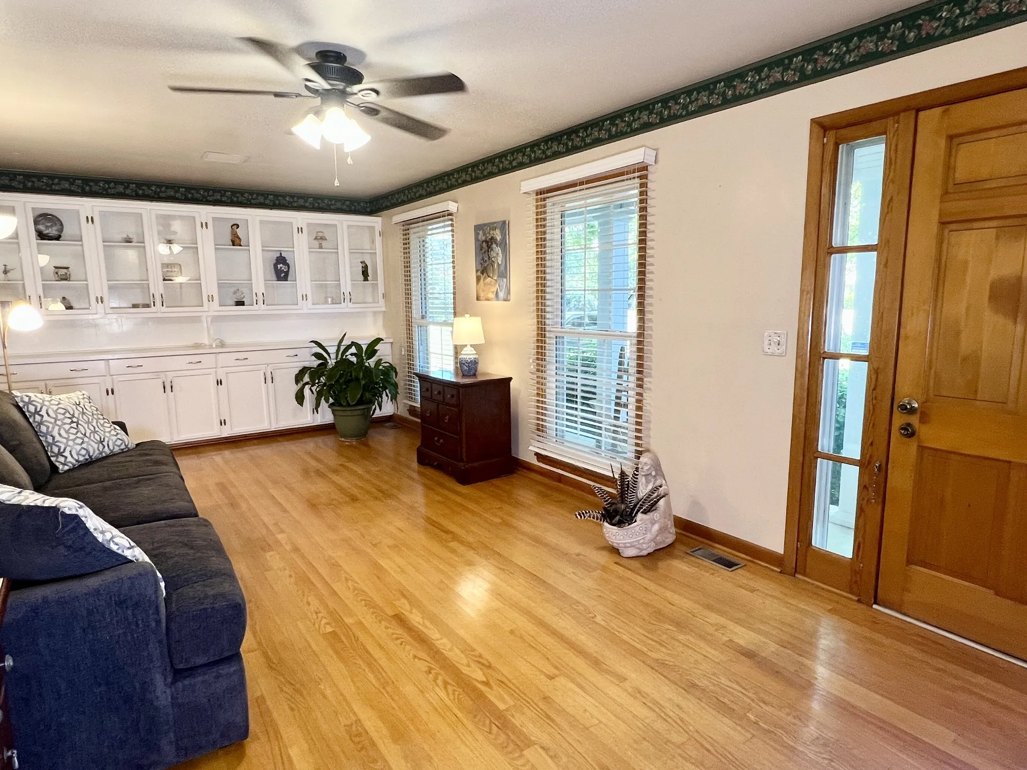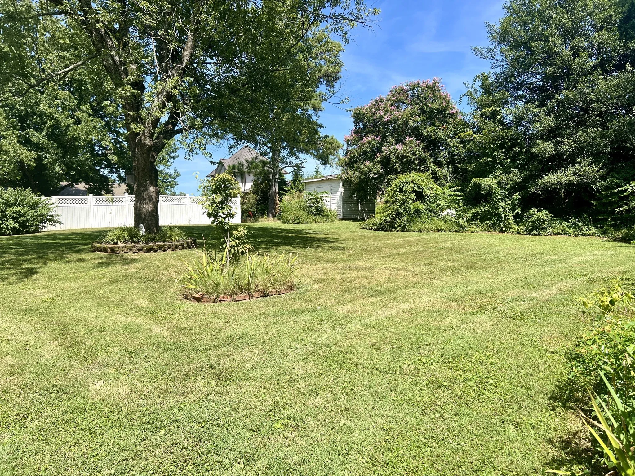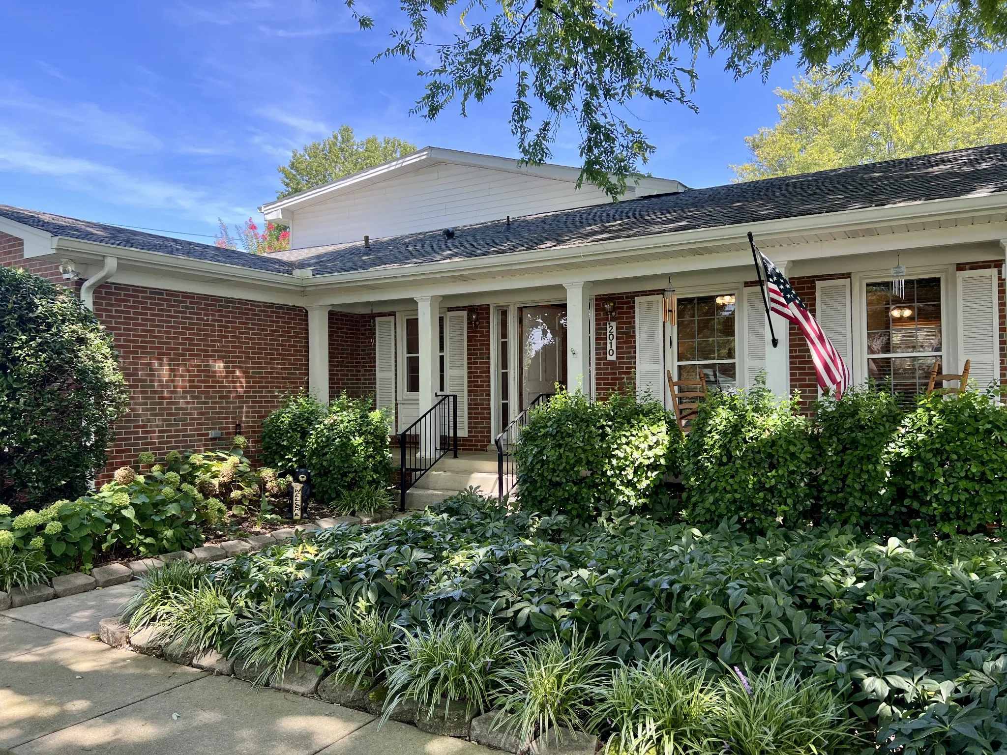 Down a quiet cul-de-sac in a highly desirable neighborhood, sits a spacious Mid-Century charmer in the shade of a beautifully & professionally landscaped half acre. It is truly a rare opportunity to own this prestigious home in the prime location of Murfreesboro! 2010 Sanders Ct awaits your touch to its many possibilities. From the covered front porch your entry is into the formal den with shining hardwood floors, floor length tall windows and wall to wall built in cabinets with glass doors. The kitchen is presented as it was originally designed plus a storage pantry and hardwood paneling. The large dining room off of the kitchen features a lovely built in cabinet and glass display upper cabinets perfect for a beverage station, added serving space, or curio cabinet. Opening from the dining room is the true heart of this home, a huge vaulted living room with gas fireplace and stunning tall shelving. This sizable room has a door to the patio as well as a large storage closet, unique to home of this year. Also in this living room is a large loft waiting for you to make it your own hobby room, fitness space, home office; it has countless options to suit you. This cool space has a large walk in closet, wall length cabinets complete with a sink, in addition to a built in desk with cabinet & shelves. The generously sized primary bedroom features windows overlooking the backyard, a walk in closet and adjoining full bath with extra long vanity space. The front bedroom also has a full ensuite bathroom with a Hollywood glamour vanity. Outside this home is just as comfy feeling as the inside with it’s semi-private space. There is an extra large concrete patio perfect for grilling and chilling overlooking the gardens of the backyard. Ample parking plus a 2 car garage with automatic doors. The front yard is long and level with several mature shade trees. The walkway to the front door is stunning and welcoming with all the green flowing beds. LOW RATE ASSUMABLE MORTGAGE AVAILABLE