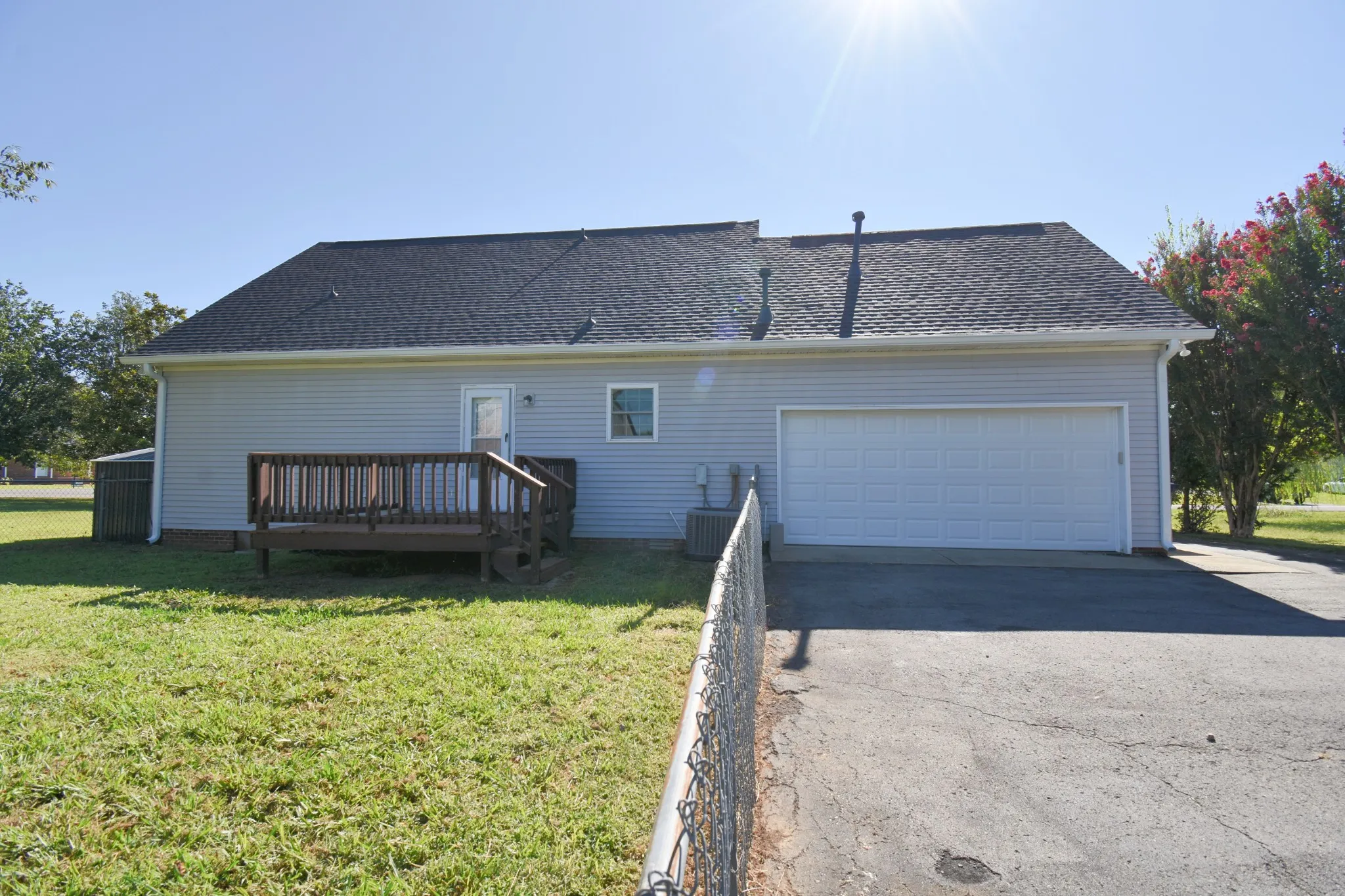Large eat-in kitchen with all brand new stainless steel appliances and tons of cabinets. Master bedroom suite is downstairs and has a private bath with double vanities and two separate closets. Brand new carpet installed! Deck overlooks a large open back yard and great side yard area for letting the kids play, including a fenced-in backyard. Amazing walk-in storage, ceiling fans and 2 car attached garage! Located on a large lot in a quiet subdivision by a cul-de-sac. NO HOA! Brand new roof and gutters installed Aug, 2025.
