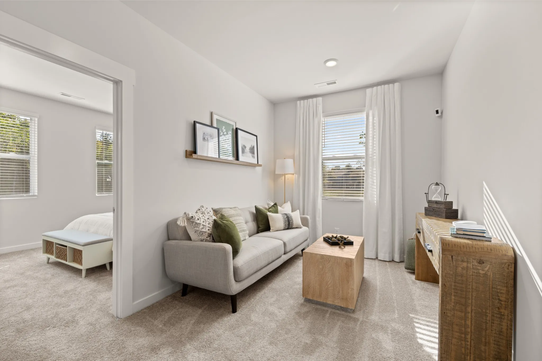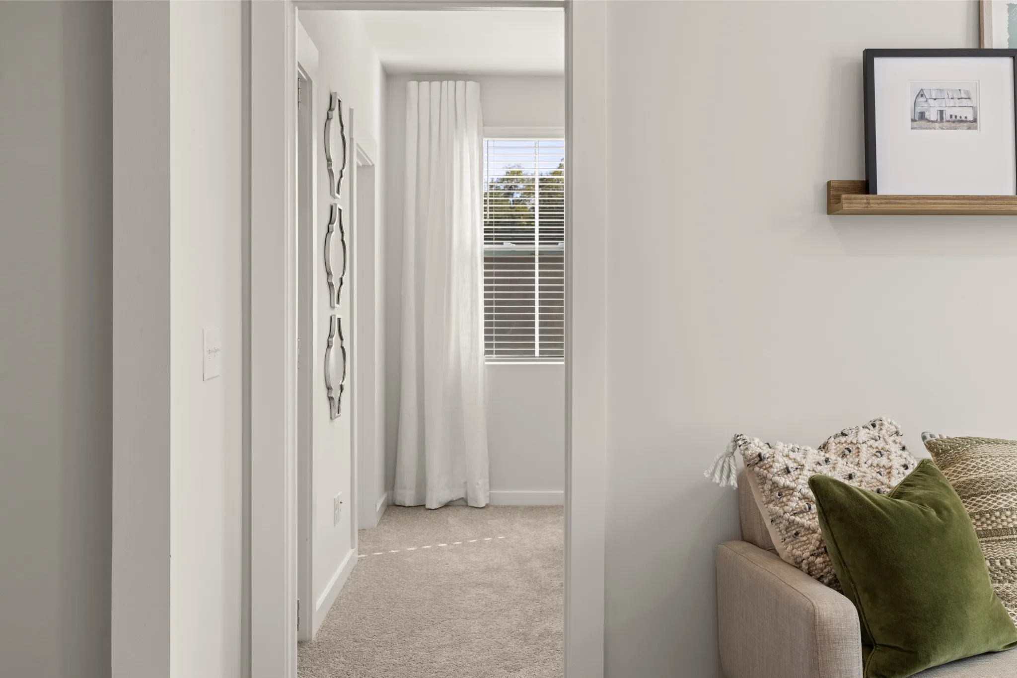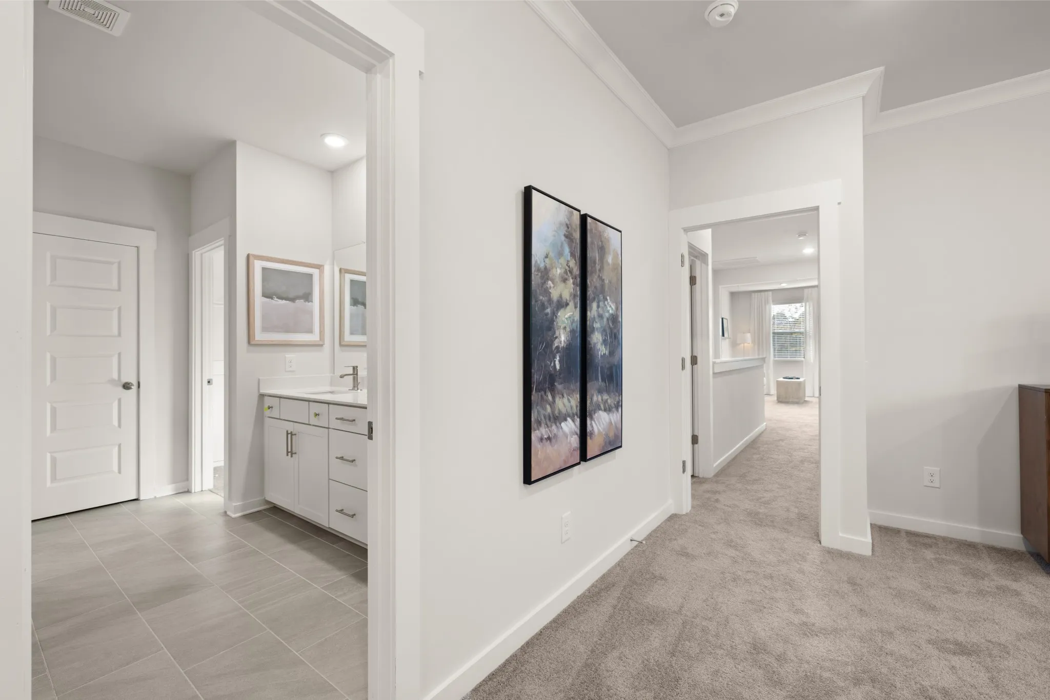 LOT #61 – Winston floorplan. This expansive single-family home presents two floors designed for gracious living and entertainment. At the heart of the first floor is a welcoming family room with a center fireplace, which connects to the chef-ready kitchen, casual dining nook and a large covered patio. A private study and an upstairs loft provide additional living space. There is a total of five bedrooms, all of which boast direct access to a full-sized bathroom. Rounding out the home is a three-car side load garage. *Images from a furnished model of this home. Actual configuration and features may vary.