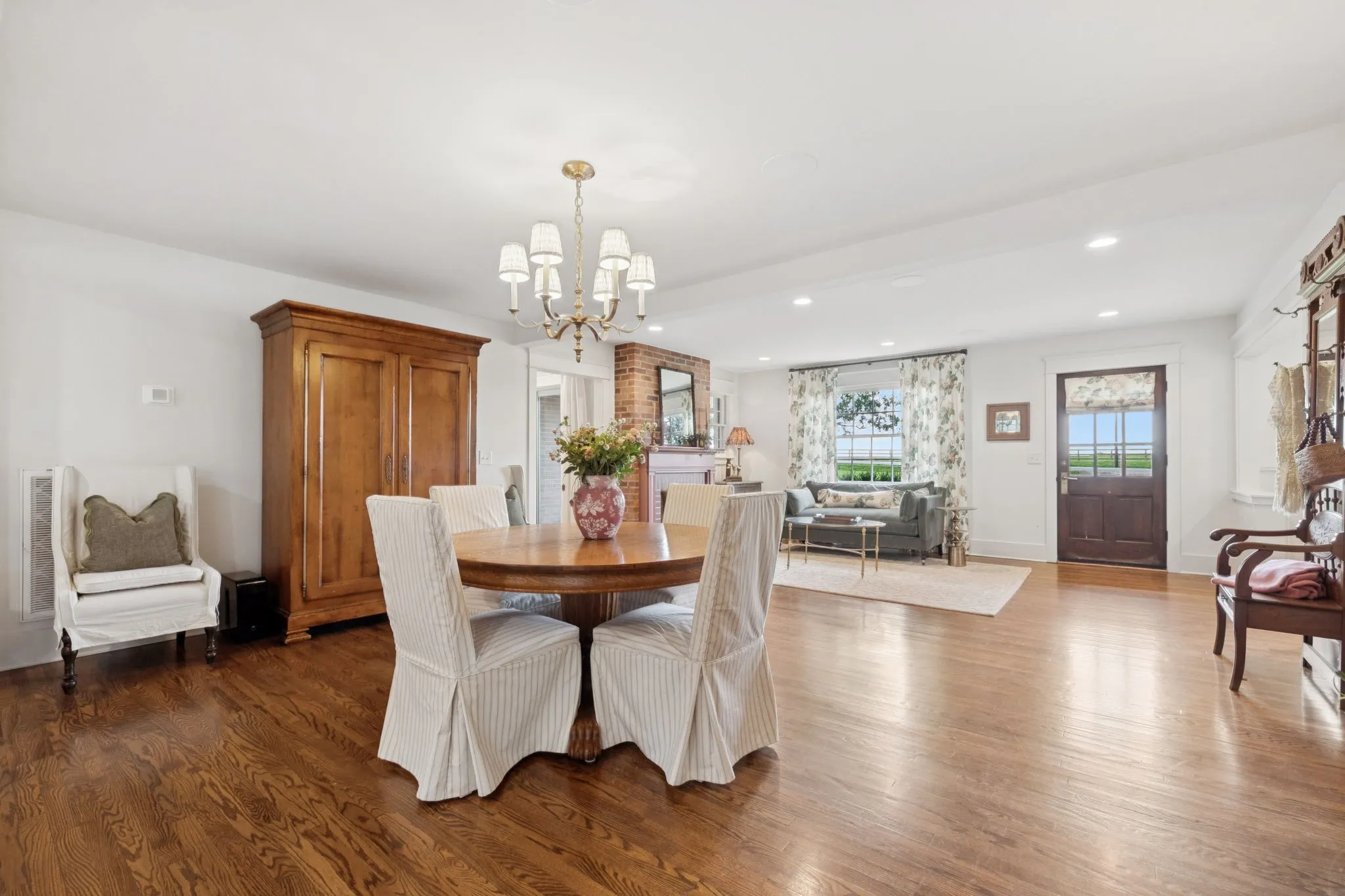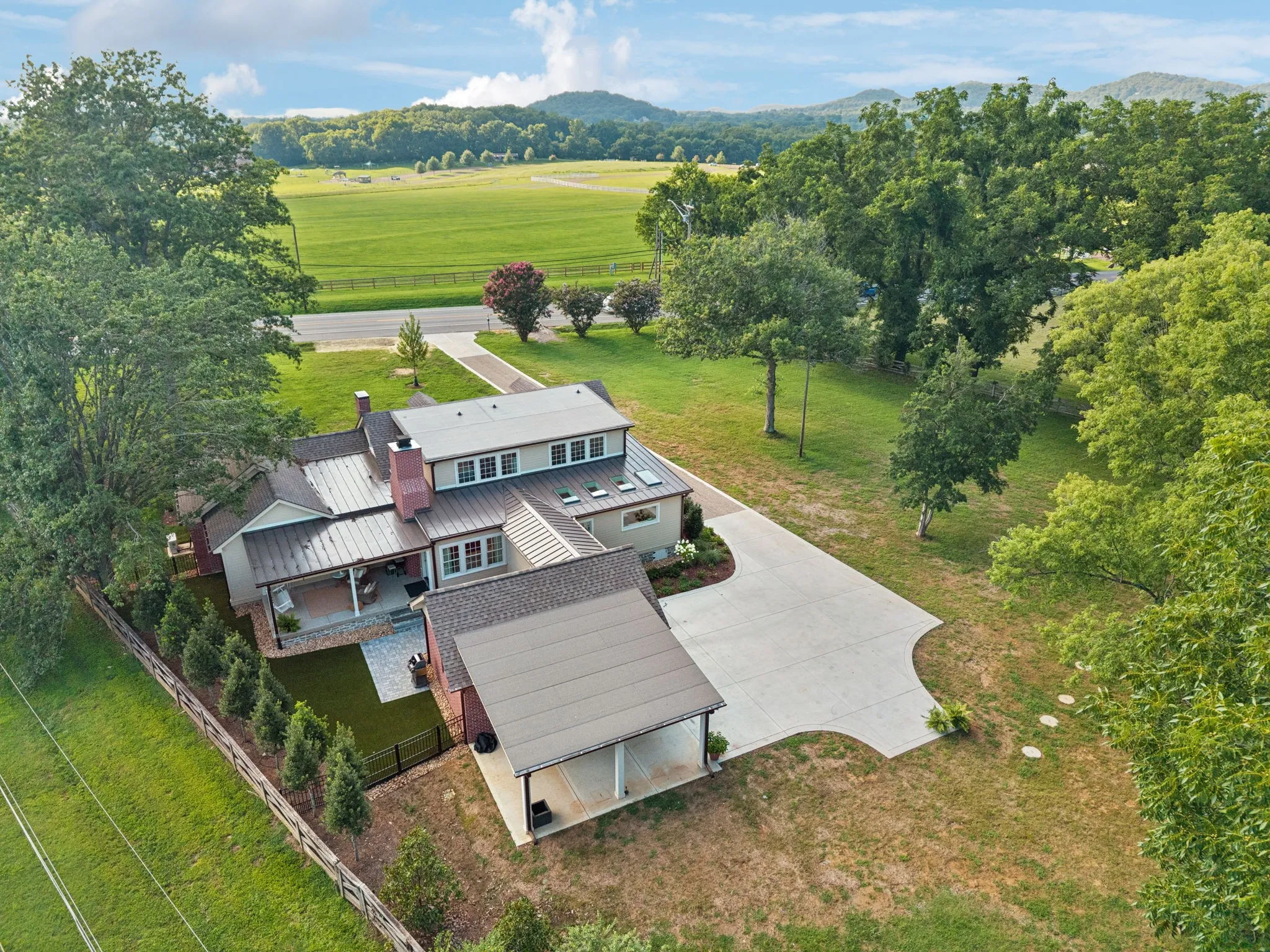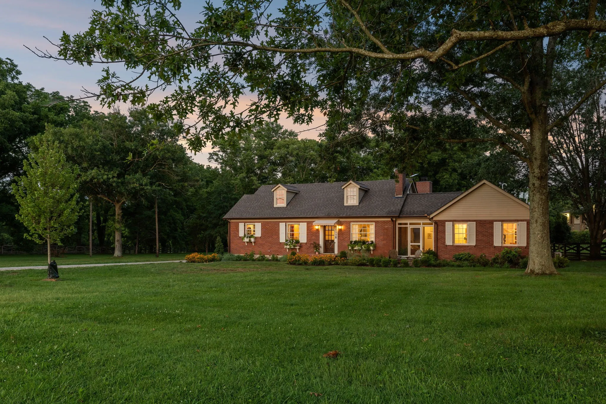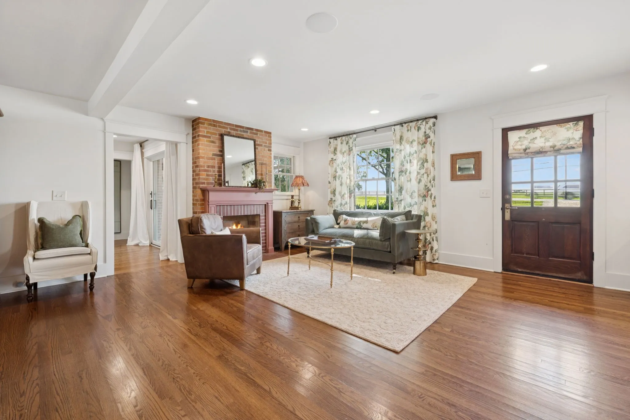 Experience timeless charm and modern elegance in this stunning brick home, perfectly nestled on a mature, tree-lined 2.83-acre lot in the heart of Williamson County. Enjoy mainly one-level living with an open-concept floor plan that is both functional and beautiful, featuring hardwood floors throughout and a bright, airy interior. The chef’s kitchen is a true showstopper—flooded with natural light from four skylights and designed with seamless paneled appliances, a spacious island, cozy breakfast nook, and wet bar. Two fireplaces add warmth and ambiance to the thoughtfully designed living spaces. The main level offers two bedrooms, two full bathrooms, and a powder bath, while the upper level includes a third bedroom, two full baths, and a versatile rec room—ideal for guests or a private retreat. Outdoor living is just as impressive with a charming screened-in front porch, a large covered back porch, and a serene patio overlooking the pristine acreage. Located just minutes from Historic Downtown Franklin, across the street from the beloved Park at Harlinsdale Farm, and down the road from The Factory at Franklin, this home is zoned for top-rated Williamson County schools and offers the perfect blend of location, lifestyle, and land. A true Franklin gem!
