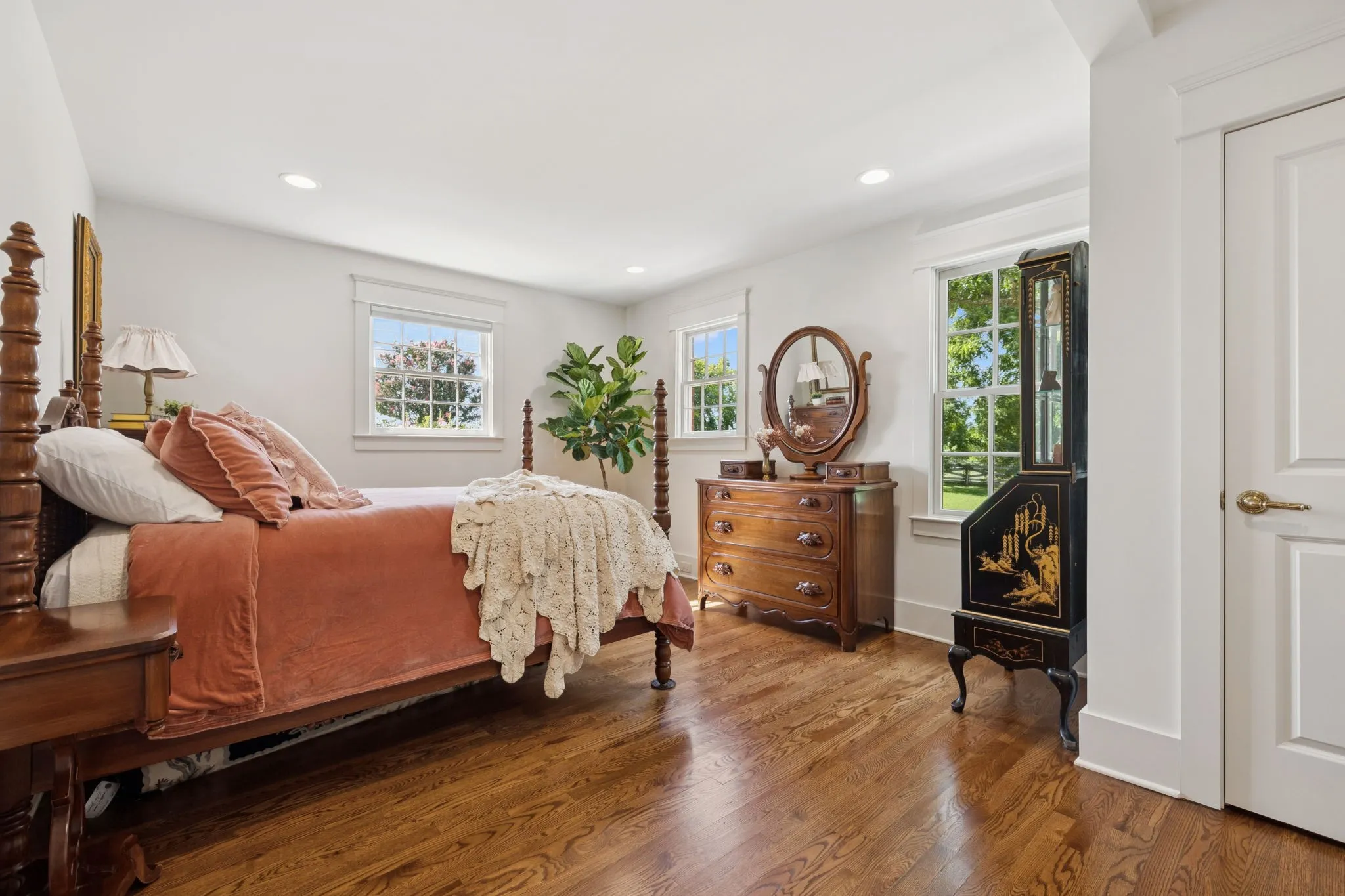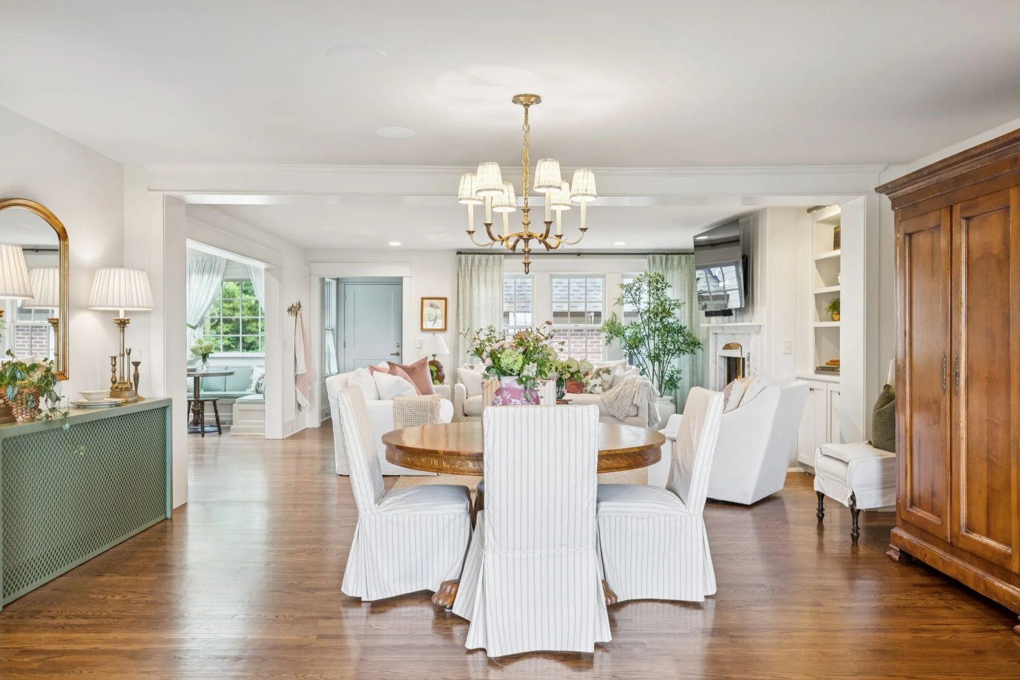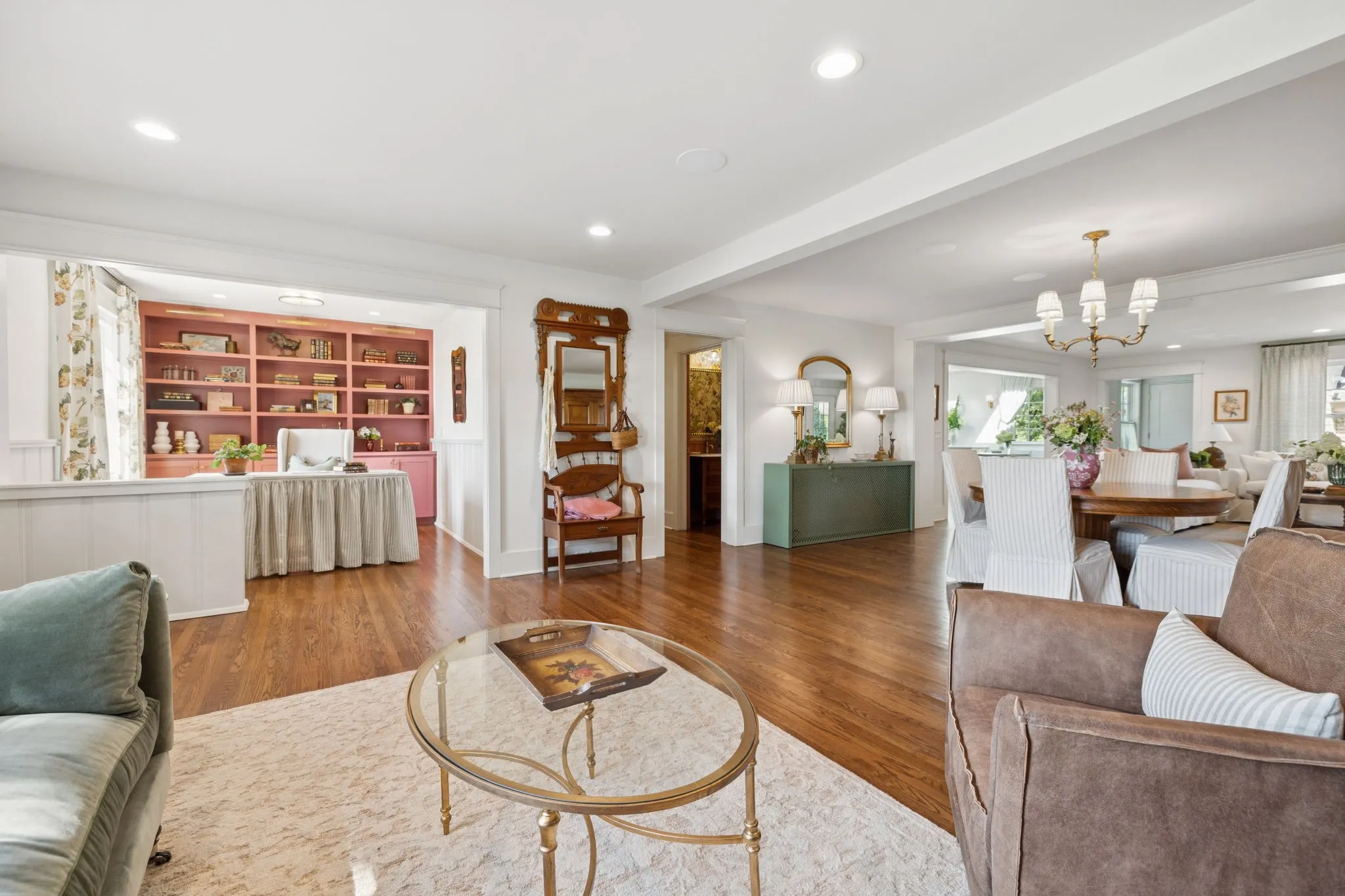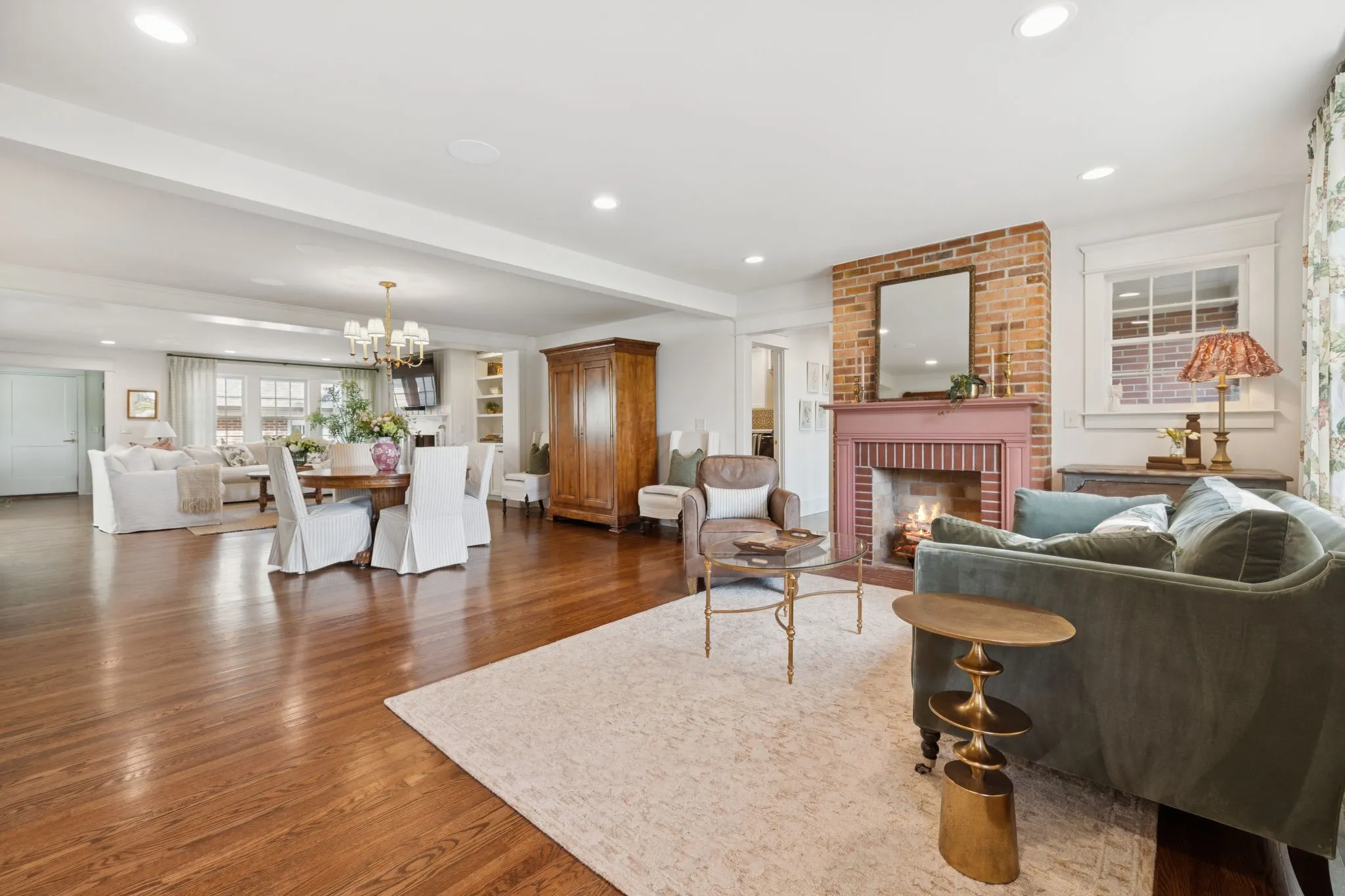 Experience timeless charm and modern elegance in this stunning brick home, perfectly nestled on a mature, tree-lined 2.83-acre lot in the heart of Williamson County. Enjoy mainly one-level living with an open-concept floor plan that is both functional and beautiful, featuring hardwood floors throughout and a bright, airy interior. The chef’s kitchen is a true showstopper—flooded with natural light from four skylights and designed with seamless paneled appliances, a spacious island, cozy breakfast nook, and wet bar. Two fireplaces add warmth and ambiance to the thoughtfully designed living spaces. The main level offers two bedrooms, two full bathrooms, and a powder bath, while the upper level includes a third bedroom, two full baths, and a versatile rec room—ideal for guests or a private retreat. Outdoor living is just as impressive with a charming screened-in front porch, a large covered back porch, and a serene patio overlooking the pristine acreage. Located just minutes from Historic Downtown Franklin, across the street from the beloved Park at Harlinsdale Farm, and down the road from The Factory at Franklin, this home is zoned for top-rated Williamson County schools and offers the perfect blend of location, lifestyle, and land. A true Franklin gem!