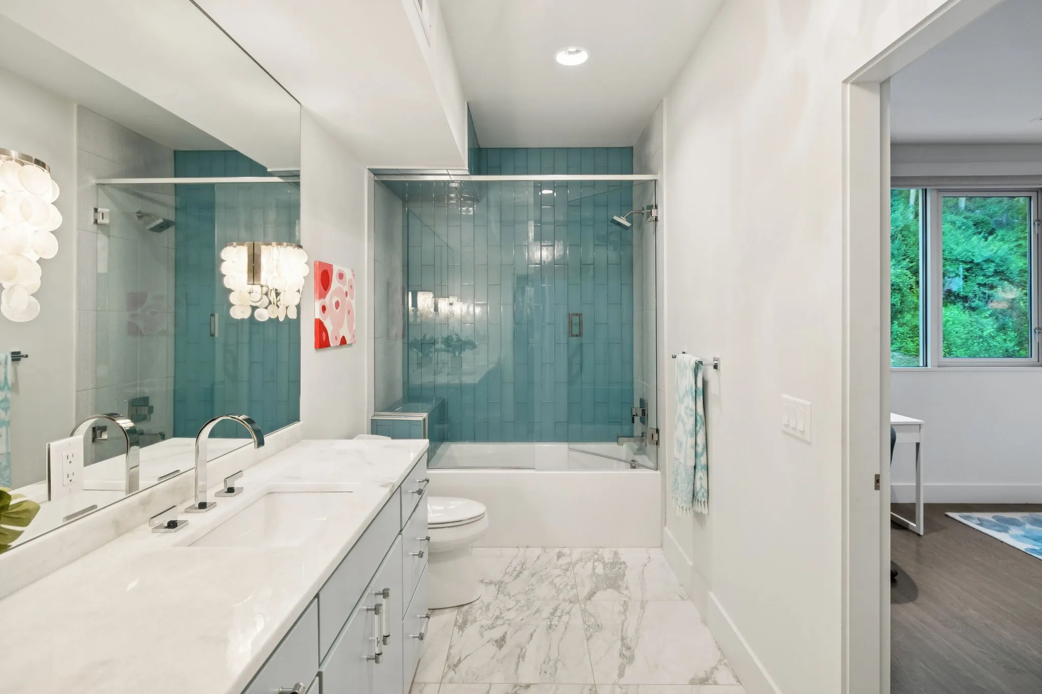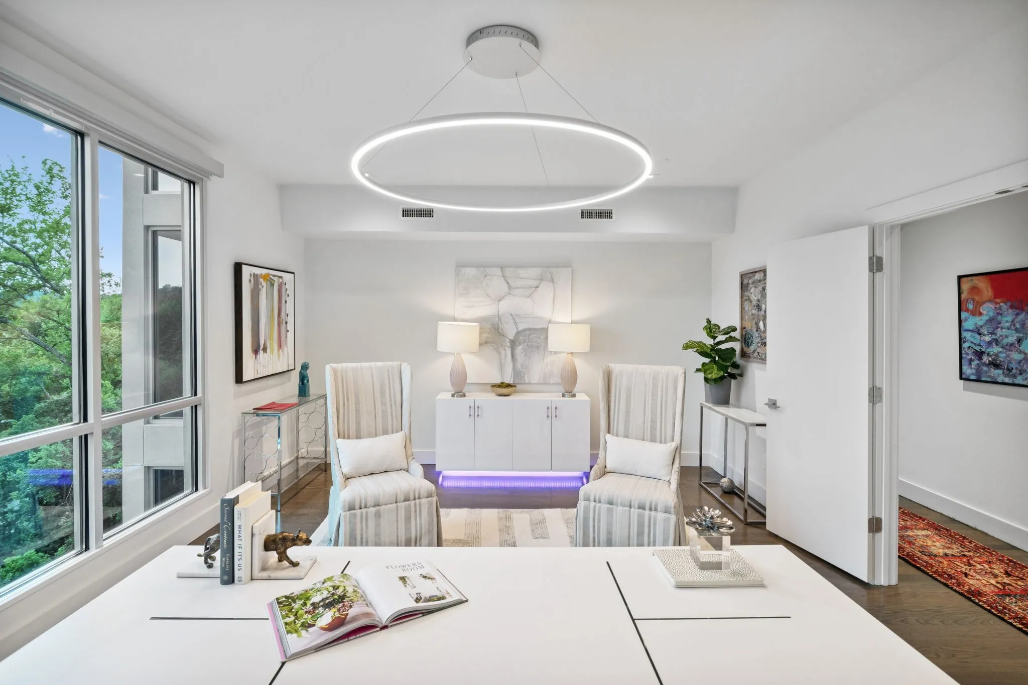 "LongDescription" => "Beautiful doors out to the deck. More stunning green views."