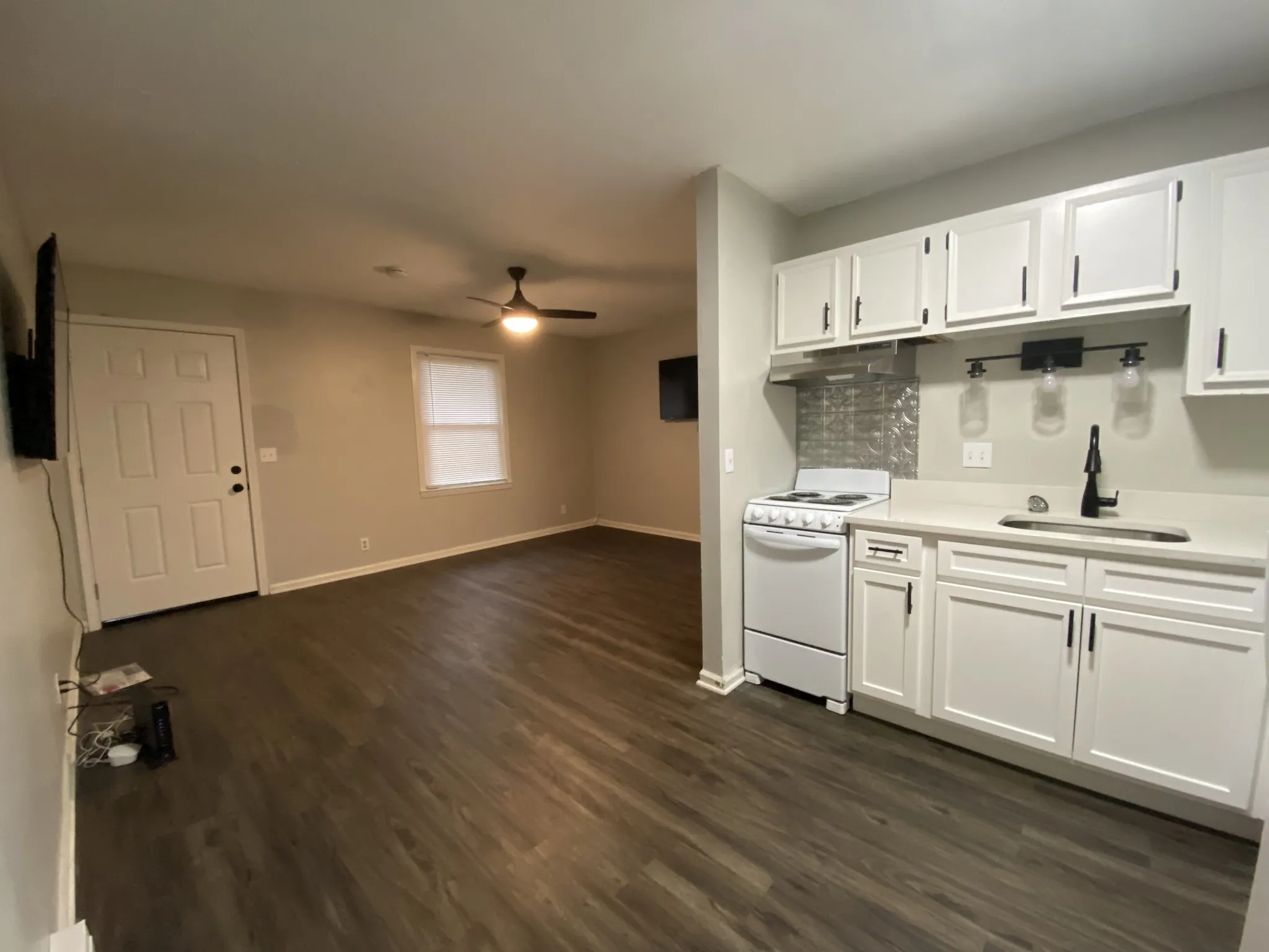 ALL NEW INTERIOR. Water, trash and lawn included. Close to I-24, 1 BR in quadplex building on quiet street. Unit is on the main/1st level. AVAILABLE NOW!! 50″ mounted TV also included!! New quartz countertops, new stove (24″), neutral paint, new hardwood flooring & fixtures. Approx. 620 sq ft, central heating, window a/c unit, & W/D hookups in unit. Private backyard. Credit & background check req. 12-month lease. Up to two pets negotiable with pet fee and pet rent (breed and weight restrictions on dogs). ALL UTILITIES CAN BE INCLUDED for an additional $265/month (water/sewer, trash, lawn, PLUS WIFI, Electric, quarterly pest control).