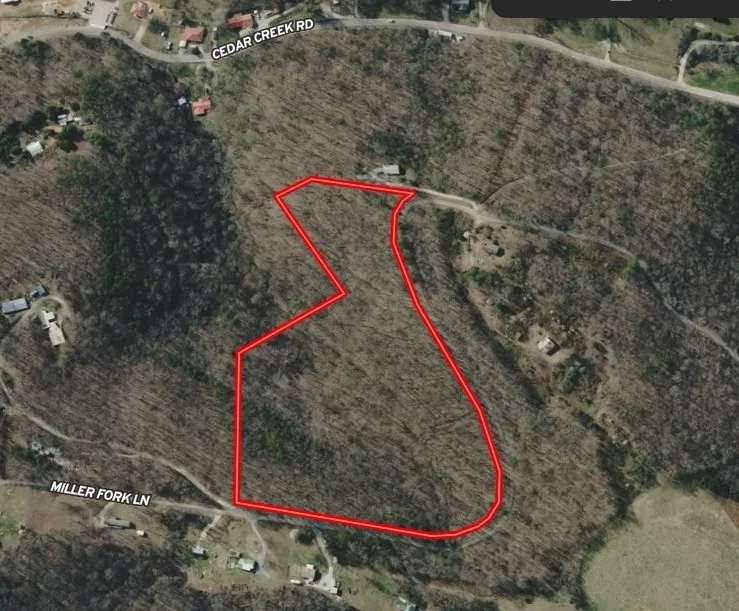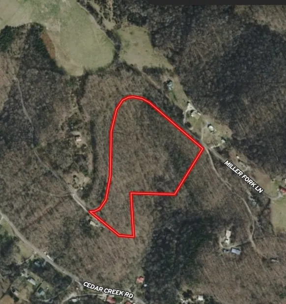 0 Cedar Creek Rd (Lot 1), La Follette, TN 37766 — 16.19 acres with electricity available and a desirable lay of the land: gently sloping in several areas, dipping toward the middle for privacy, views, and a natural homesite. Big enough for a custom home or barndominium plus pasture, garden, trails, and a workshop—equally suited to a weekend retreat or mini-farm.