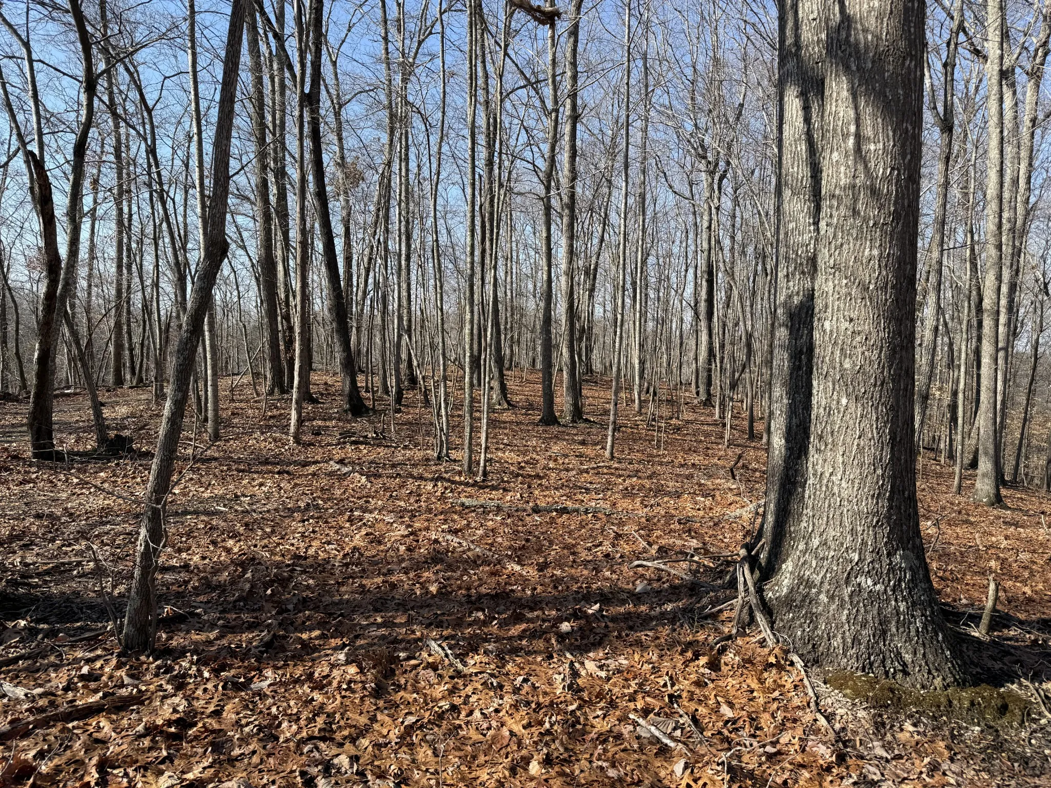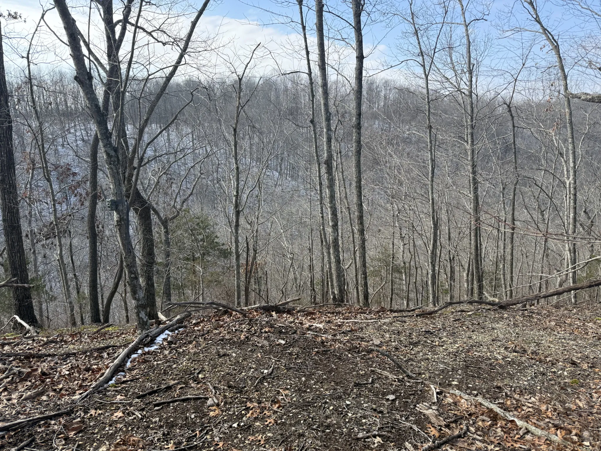 Unrestricted 18+ Acres located in rural area with few neighbors but lots of wildlife. Mostly hardwoods especially oaks with a small creek at bottom of hollow. Level driveway leads to large level ridge top homesite with views. Electric, city water and fiber optic at county road along front of properTy.