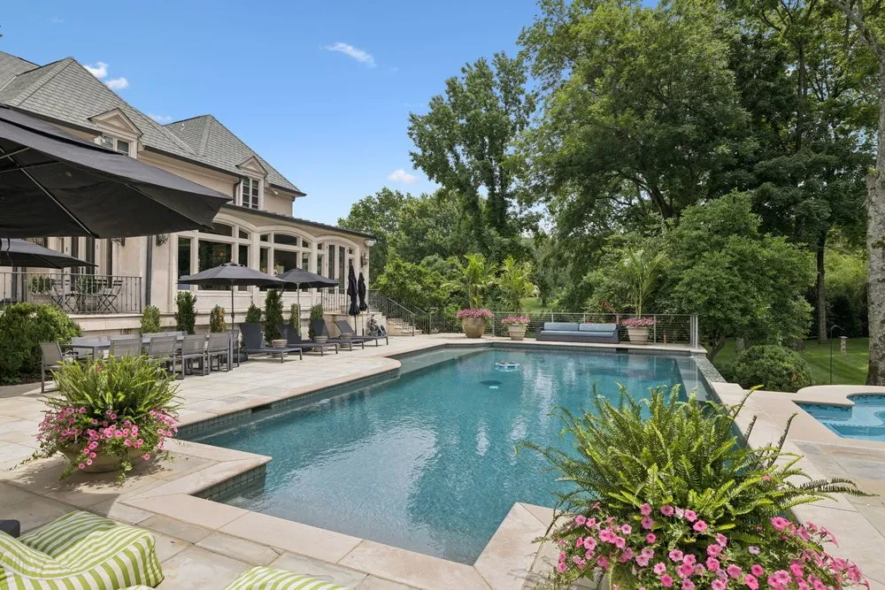 Located in one of Oak Hill’s most desirable neighborhoods, 834 Tyne Valley Ct is the definition of modern elegance. Set on two private, level acres, this home is 10 minutes from Green Hills, Brentwood, and Downtown. This home has undergone a meticulous renovation that is designed for approachable luxury living. Enter through a dramatic two-story foyer featuring a sweeping staircase. Primary suite offers every luxury—ventless gas fireplace, spa-like bath with heated floors, steam shower, his and hers vanities and dual water-closets. The sprawling custom-closet is your own personal boutique; a showcase of sophistication featuring glass-fronted cabinets integrated with LED lighting to illuminate every detail. The expansive chef’s kitchen features double islands, premium Wolf and Sub-Zero appliances, three ovens, breakfast area and two pantries. Additional main-level highlights include a private office/library, expansive laundry room with two stacked washer/dryer units, a family room with bar area equipped with dual 86-bottle Sub-Zero wine columns with refrigerator drawers. Glass four seasons room that overlooks the property and pool. Poured concrete foundation surround the fully remodeled lower level and includes a home theater, game room, art studio, wine cellar, full kitchen, gym with sauna, and an attached 5 car garage. You are not short on storage space with multiple walk in attic spaces and additional storage rooms. Outside features premier amenities with a heated saltwater gunite pool and spa, outdoor kitchen, covered porch with heaters, and gated treelined yard for every privacy. The pool house provides additional living space and features 17 foot ceilings, office studio, a full Show Kitchen with Wolf and Fisher & Paykel appliances, full bath, and seamless indoor/outdoor flow via Renlita retractable door. Reliability is a key feature of the home complete with a generator and Smart Home technology to run the entire home from your personal device.