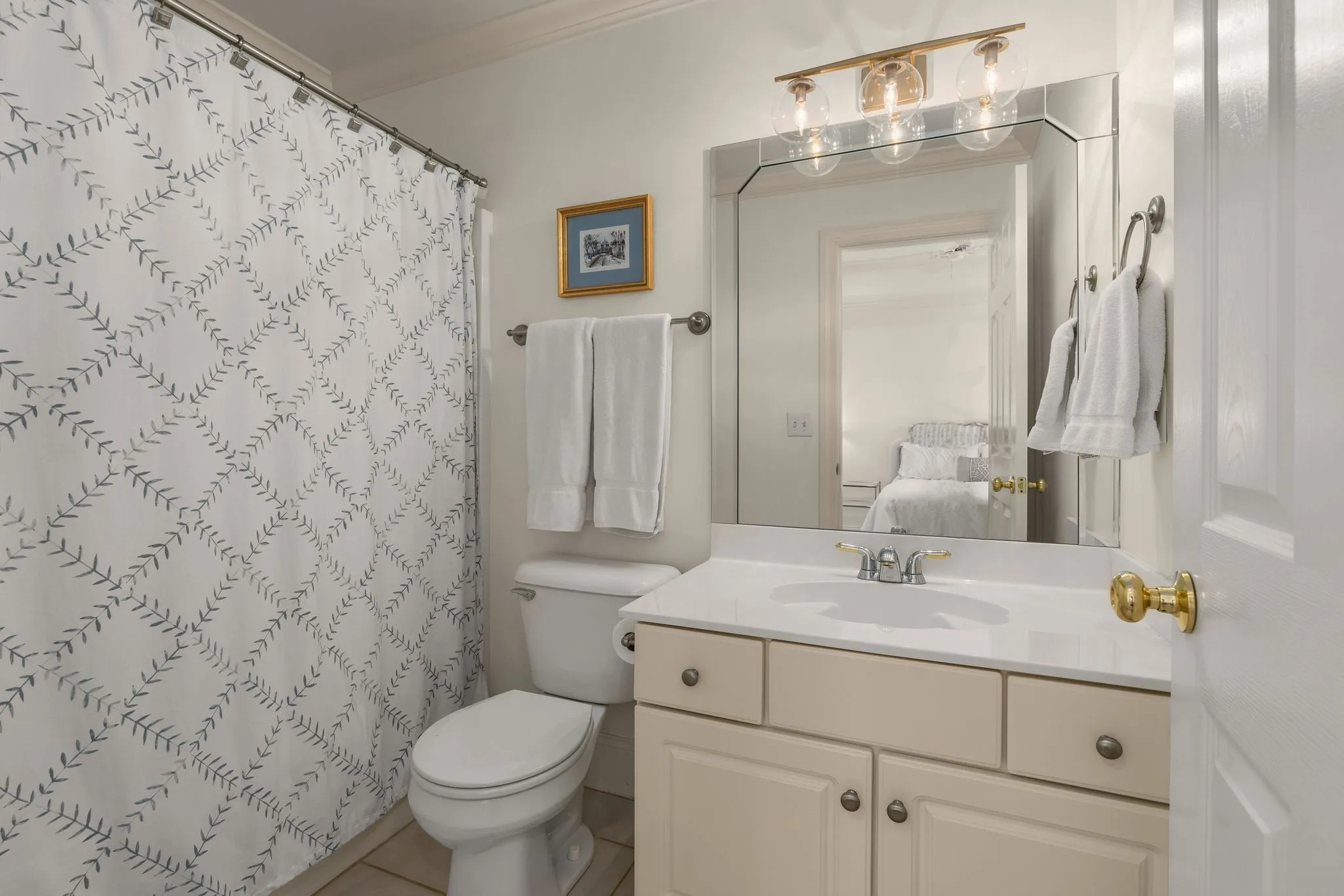 Nestled on a quiet cul-de-sac along the 10th hole of Old Natchez Country Club, this elegant two-story white brick home offers 4 bedrooms, 3.5 bathrooms, and 3,473 square feet of thoughtfully updated living space. The kitchen was fully renovated in 2023 and features Cambria quartz countertops, stainless steel appliances, white cabinetry, and a bright eat-in area overlooking the backyard. Designer lighting throughout the home is from Visual Comfort, adding a sophisticated touch to each space.\n