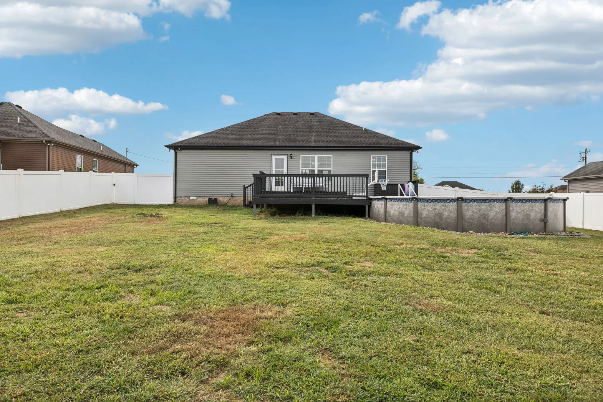 Charming 3BR/2BA home with Pool & great location! This inviting open-concept design with zoned bedrooms for privacy is perfect for gathering. The kitchen and living area flow seamlessly, perfect for everyday living and entertaining. Relax on the covered front porch sitting area or enjoy summer days on the back deck overlooking the above-ground pool with no backyard neighbors and a fully privacy fenced back yard. Additional highlights include a 2-car garage and a sought-after location zoned for Blackman Middle & High. Just minutes to The Avenue Murfreesboro for shopping, dining, and more
