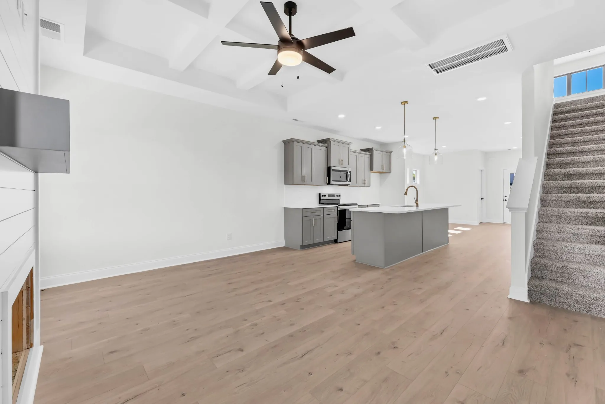 Brand New Montgomery Plan! This stunning new home is nearing completion! Located minutes from Fort Campbell, shopping, and dining, this thoughtfully designed home features an open-concept layout perfect for both everyday living and entertaining. The living room includes a cozy electric fireplace with stylish shiplap detailing and a beautiful trey ceiling. The kitchen offers granite countertops, upgraded cabinetry, and premium stainless steel appliances. Durable laminate flooring flows through the main living areas, with soft carpet in the bedrooms and tile in the bathrooms. The spacious primary suite features a trey ceiling, walk-in closet, double vanities, and a beautiful walk-in shower. Enjoy the private backyard with mature trees and back patio.