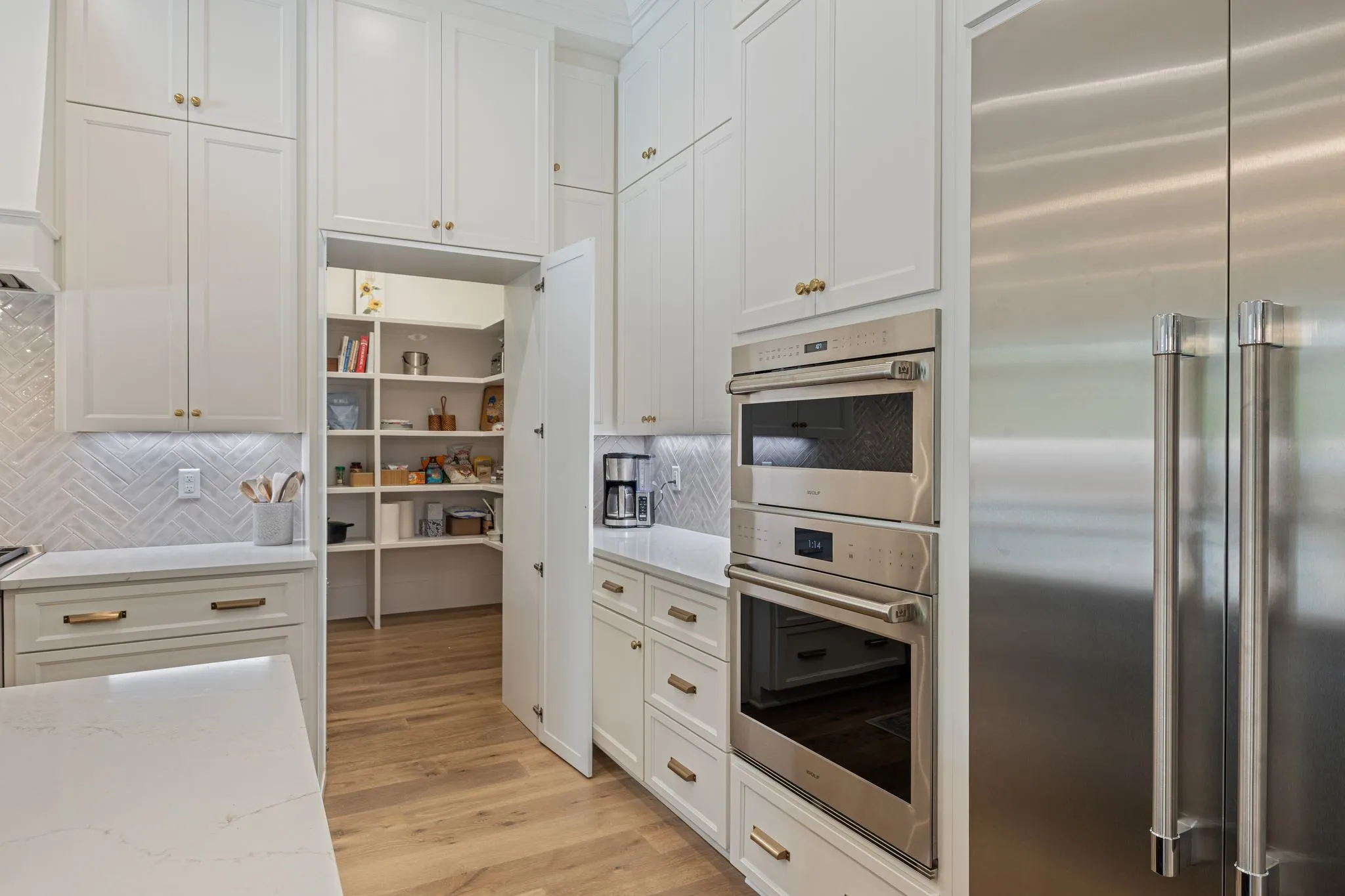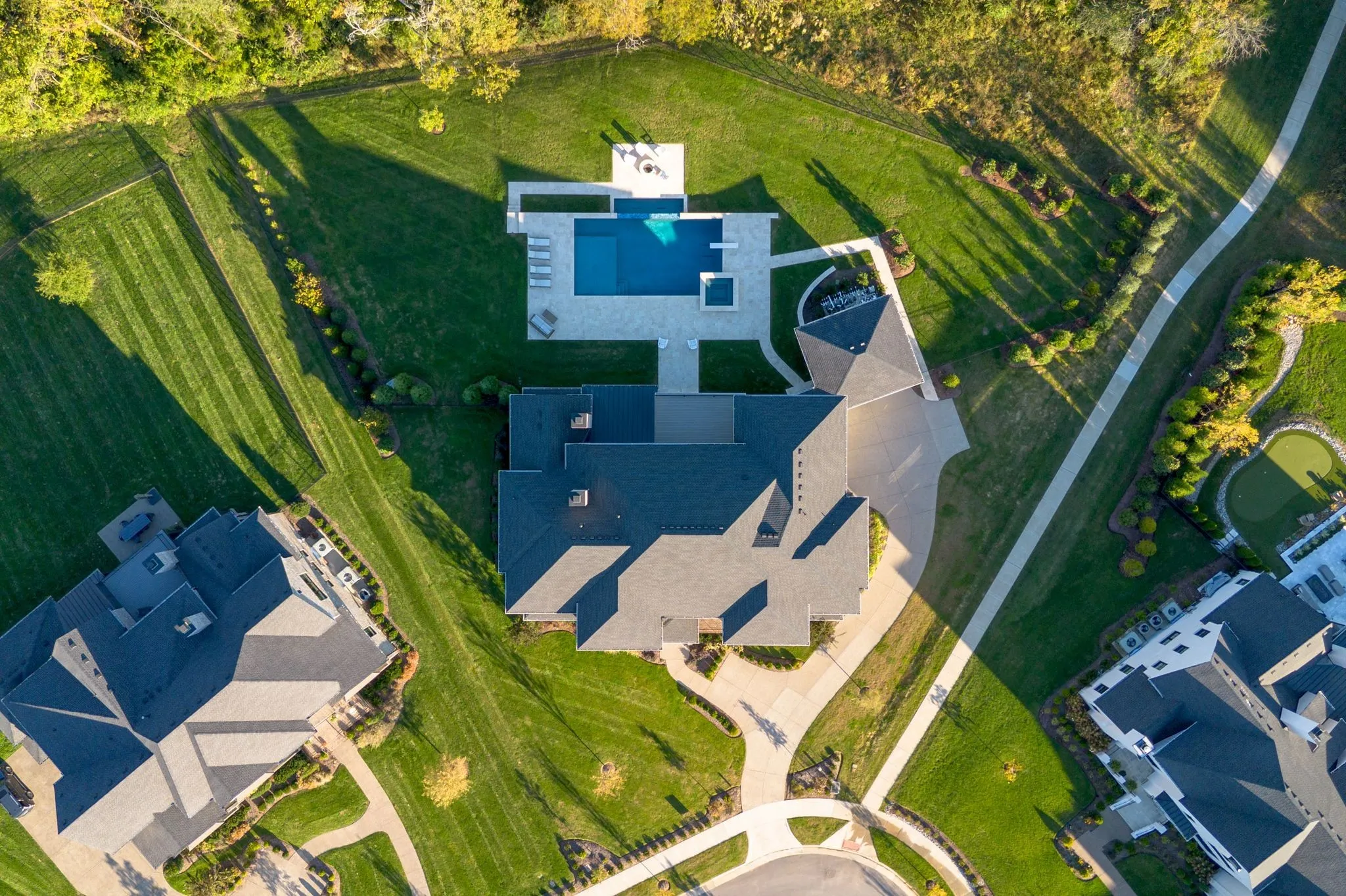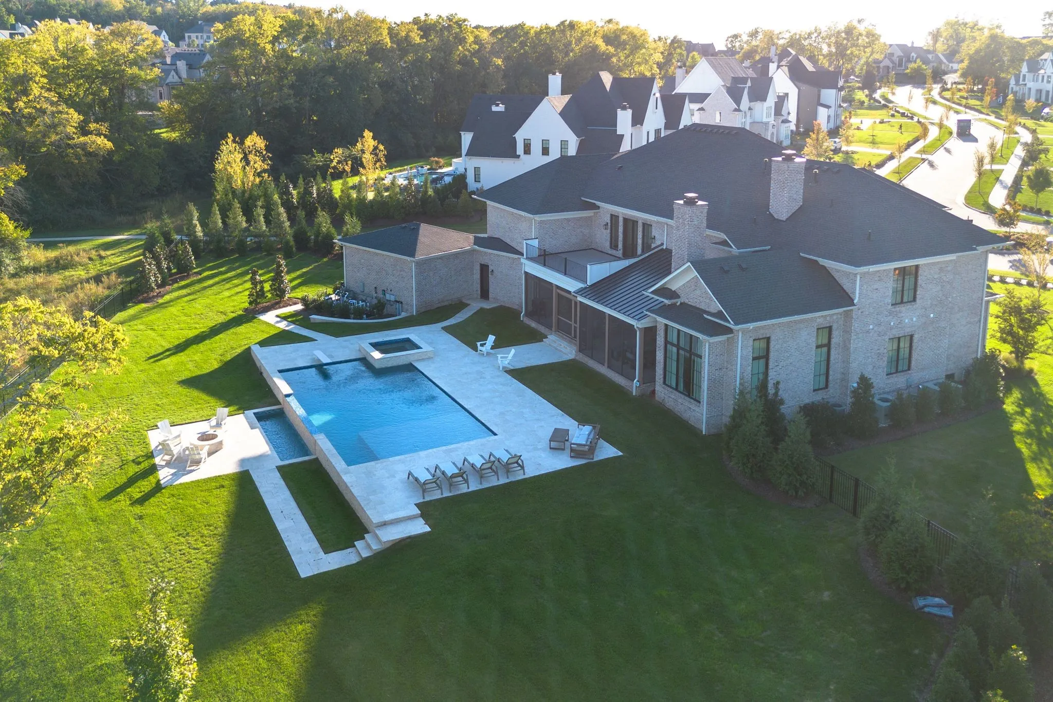 +"PublicRemarks": "Stunning luxury home in Witherspoon, one of Brentwood's most sought after neighborhoods with incredible Brentwood schools, community pool, parks and walking trails. Step inside to high ceilings and an abundance of natural light. The chefs kitchen is sure to please, with commercial appliances and walk in pantry. The kitchen flows nicely into the great room, and screened in porch, overlooking the pool and private yard. Home is located at the end of a cul de sac, on a pie shaped lot, backing to woods, with an abundance of privacy, and a huge flat, resort like yard, with built in bbq, vanishing edge pool, spa, fire pit, and a huge fenced in yard for entertaining. If thats not enough, the upstairs boasts 2 large bonus rooms, one built out with a full Foresight golf simulator and theater room. Primary bedroom on the main level, elevator, grand home office, and a 4 car garage, all make this a property you don't want to miss."