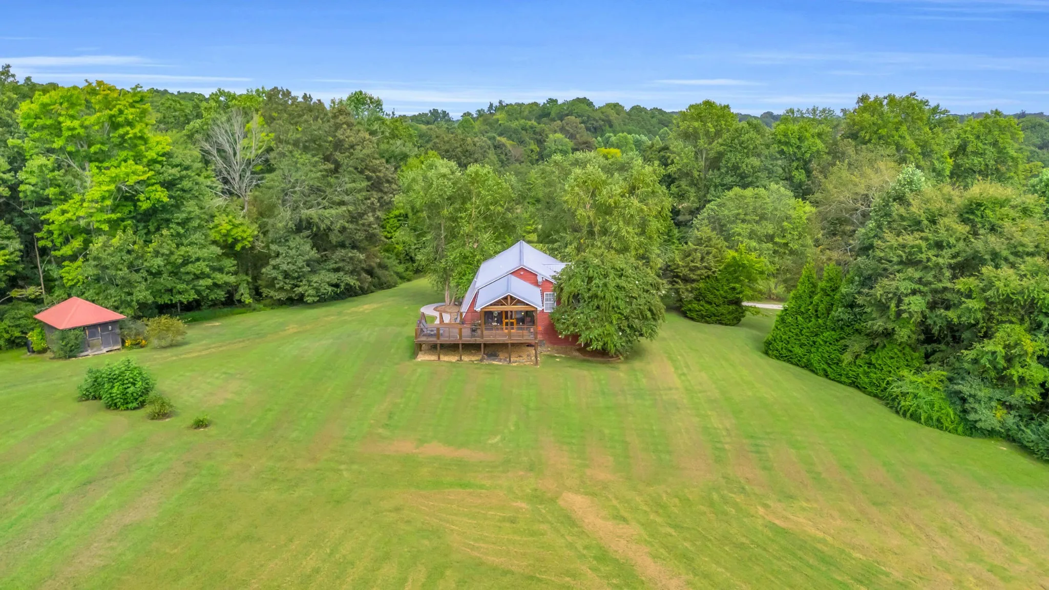 Shared farm amenities include a gated entry, scenic pond with private dock, and additional buildable homesites. Negotiable equipment—such as a tractor, mule, and mower—adds turn-key convenience.