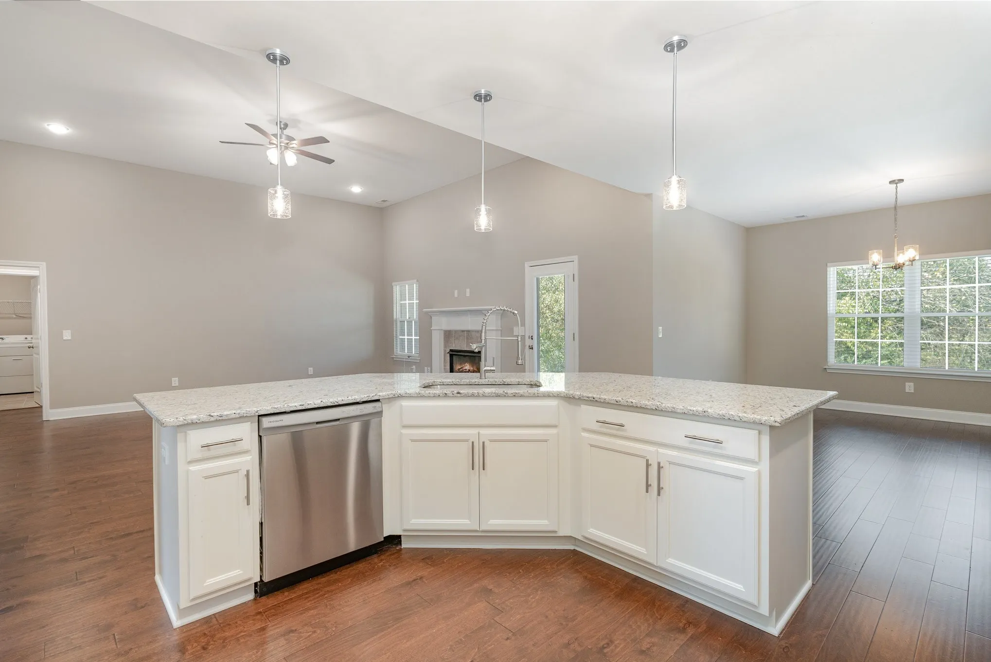 Step inside to an open-concept living area with hardwood floors, a gas fireplace, and a stunning kitchen that’s perfect for entertaining. Enjoy granite countertops, a large island with bar seating, tile accents, and plenty of cabinet space. The primary suite offers a peaceful retreat with a tray ceiling, walk-in closet, and a luxurious soaking tub. Each bedroom includes spacious closets, providing excellent storage throughout. Outside, relax or entertain on the covered patio overlooking a beautifully landscaped backyard with privacy trees. Whether you’re hosting guests or enjoying a quiet evening, this space offers the perfect backdrop. Barfield Downs features sidewalk-lined streets, ideal for evening strolls or morning jogs. This home is truly move-in ready, well cared for, thoughtfully designed, and ready to welcome you home.