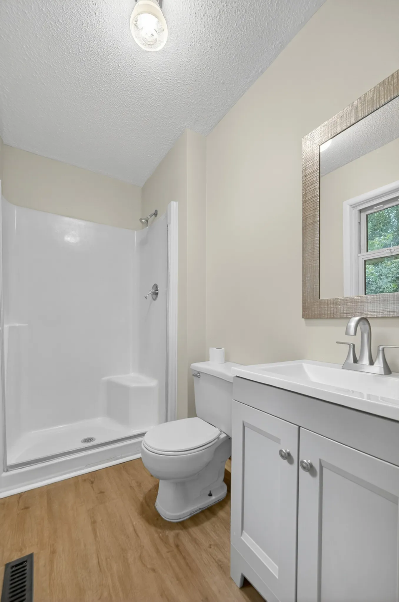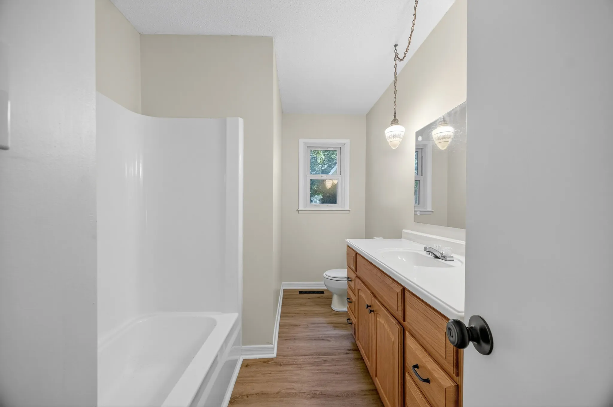 Inside, enjoy laminate flooring throughout, a spacious dining room and living room, and a kitchen equipped with stainless steel appliances (including a brand-new dishwasher and oven). The primary suite boasts a 5×5 walk-in closet with plenty of storage.