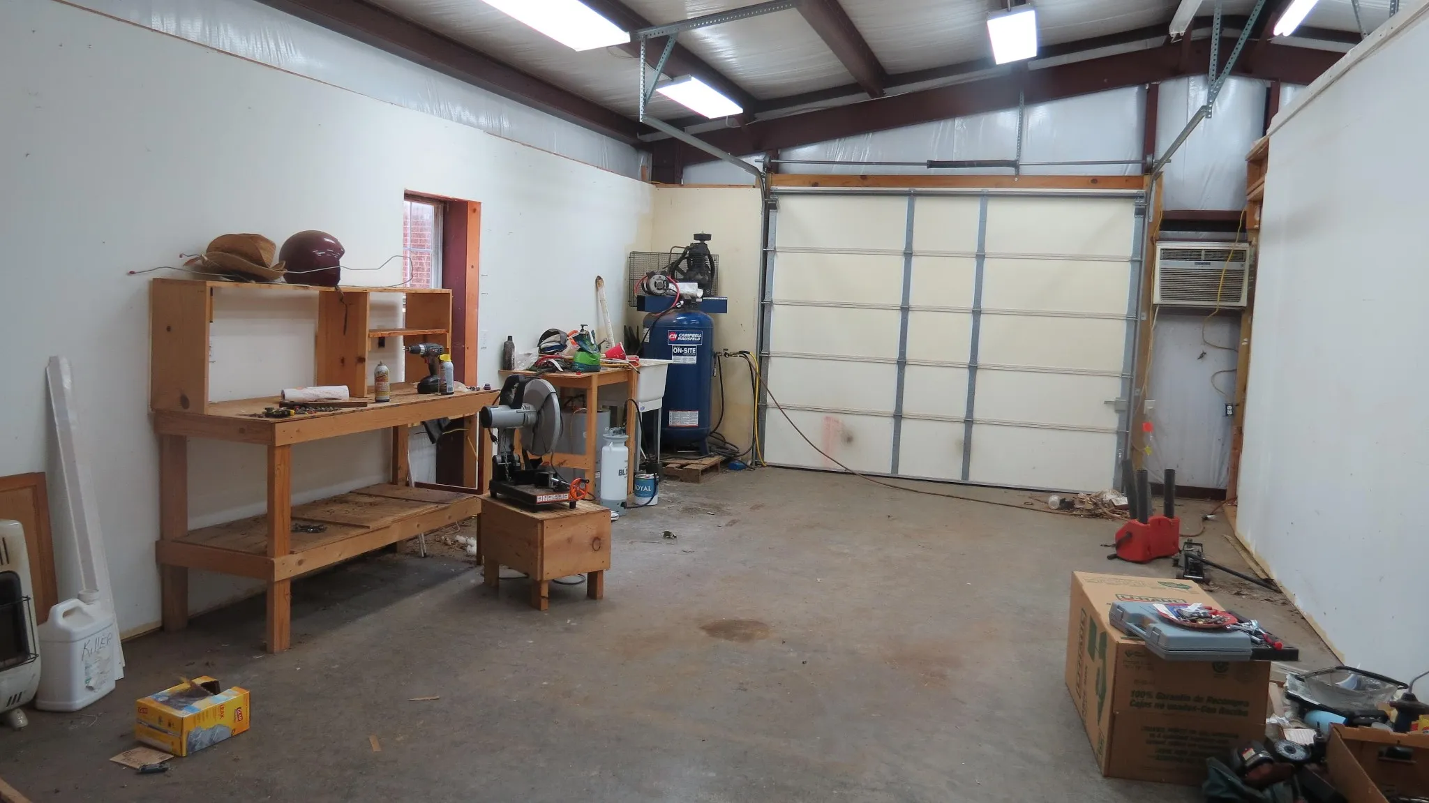 * 32×48 shop on a concrete slab, fully insulated with heat, air, a and it’s own hot water heater.