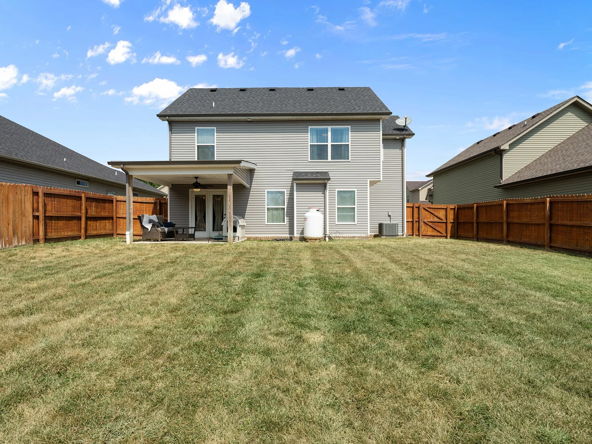 Seller concessions offered! Single owner home located in Rossview Place subdivision, conveniently located in prime location off Exit 8 within the highly sought after Rossview school district. This Drummond floor plan features open concept kitchen, dining, living room with stone propane fireplace, engineered hardwood floors, granite countertops, tile backsplash & stainless steel appliances. 2 car garage, 1/2 bath & laundry room on main level, upstairs features a large bonus room, plus 3 beds / 2 baths. Primary bath boasts floor to ceiling tile shower, separate soaker tub, double vanities and walk-in closet. 2 stories of comfortable living plus a large fenced backyard with outdoor covered patio for entertaining. Enjoy the community basketball court and neighborhood sidewalks. Only 45 minutes to Nashville! Motivated seller!