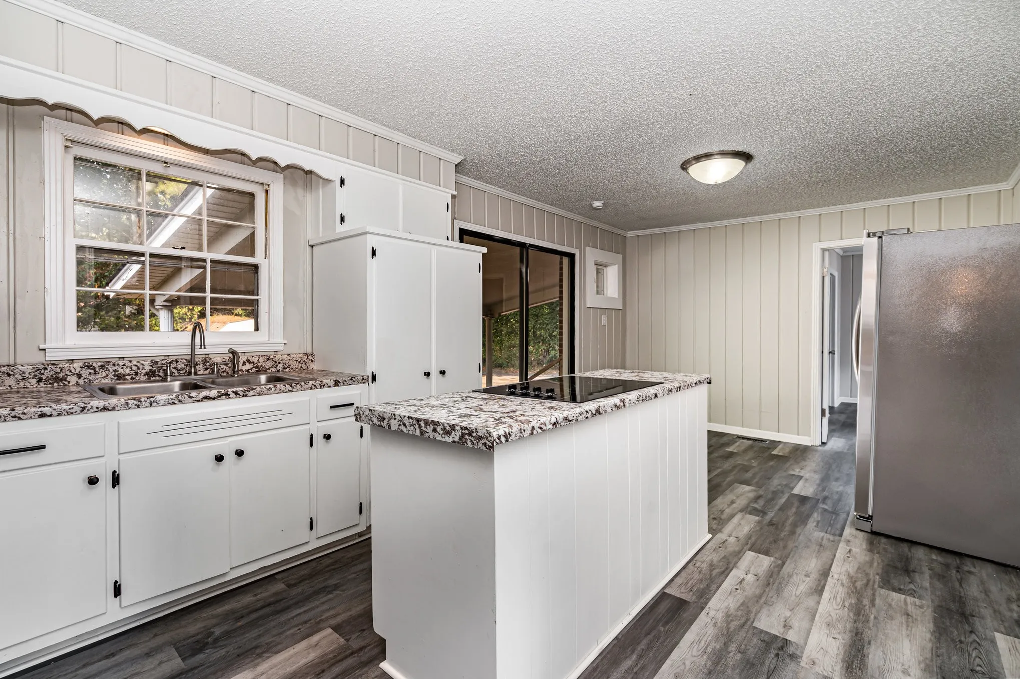 Move right in to this charming all-brick 4 bedroom, 2.5 bath home! The spacious living room is brightened by a large picture window, while the huge eat-in kitchen comes complete with stainless steel appliances and a big island—perfect for family meals or gatherings. The primary suite is a true surprise with its cozy fireplace in the bathroom! Out back, enjoy evenings on the covered patio with plenty of yard space to spread out. Conveniently located close to shops, parks, and golf courses—all just a few miles away.