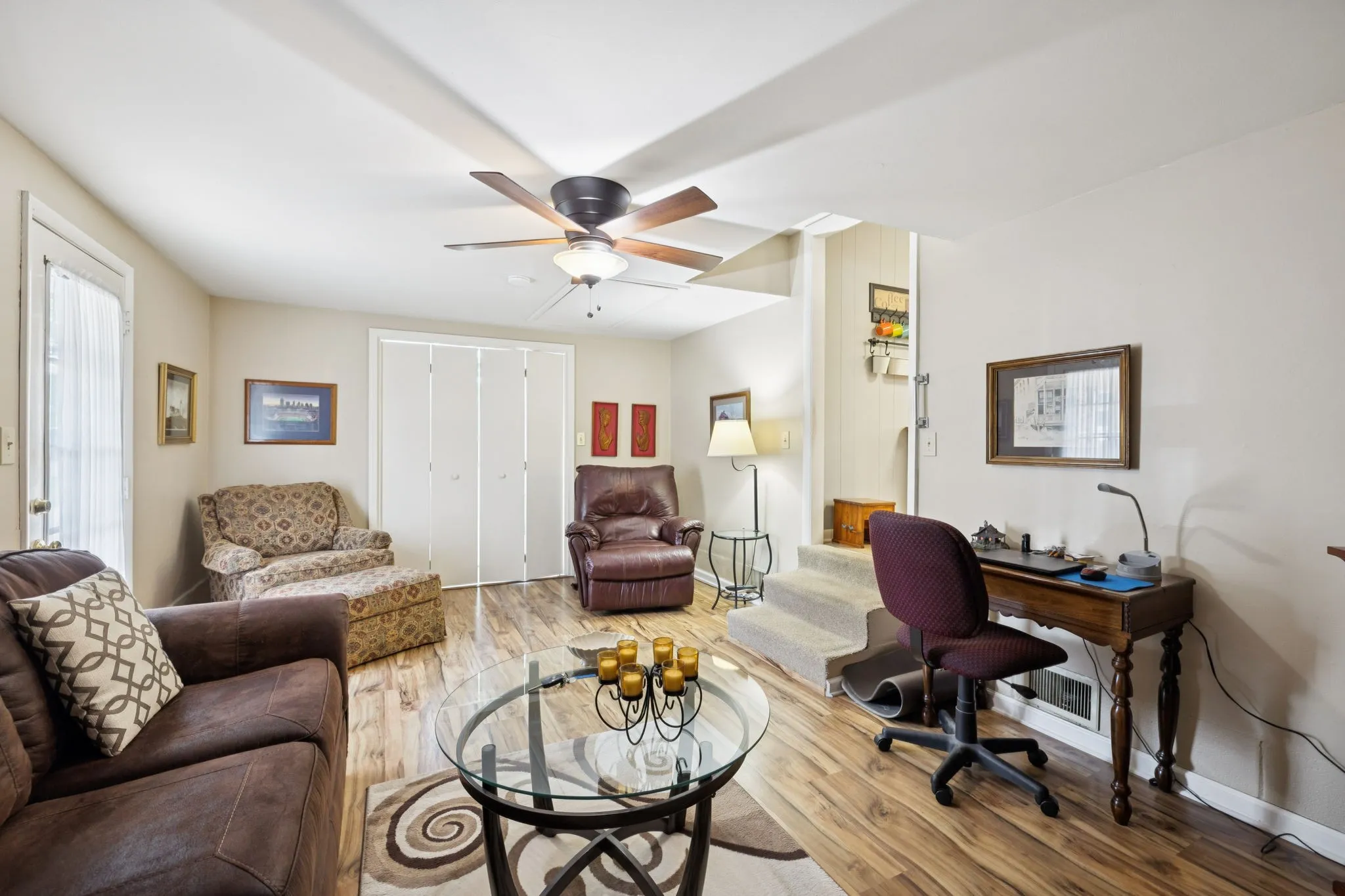 This full-brick ranch blends vintage architecture with a fresh, functional layout. Step inside to discover refinished original hardwood floors throughout, adding warmth and personality you just don’t find in new builds. The home offers three spacious bedrooms, a bright and inviting living room, and a kitchen that includes all appliances with plenty of space to cook, entertain, or enjoy quiet mornings.
