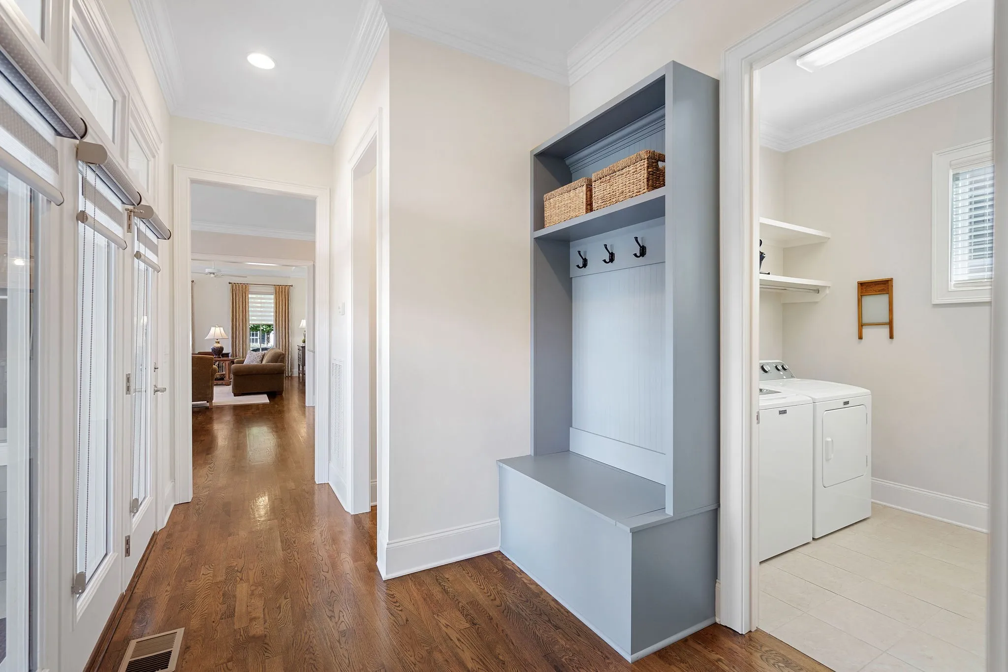 Inside, natural light fills every room, thanks to an abundance of windows and a thoughtful open layout. The expanded lot offers bonus outdoor living space, extra privacy, and plenty of room for entertaining. Step through the two-story entry into a warm, inviting home featuring a main-level primary suite with walk-in closet, double vanities, separate tub/shower, and a laundry room with built-in sink and cabinetry.\n