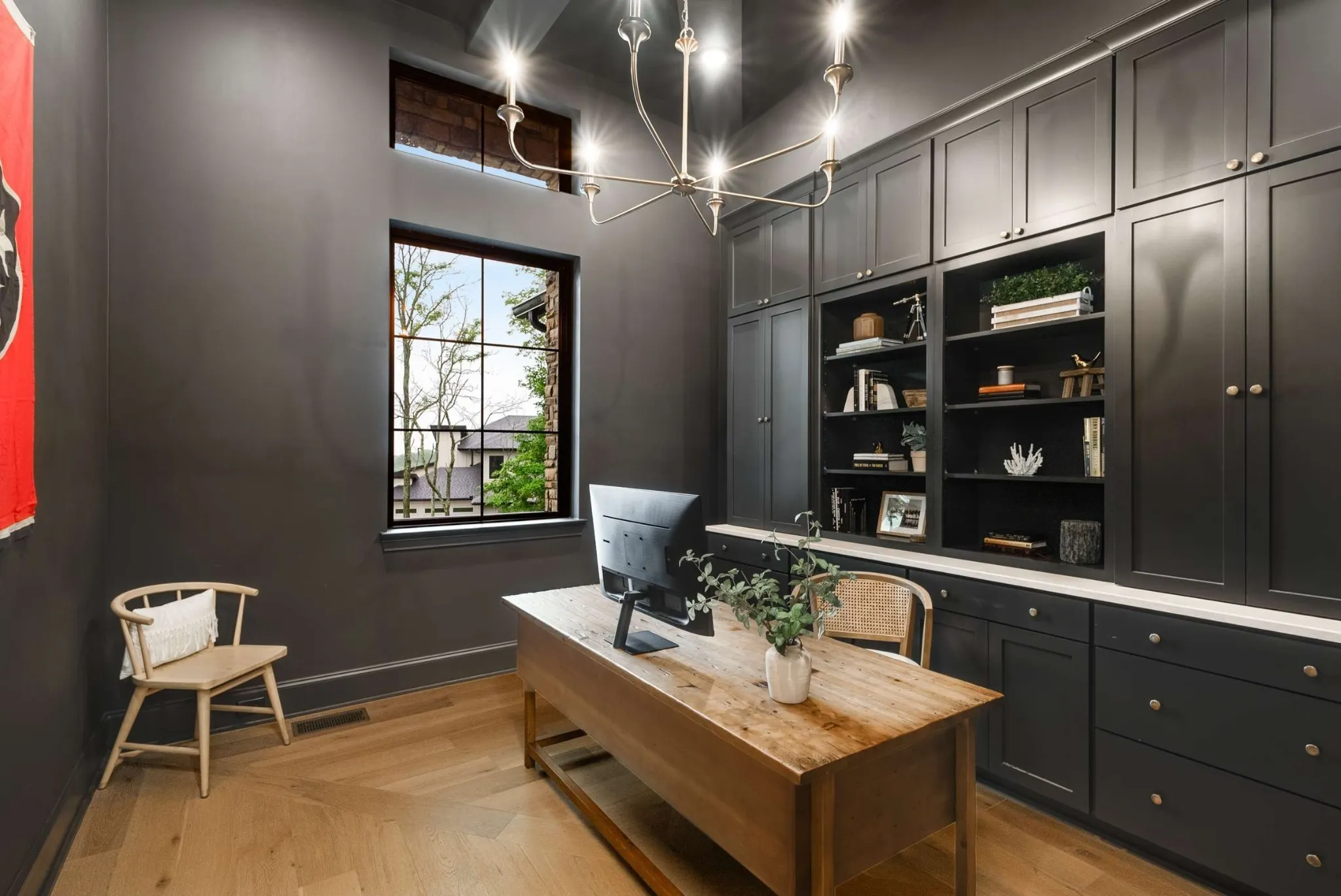 Indulge in cinematic evenings in the private theater room, or savor intimate gatherings in the sophisticated den, complete with an adjoining wine grotto. Entertaining is effortless in the formal dining room, which graciously accommodates up to twelve guests, while the expansive open-concept kitchen and living area seamlessly connect to the outdoor living space through four-panel sliding doors.