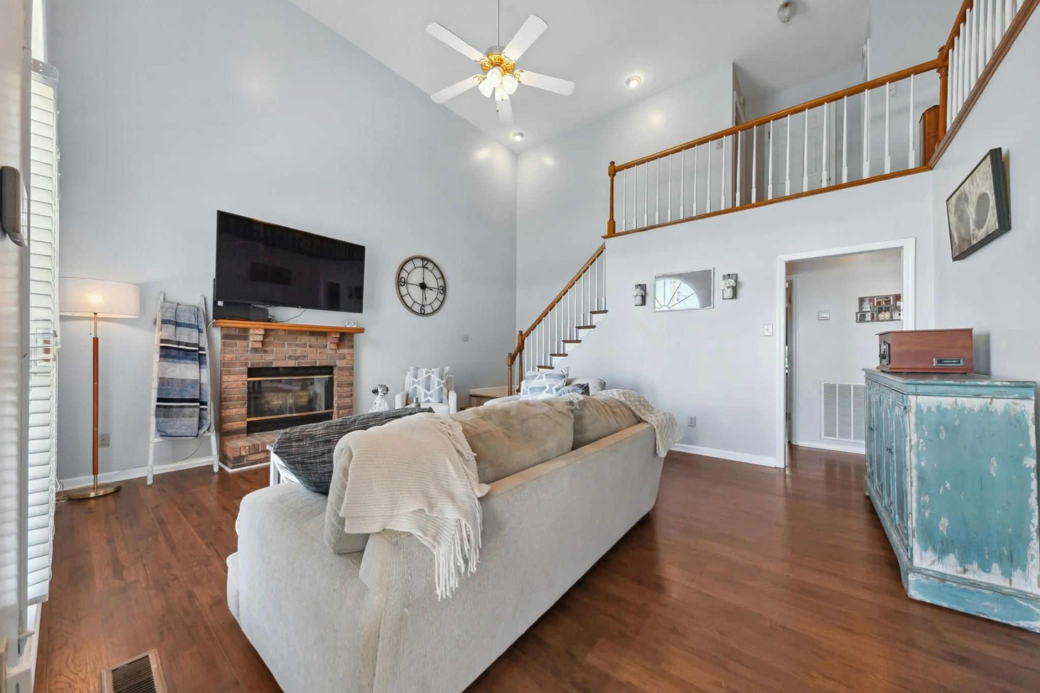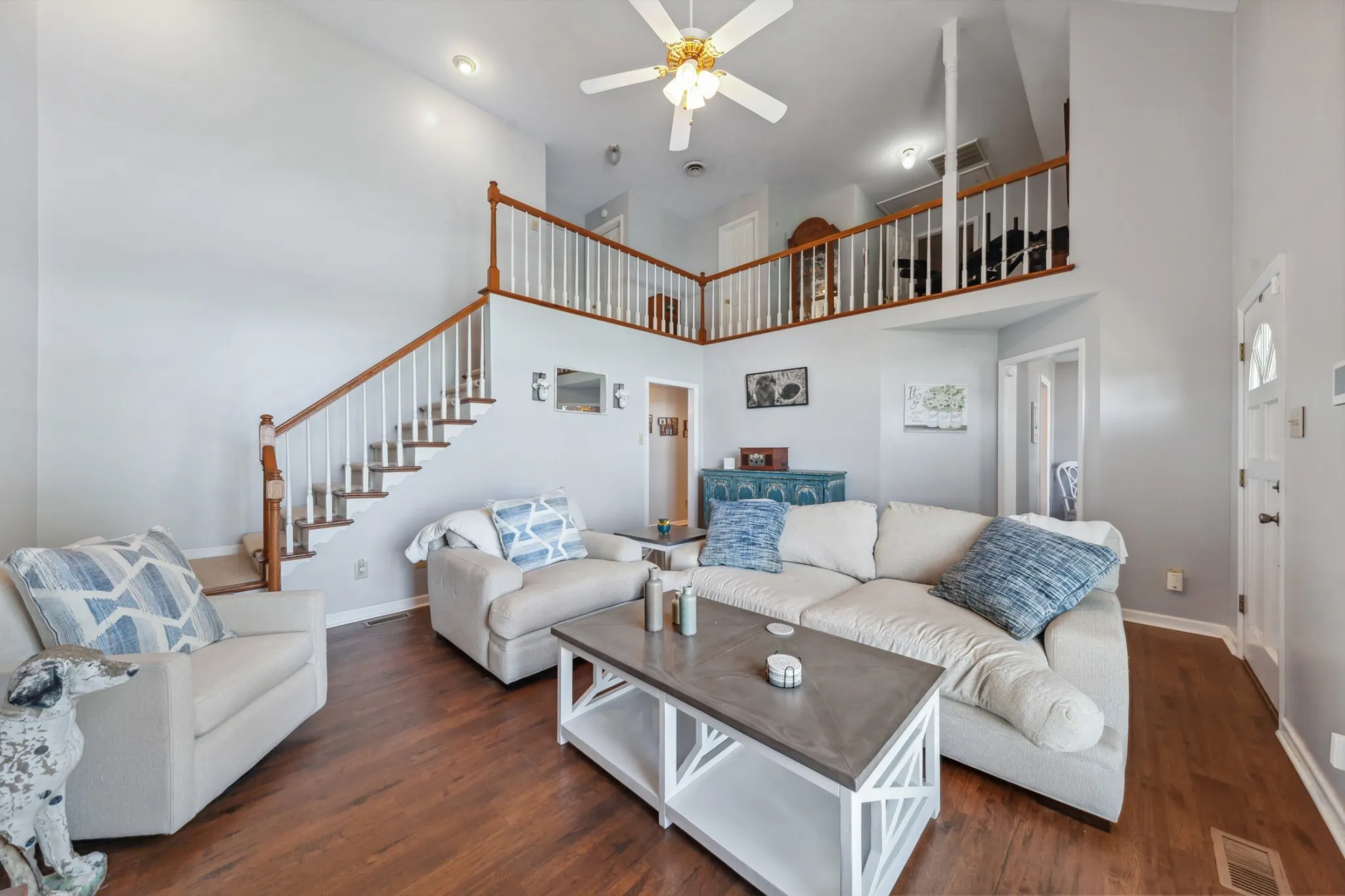 Charming 4-bdrm home in established neighborhood! Welcome to your dream home? This stunning 4-bdrm, 2.5 bathroom residence features a spacious design making it perfect for growing families or those in need of extra space. As you enter, you’ll be greeted by beautiful engineered hardwood flooring that flows throughout the main living areas. The great rm boasts a soaring cathedral ceiling and a cozy wood-burning fireplace, offering a warm and inviting atmosphere for gatherings. Enjoy meals in the elegant formal dining rm, and whip up your favorite dishes in the well-equipped kitchen featuring white cabinets, stainless steel appliances, and gorgeous granite counter tops. The primary suite is conveniently located on the main floor, complete with a luxurious primary bath that includes double sinks, an oversized tub/shower combo with stylish tile surround for your comfort. Upstairs, you’ll find a cozy sitting rm on the landing, perfect for a quiet retreat. Step outside to your screened porch overlooking a fenced backyard-a perfect spot for morning coffee or evening relaxation. The concrete driveway leads to an oversized 2-car garage with a side entrance for added convenience. Located on a peaceful cul-de-sac in an established neighborhood, this home offers easy access to I-65, making commuting a breeze. Don’t miss the chance to make this wonderful property your own! Schedule a showing today and discover all the features this exceptional home has to offer!