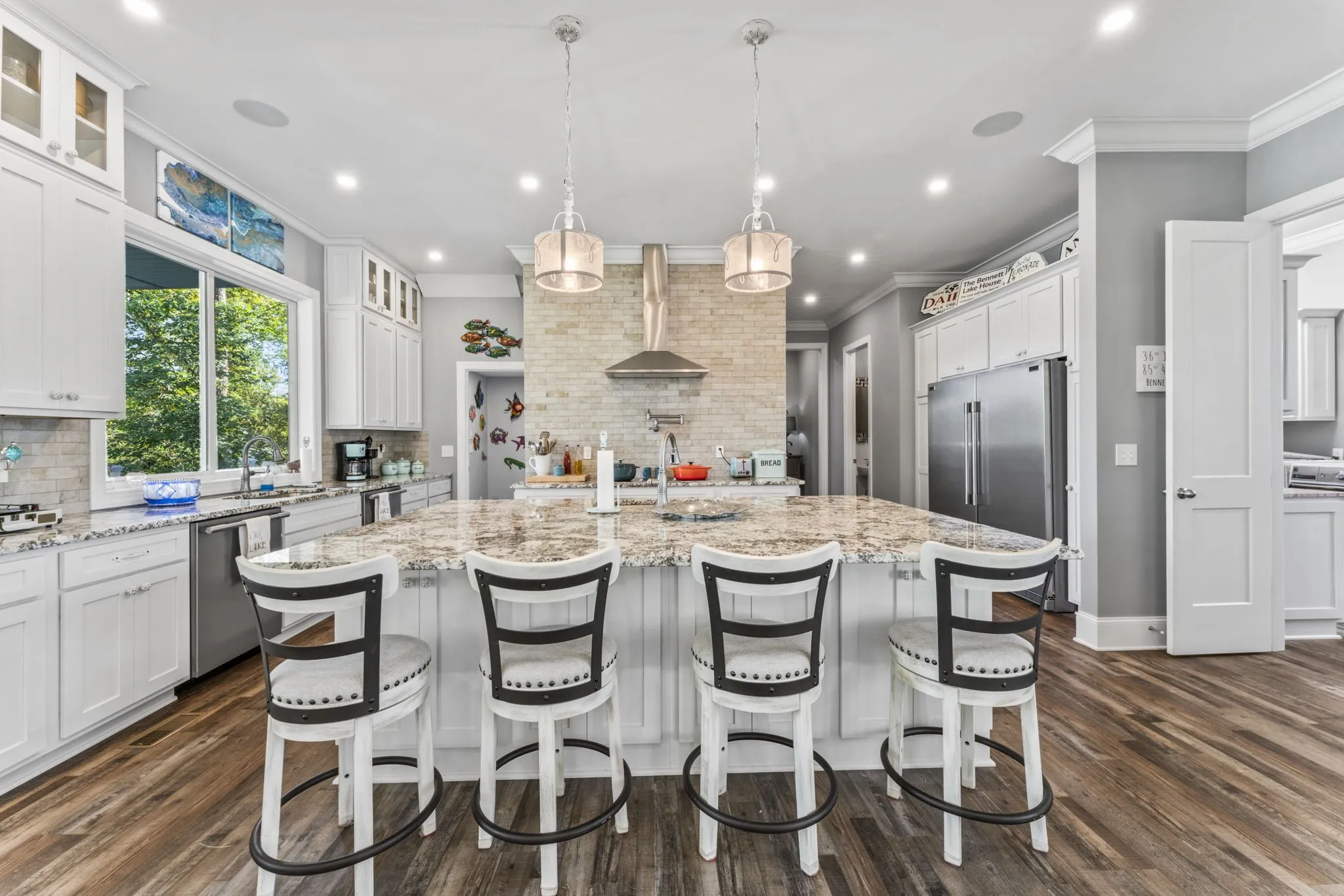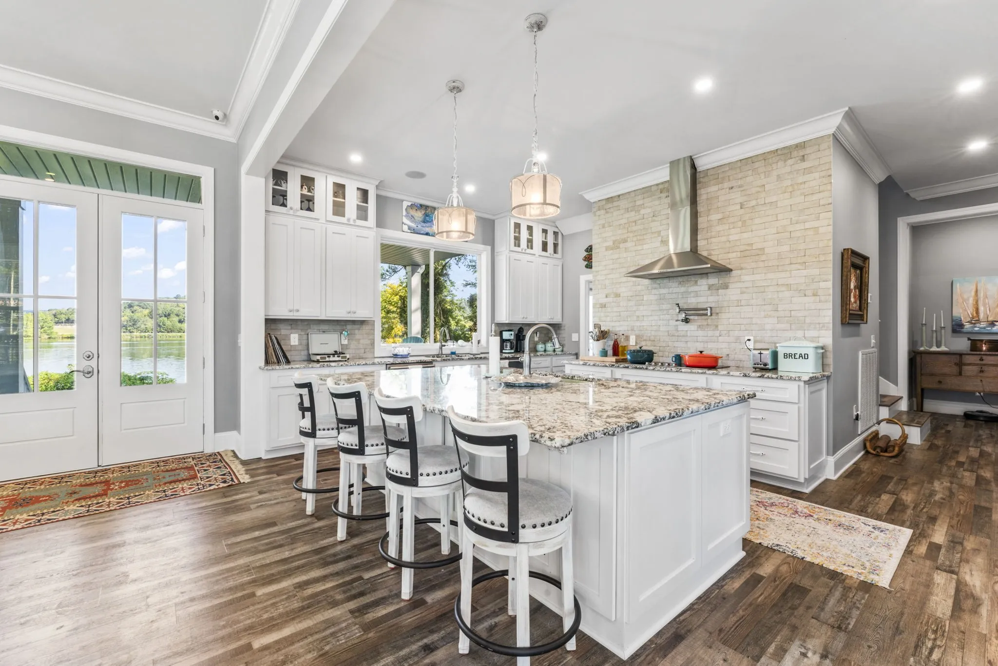 Absolutely Stunning home! Located on Cordell Hull Lake in Historic Granville, Tennessee. 5,344 square foot two-story residence with a finished basement with an additional private guest quarters. Lakefront living. Each floor has lake views, featuring balconies. The 5 bedrooms, 4 full/2 half custom baths, high end finishes, a dream kitchen make entertaining a delight. Inside, the home offers high-end finishes, a dream kitchen with granite countertops, double convection ovens, an induction cooktop, pot filler faucet, two dishwashers and luxury plank vinyl throughout. The basement offers a game room,custom wet bar,half bath, storage area and safe room a media room with surround sound system. The guest quarters offering privacy – featuring two of the five listed bedrooms, and one of the four full bathrooms, a fully equipped kitchen and living room over the oversized two-car garage. The 2X6 construction home is equipped with a full home Generac Guardian Generator system, interior and exterior camera system, and solid concrete basement walls. The level backyard backs up to the Cordell Hull Lake US Army Corps of Engineers which provides immediate lake access. Sit by the fire and enjoy the view t lakeside living.