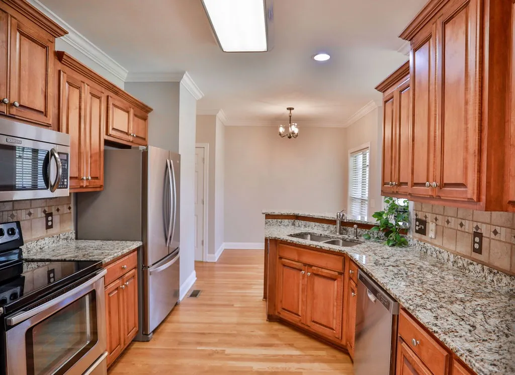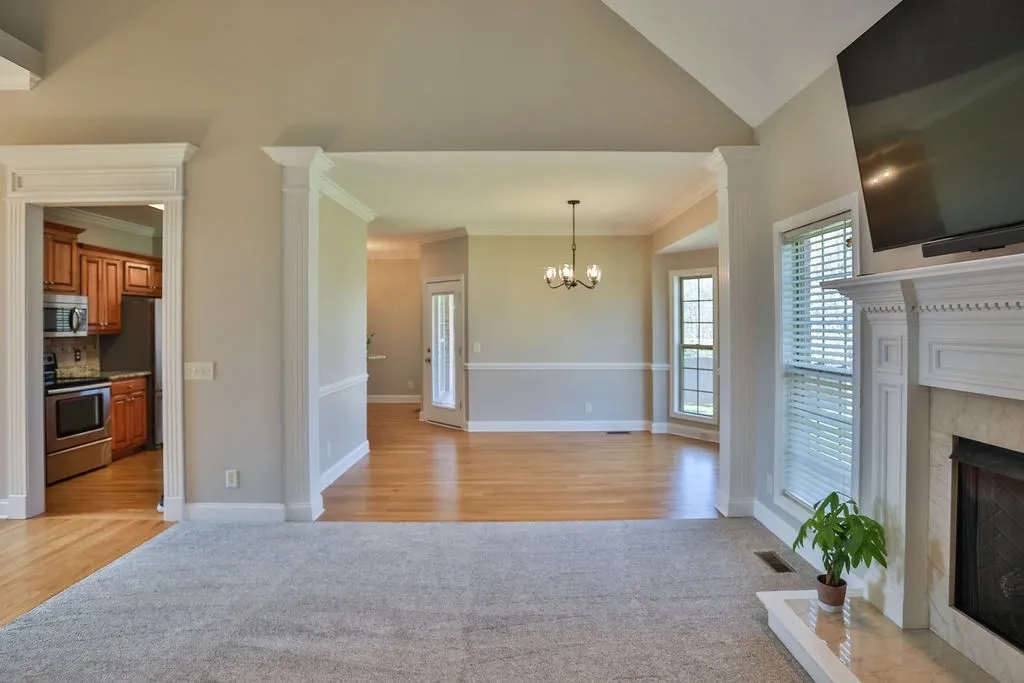 REDUCED!!!!! Exquisite Eastland Construction – Welcome to 1-story living! All-brick home with NEW paint, NEW carpet, REFINISHED hardwoods in kitchen, dining, and eat-in. Living room w/ soaring ceilings and gas fireplace. Fabulous kitchen complete with upgraded cabinetry, stainless appliances, and tile backsplash. Retreat to the large primary suite featuring trey ceiling & generous walk-in closet. Two additional main floor bedrooms provide ample space for family or guests. Huge upstairs bonus room over garage. Upgraded Crown Molding throughout. Tons of floored attic storage – possible home expansion opportunity. Covered back deck overlooking beautiful mature trees!! Private, flat yard with bridge over creek, backs to farm, ensuring tranquility. Exceptional landscaping including underground irrigation system. Two car garage with sink. Located between Gallatin & Mt Juliet, perfect balance of peaceful suburban living & access to shopping/downtown amenities. Taxes estimated