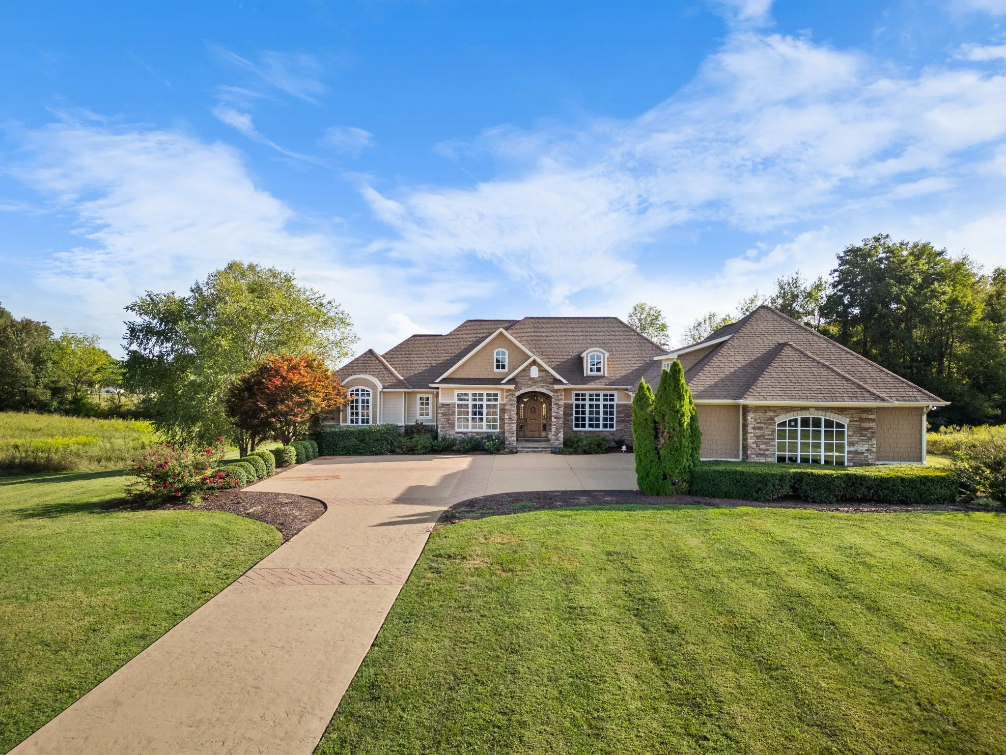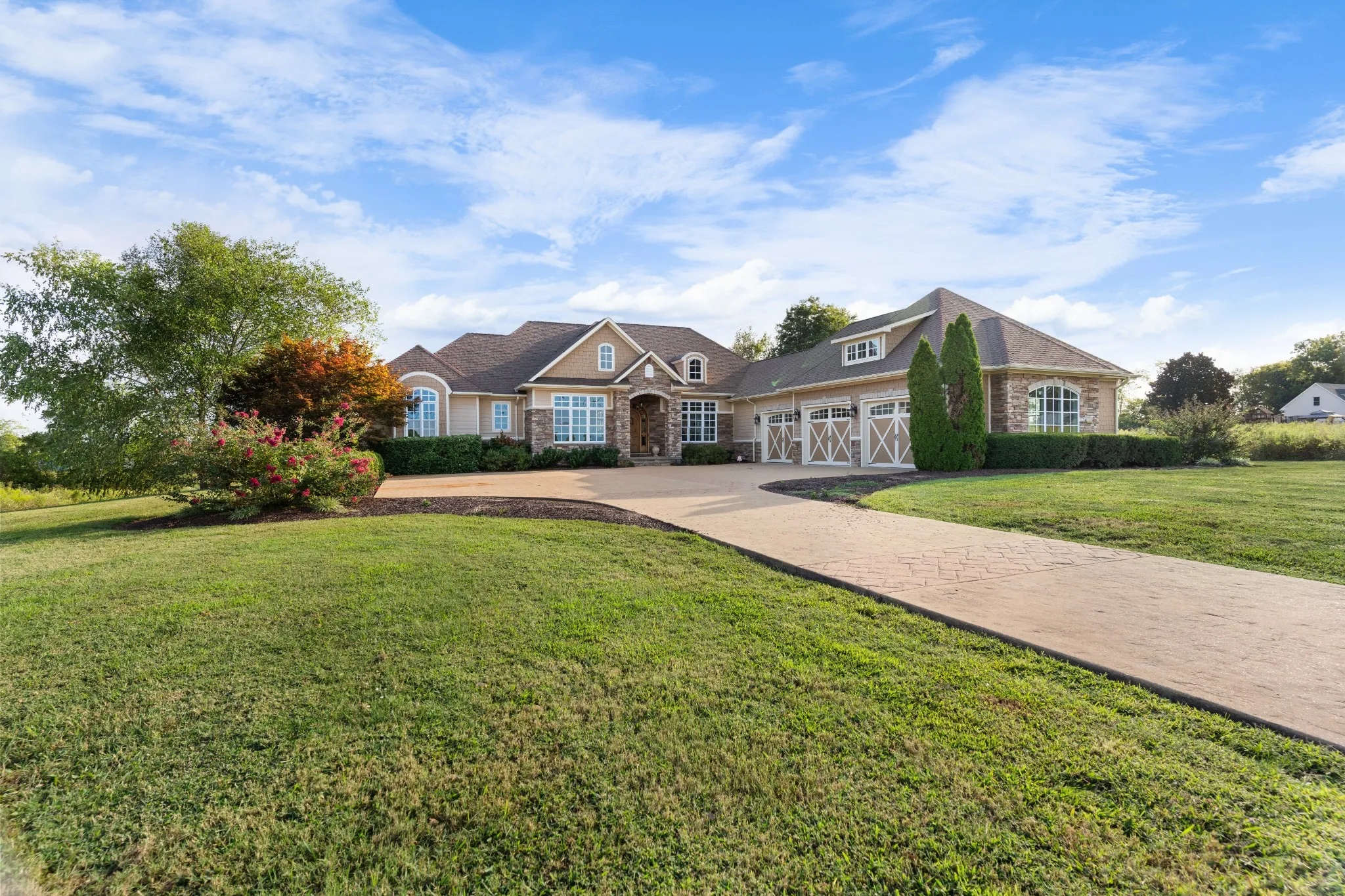 Luxury 4-bed/3.5-bath estate with in-ground pool, outdoor kitchen, finished walkout basement and half basketball court on 1.9 acres right on Crawfish Lane in Lawrenceburg, TN. This custom home blends high-end finishes with everyday comfort. The sun-filled living area features a stone fireplace and large windows. The chef’s kitchen boasts granite counters, stainless appliances and custom cabinetry. The primary suite offers coffered ceilings, a sitting area overlooking the backyard and a custom-organized closet. The finished walkout basement includes a second kitchen, rec room and direct access to the pool, making it ideal for guests or extended living. Outside you’ll find a resort-style setup: a covered outdoor kitchen, in-ground pool, half basketball court, mature trees and open lawn. A three-car garage provides ample storage. Located minutes from downtown Lawrenceburg shops and restaurants and David Crockett State Park, with Nashville under two hours away, this home offers a rare blend of space, style and convenience. Schedule a private tour today.