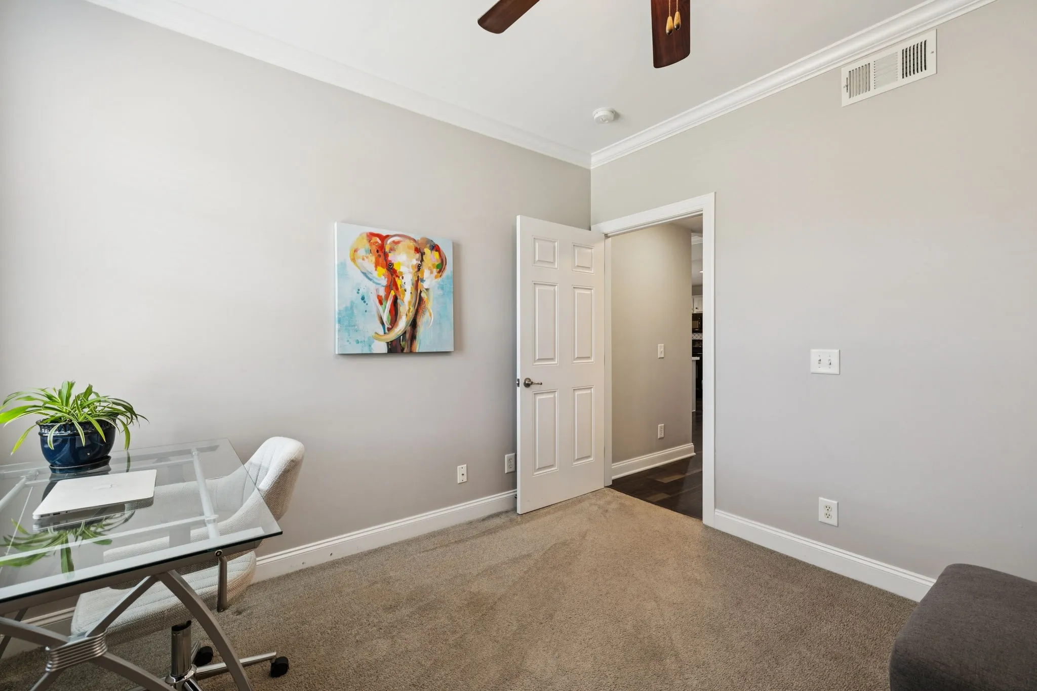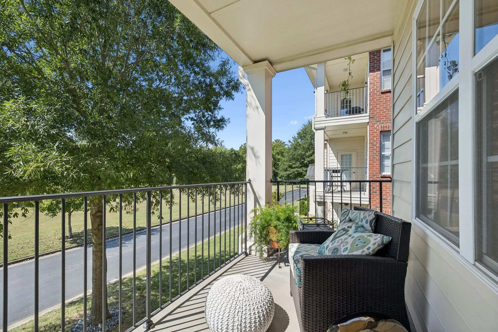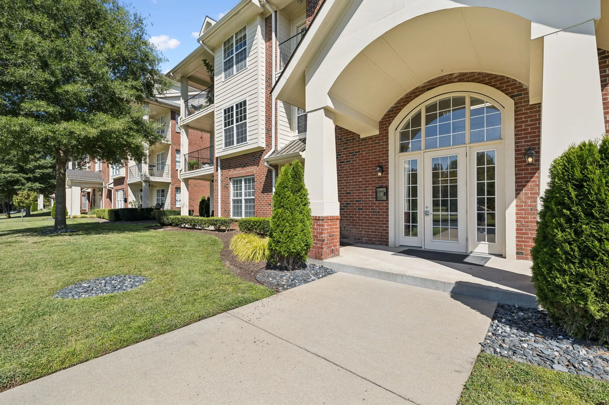 The kitchen features freshly painted cabinets in Repose Grey, sleek quartz countertops, a modern single-basin sink, stainless steel appliances, and two oversized corner cabinets with built-in lazy Susans for maximum storage and convenience. Beautiful hardwood flooring flows throughout the home—excluding the guest bedroom. Retreat to the luxurious primary suite, complete with dual vanities, a stunning tiled shower with seamless glass door, a private water closet, and a spacious walk-in closet designed by Closets by Design. The guest bedroom also includes a custom-designed closet. Enjoy peaceful views of private green space from every window and relax on the covered porch overlooking beautifully maintained walking trails. Aspen Grove Park is directly across the street from neighborhood and it’s trails are wonderful! Additional highlights include plentiful guest parking, and a BUILDING ELEVATOR for added accessibility. Located within walking distance to shopping, groceries, restaurants, a movie theater, and the renowned Vanderbilt Legends Golf Course! This home also offers quick access to I-65 and is less than 10 minutes from the heart of downtown Franklin. STAINLESS STEEL REFRIGERATOR, WASHER, & DRYER REMAIN! Sellers would like to sell fully furnished but not a need. Fast possession if desired!
