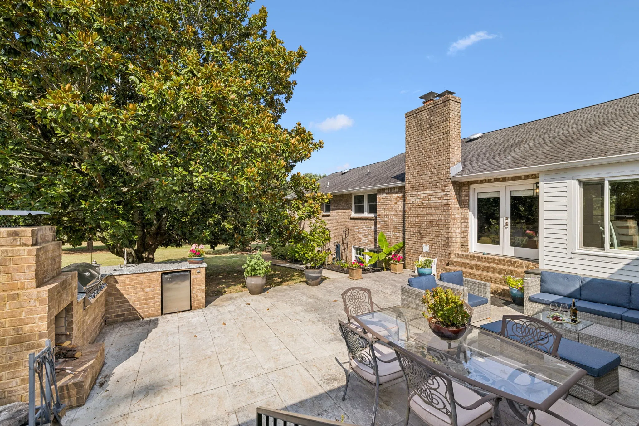 This very unique offering at the end of a very QUIET CUL-DE-SAC is the ideal home for someone who needs a private IN-LAW APARTMENT / guest house / multi-family arrangement. Original home shows very well and has lots of updates with four bedrooms (including original primary suite) and big SPACIOUS KITCHEN (TWO INDOOR KITCHENS!) great room, and dining room. HUGE PATIO with OUTDOOR KITCHEN/fireplace for entertaining. In 2018 seller completed BIG addition which holds in-law quarters and new primary suite. HUGE finished basement with fireplace also has a flex room currently being utilized as a sixth bedroom option (no window but has direct bath access). Plenty of conditioned/unconditioned storage options. See attached floor plans. BIG 1.25 acre lot offers lots of possibilities! FULLY IRRIGATED lawn and landscape beds! This property is located on the west end of Concord near the new YMCA (read: easy access to Interstate/Brentwood retail).